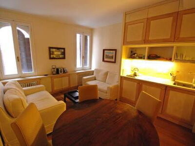 A beautiful little apartment right in the heart of Venice. Super location 100m from St Mark's Square. The layout is better than in the photos. Instead of the sofabed in room 2 there is now a pair of iron twin beds. The sofa is now in the main bedroom with a roomy double bed. The living space has a well_equipped kitchen with doors that slide to hide it. Although not huge, this is a really well thought-out and comfortable apartment and we thoroughly enjoyed our stay.