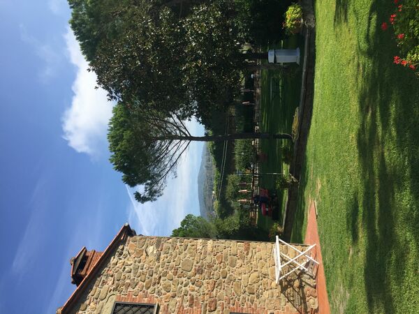 This great old villa was a good choice for our group of 12 cyclists. Lots of room, plenty of bedrooms, and a great place for the bikes and cars. The dining room is easily the best space in the villa, 12 for dinner with plenty of room left over. All the china, silverware and glasses matched so the table set for dinner was a great sight. The wine (maybe from the owner's vineyard) was an nice addition, just have a bottle from the sideboard and they add it to the settlement at the end. The views are spectacular and those that used the pool said it was a wonderful place. The caretaker offered her cooking services so we did that one night and it was a great meal at a great price. One negative is the beds. We stayed in the "master bedroom" and the bed was old and collapsing, quite a disappointment for a week's stay. I thought ours might be the only worn out bed but others had the same situation. The other tacky parts of the villa could easily be accepted as "quaint" and old but worn out beds aren't much fun after a day of cycling. I think the internet service is spotty in rural Italy overall but in the villa the only access point was in the kitchen and it only worked in the kitchen. On the bright side, it did create a good group gathering place! The wine bistro around the corner was really nice after a day's ride, the staff was great and the wine very good. If they take care of the bed issue we'd all come back for another trip.