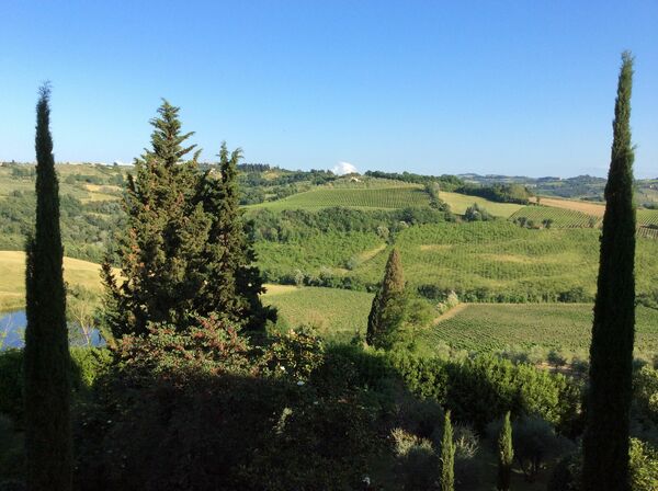 Four of us stayed at Podere La Marronaia -- my wife and I, and another couple. The setting in the vineyard and olive grove is spectacular. You can see the town of San Gimingnano on top of the next hill. The apartment has two bedrooms, one downstairs and one loft up a steep circular staircase. There is a large dining / living room with seating for six for eating. There are a lot of pots and pans, dishes, tableware, etc. Wifi is not available in the apartment itself, but it works outside. There is a small TV with all Italian stations. A pool is available for swimming. The owner, Silvia, is very pleasant and was always available for our questions and to provide help. Her English is very good. One afternoon she invited us to taste the wines and olive oil made at her farm.