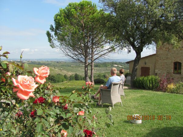 We stayed at Girasole in September. It was very quiet as none of the other apartments were occupied. We arrived early and the host allowed us to check in (3pm as opposed to after 5pm). As a result of this we overlooked the stuffiness and the fact only 1 bed was made up (there were 4 of us). The propery was quite old and the bathrooms in need of updating, and felt like the entire place needed a good dusting. However that said, it was an old building and we really enjoyed the rustic charm. The large outdoor entertaining area was amazing and we spent a lot of time there. The kitchen was adequate for our needs as were the utensils/crockery. The views to the surrounding countryside were spectacular and you had a perfect view of San Gimignano from the road at the front of the property. We had problems with the hot water, which the owner promptly had repaired. The washing machine was also broken, but the owners allowed us to use another on the property. It was a little out of the way, but a nice place to visit and we enjoyed our stay and the company of the local cat who made itself at home with us.