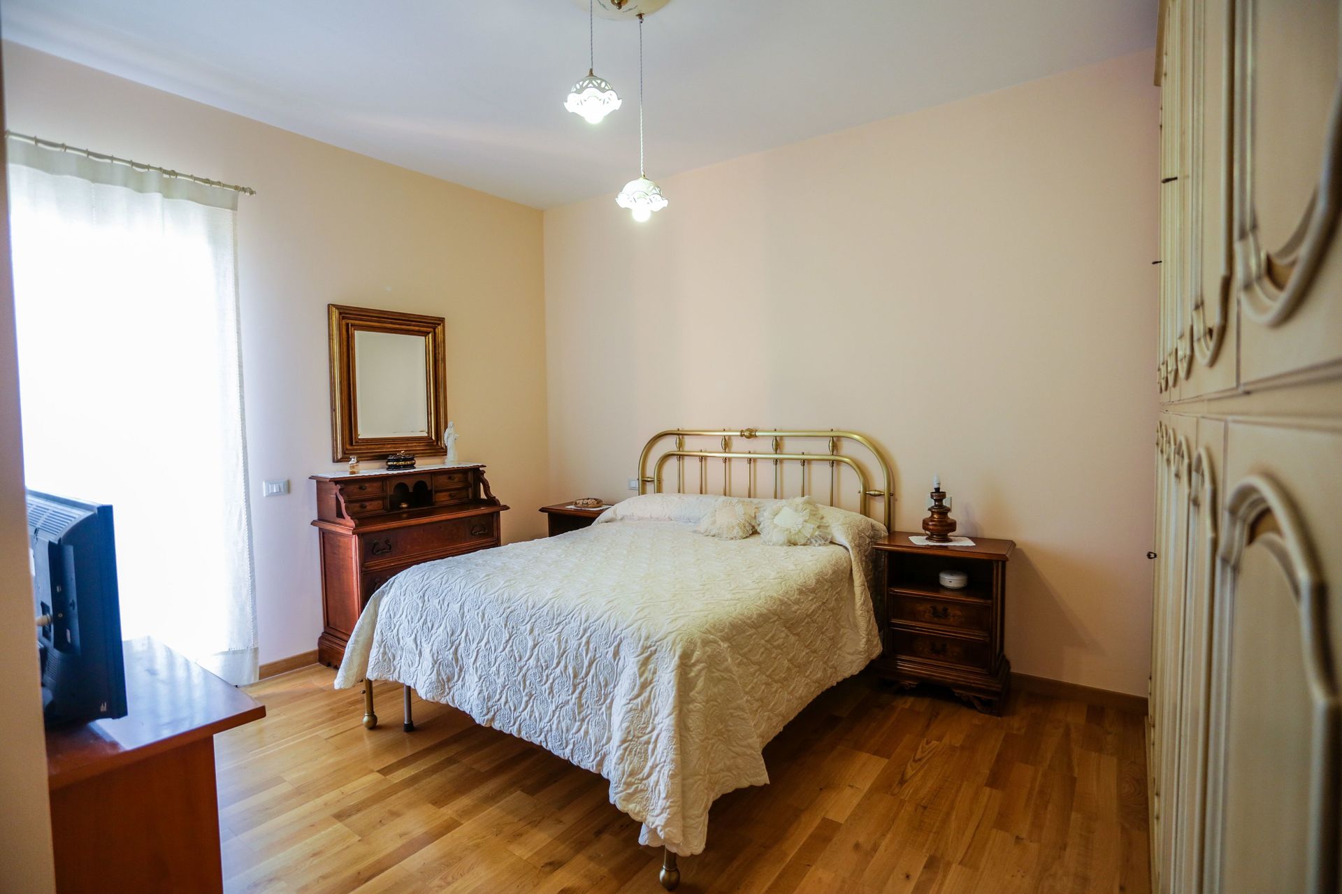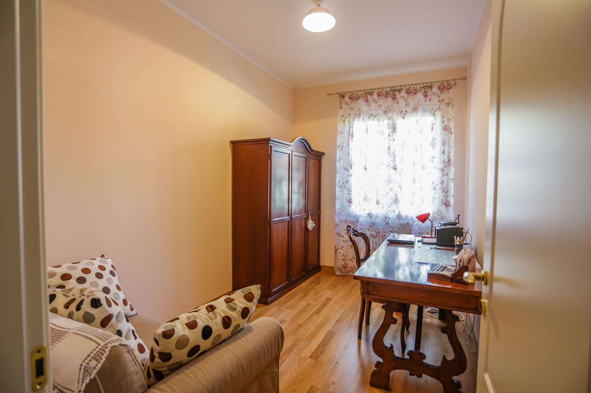 Dit is een appartement in een twee familie villa; de eigenaren wonen in het andere appartement, de zolder van het gebouw is leeg.