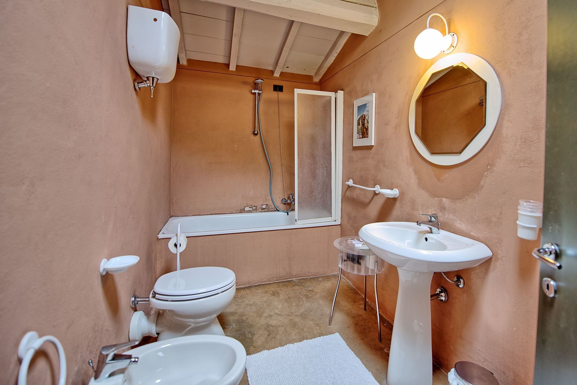 First Floor: One bedroom with double bed and single sofa bed, private bathroom with bathtub; a bedroom with two single beds (joinable upon request), private bathroom with bathtub, bedroom with two single beds with private bathroom with shower.