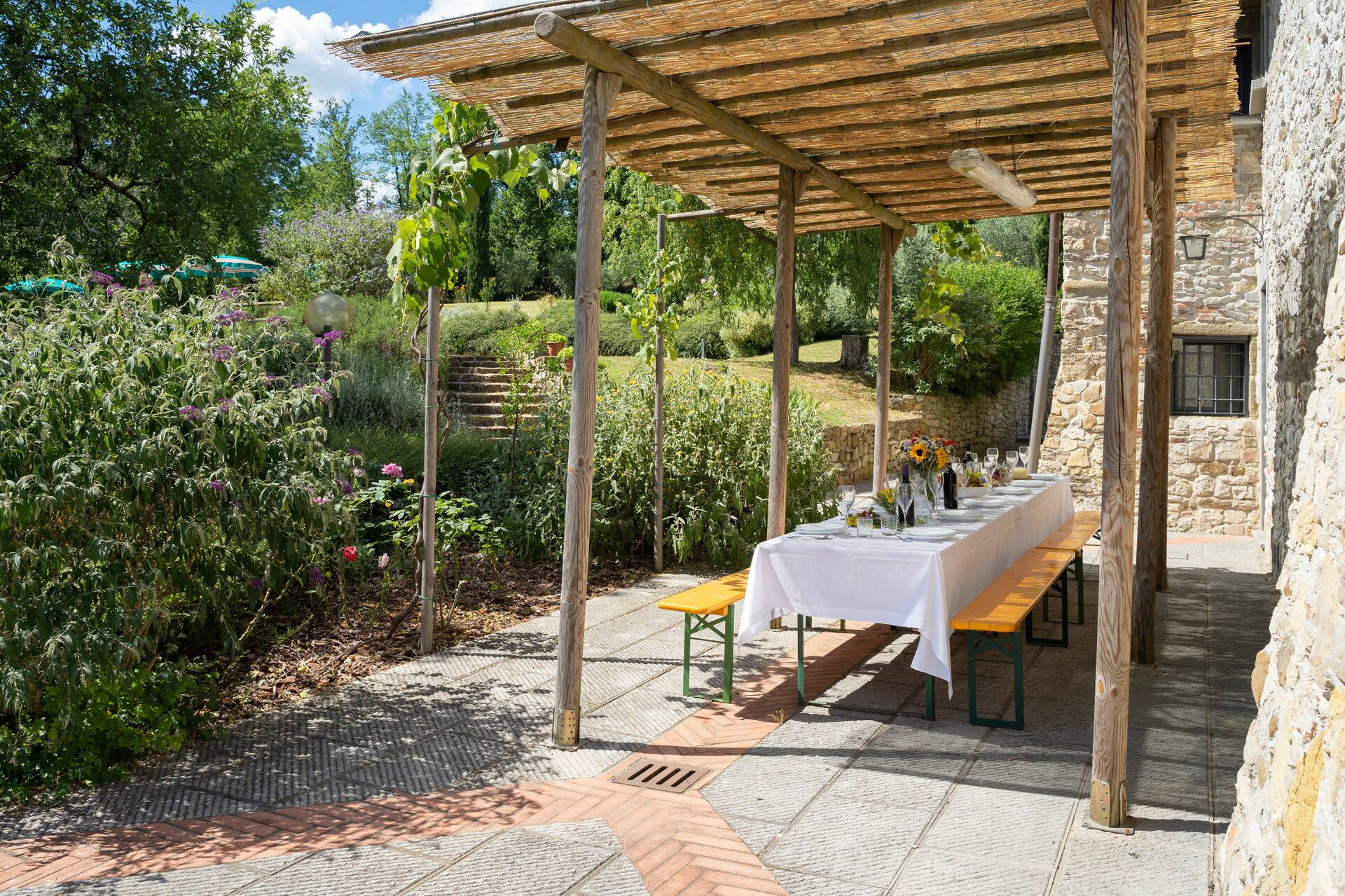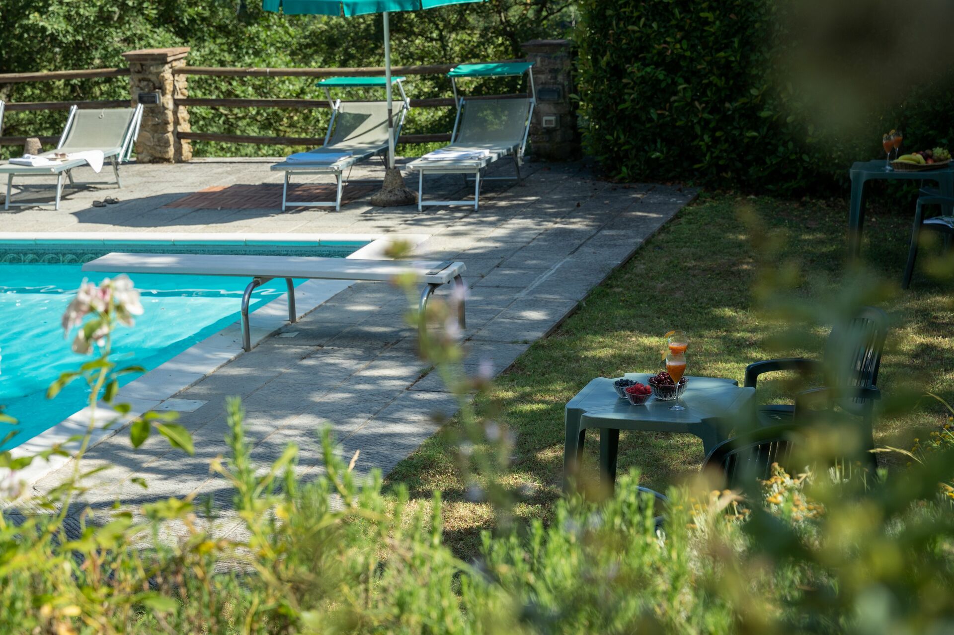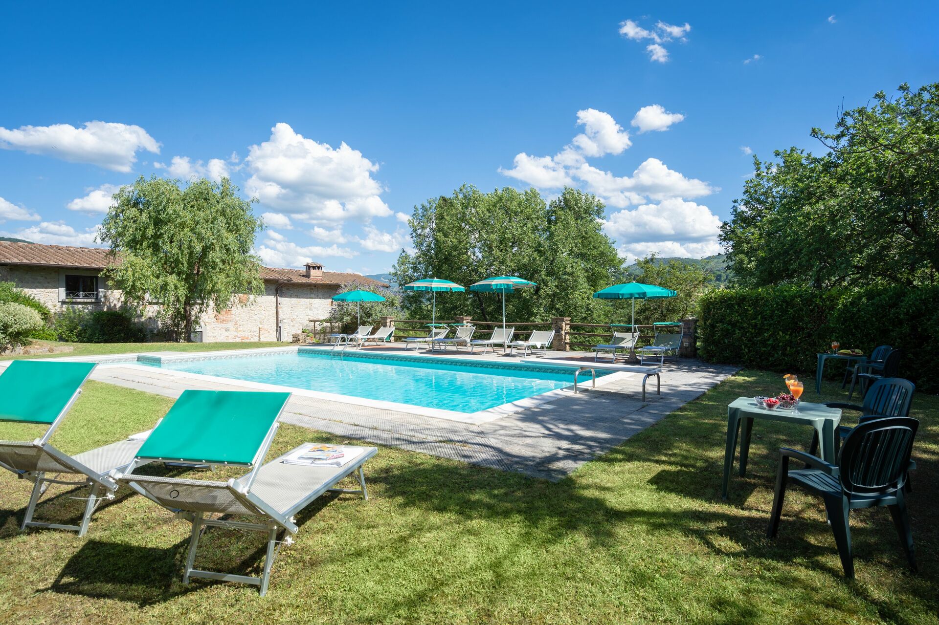 Bij aankomst te Podere Schignano vindt u een fijne, schone en goed onderhouden woning met uitzicht over de heuvels perfect voor een rustige vakantie in Toscane. Na een drukke dag winkelen kunt u de tijd doorbrengen met vrienden en familie bij het zwembad, en genieten van een glaasje wijn - een perfecte manier om te uitrusten aan het einde van de dag. Buiten zijn er ook een barbecue en patio. Dineren met vrienden en familie is een grote onderdeel van de Toscaanse cultuur. Maak gebruik van de goed uitgeruste keuken om maaltijden te bereiden met lokale producten terwijl u op vakantie bent. De keuken biedt o.a. een koffiezetapparaat, magnetron oven, broodrooster, fornuis en ijskast, en natuurlijk ook voldoende servies en bestek voor minstens 14 personen. Eet buiten net zoals een echte Toskaan, een patio met tuinmeubilair is ideaal om te genieten van het heerlijke eten, de familie en het fijne Toscaanse klimaat.