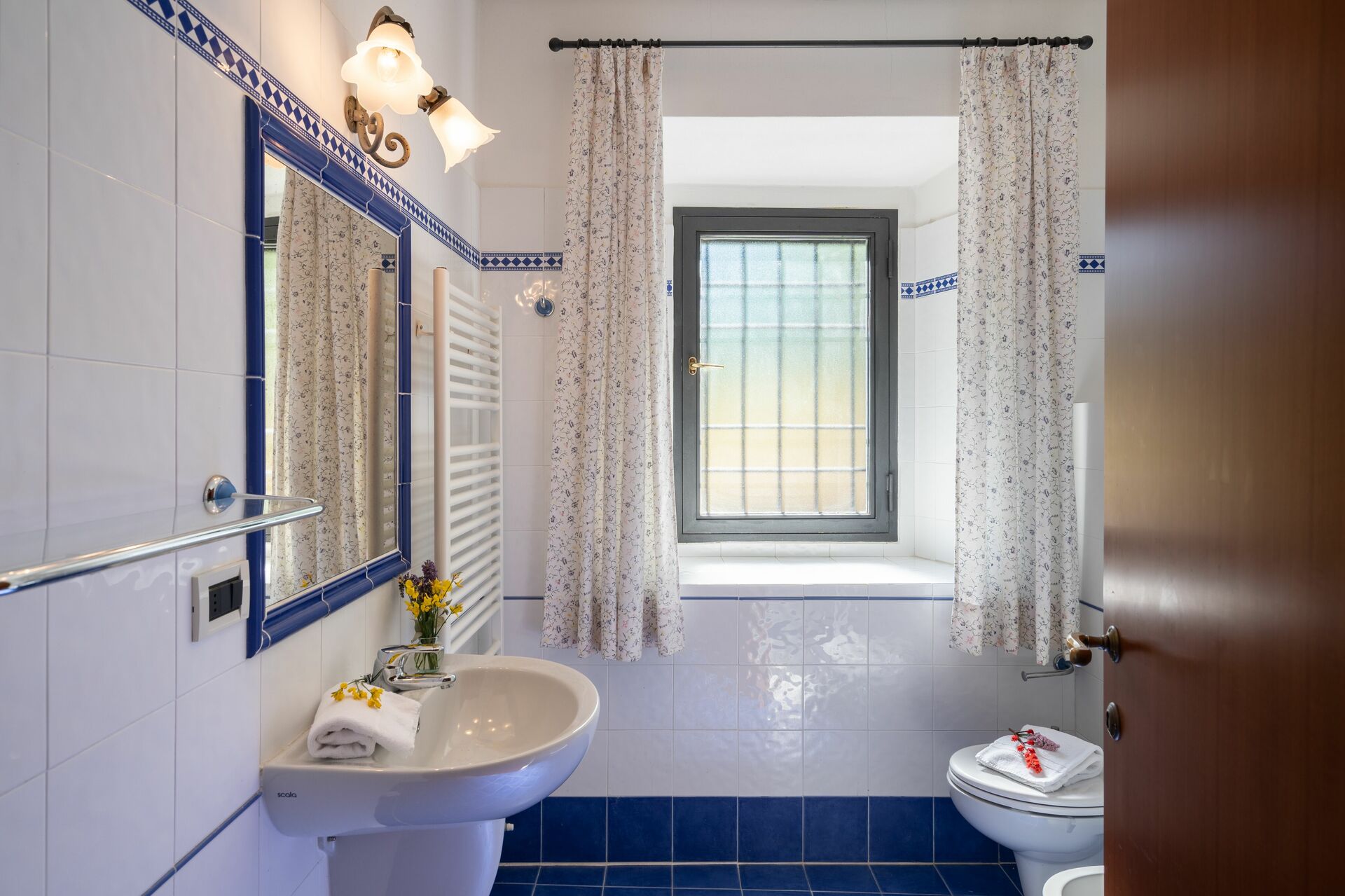 Badkamer 1: wastafel, toilet , bidet, douche, wasmachine.