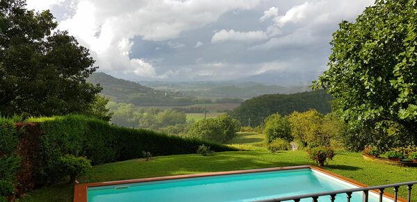 We spent a relaxing and peaceful two weeks at the end of the season at San Lorenzo. Cristiano, so kindly came out late at night to check us into the villa when we got lost finding the correct access track from the main road, as the sign is there but very small: keep your eyes peeled ! The continuous pool recirculating pump runs continuously so consumes a lot of electricity. The villa is a model of old fashioned Tuscan living although there are dishwasher, washing machine, extravagantly luxurious shower, microwave and wifi repeater hidden carefully to satisfy modern living cravings. The thick walls and small windows keep out the cold and baking sun very effectively. The view down the hill to the distant hills from both the patio table and even from the master bed through the small picture window are spectacular and transfixing as the weather changes.