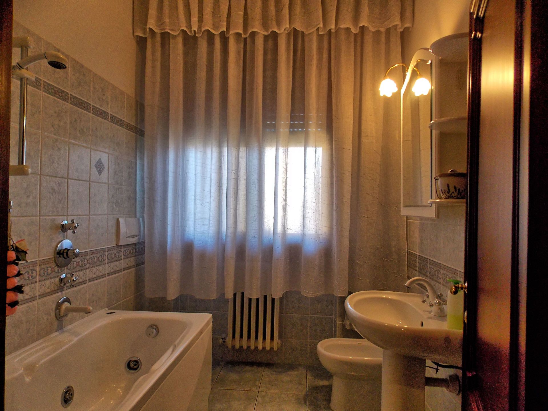 On the first floor: entrance hall, living / dining room with fireplace where you can access the large 120sqm terrace; dining room which leads outside with fireplace and satellite TV; kitchen which leads to a small balcony of 5 square meters., which is equipped with four burners, oven, microwave, fridge freezer, dishwasher; 2 double bedrooms; 1 bedroom with two single beds; 1 bathroom with shower (toilet / bidet); 1 bathroom with Jacuzzi tub (toilet / bidet);