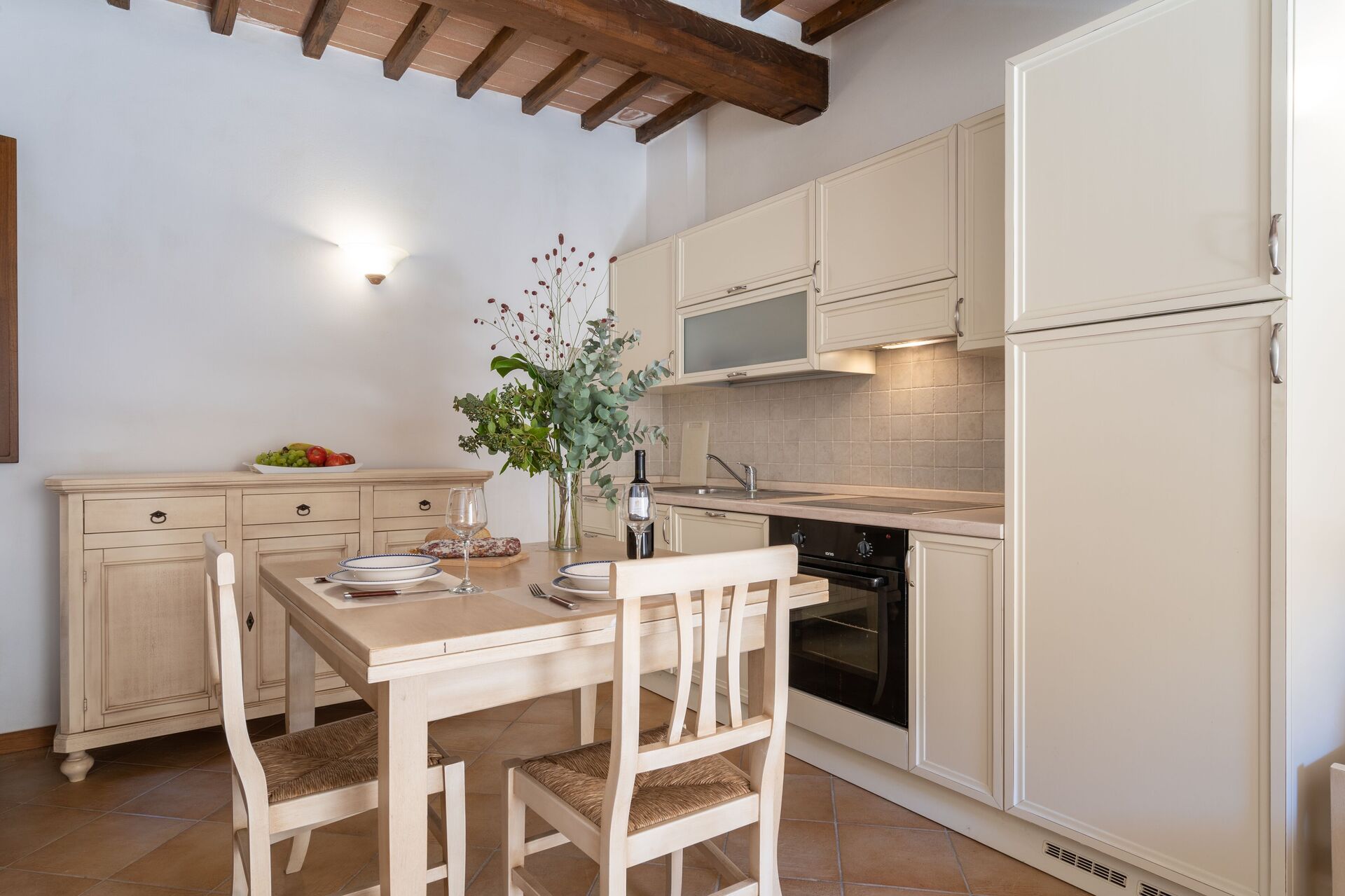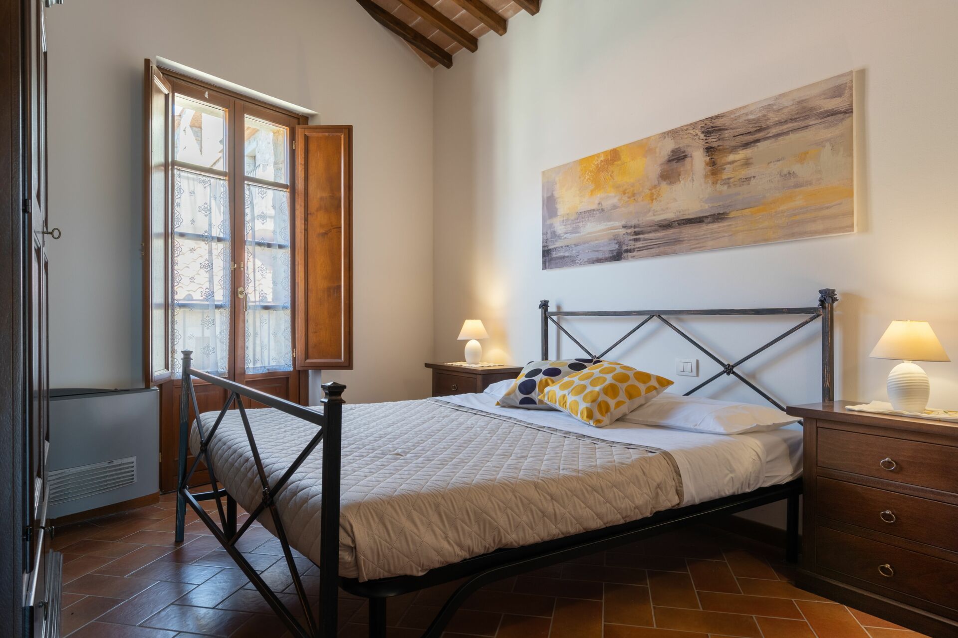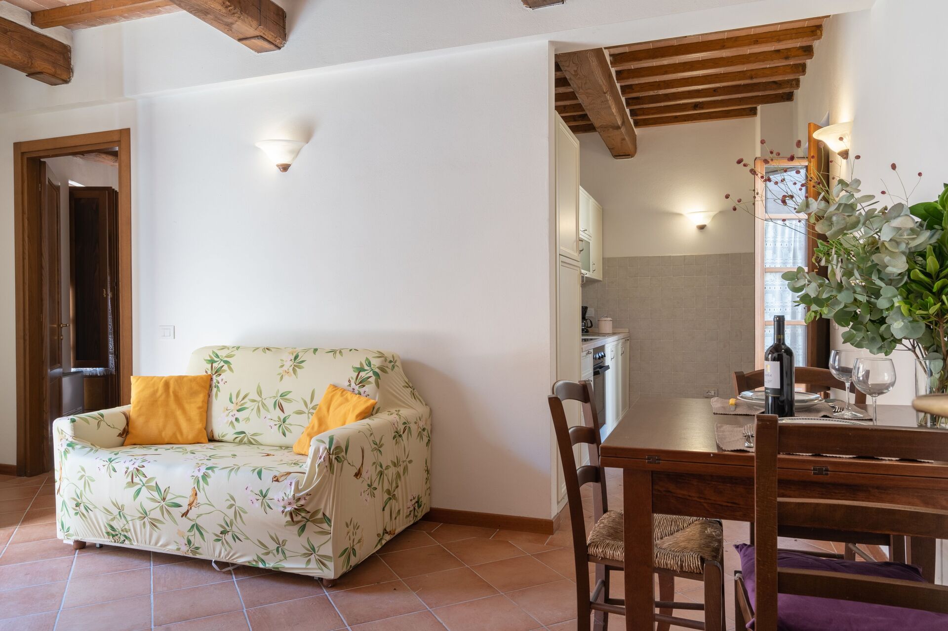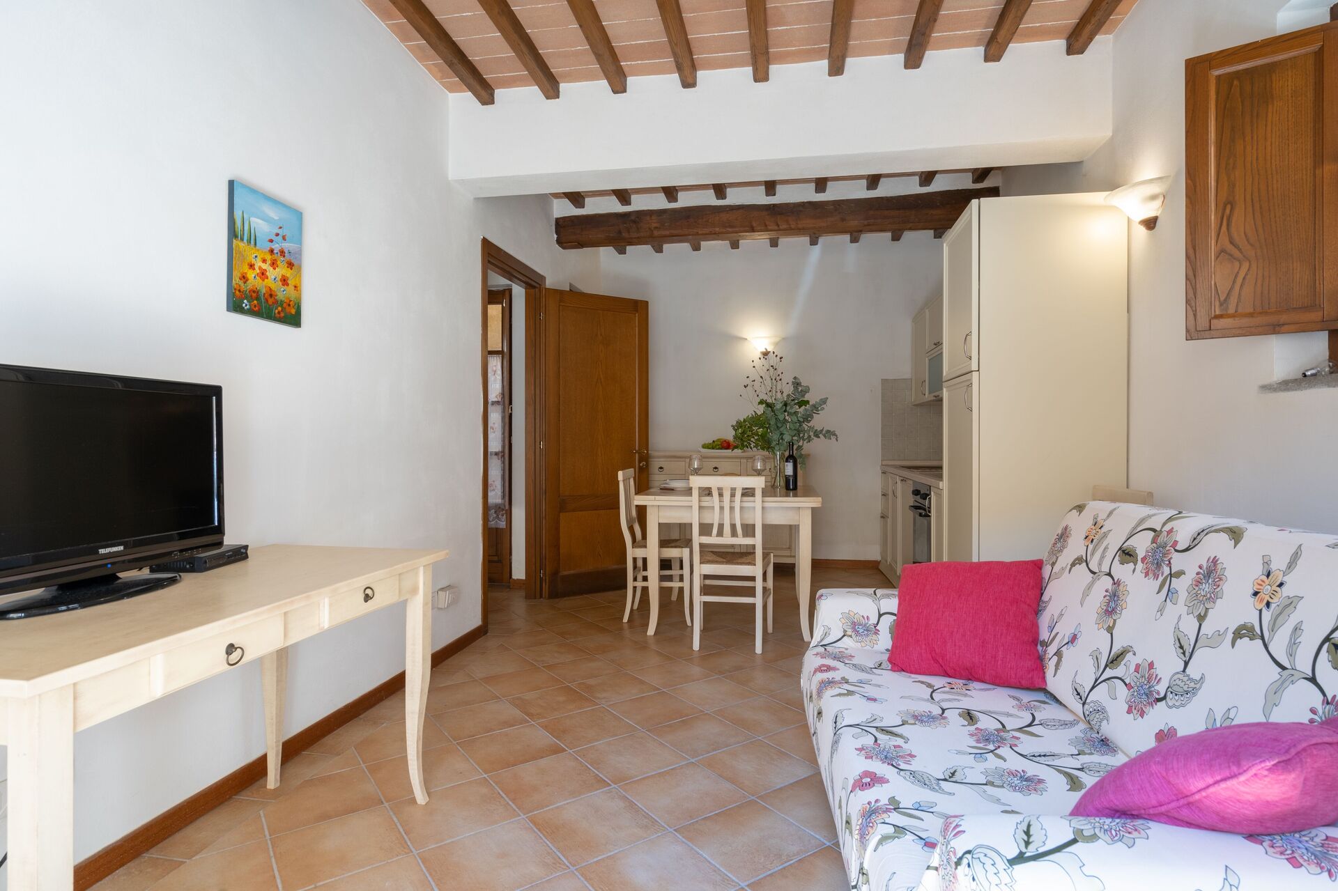 Wanneer u aankomt wordt u ontvangen door de eigenaar of beheerder en vindt u een fijne, schone en goed onderhouden woning met uitzicht over de heuvels ideaal voor een geweldige vakantie in Toscane. Voor uw vermaak vindt u een zwembad waar u kunt uitrusten terwijl u geniet van een heerlijk koel drankje na een drukke dag musea bezoeken. Elk appartement heeft zijn eigen woonruimte met keuken met voldoende keukengerei, servies en bestek, slaapkamer en badkamer. Veel mensen die samen met vrienden op reis zijn hebben voorkeur voor een vakantiehuis met meerdere appartementen, zodat ze samen de tijd door kunnen brengen in de gemeenschappelijke ruimtes zoals het zwembad of de tuin, maar toch ook beschikken over een eigen woonruimte.