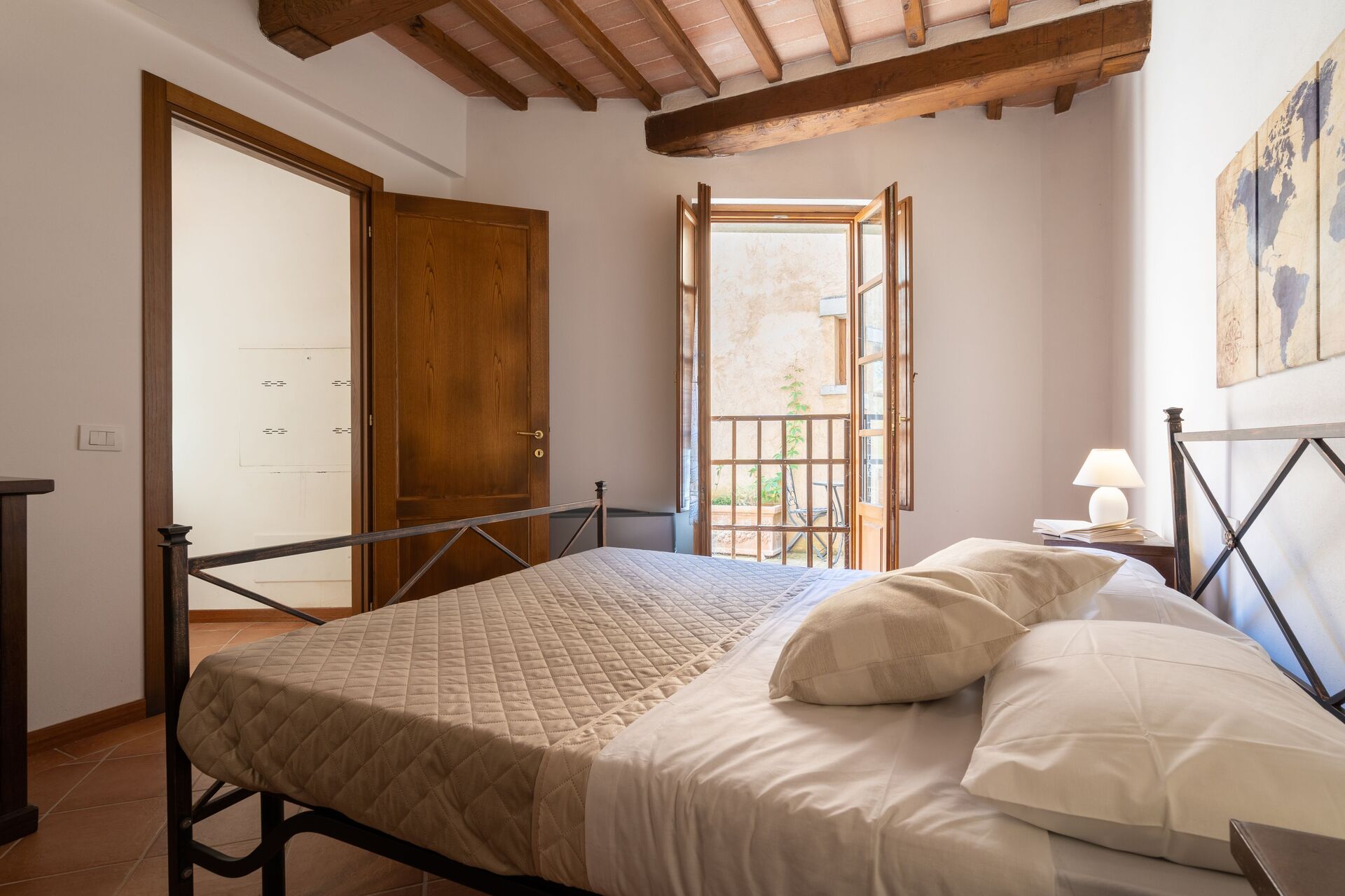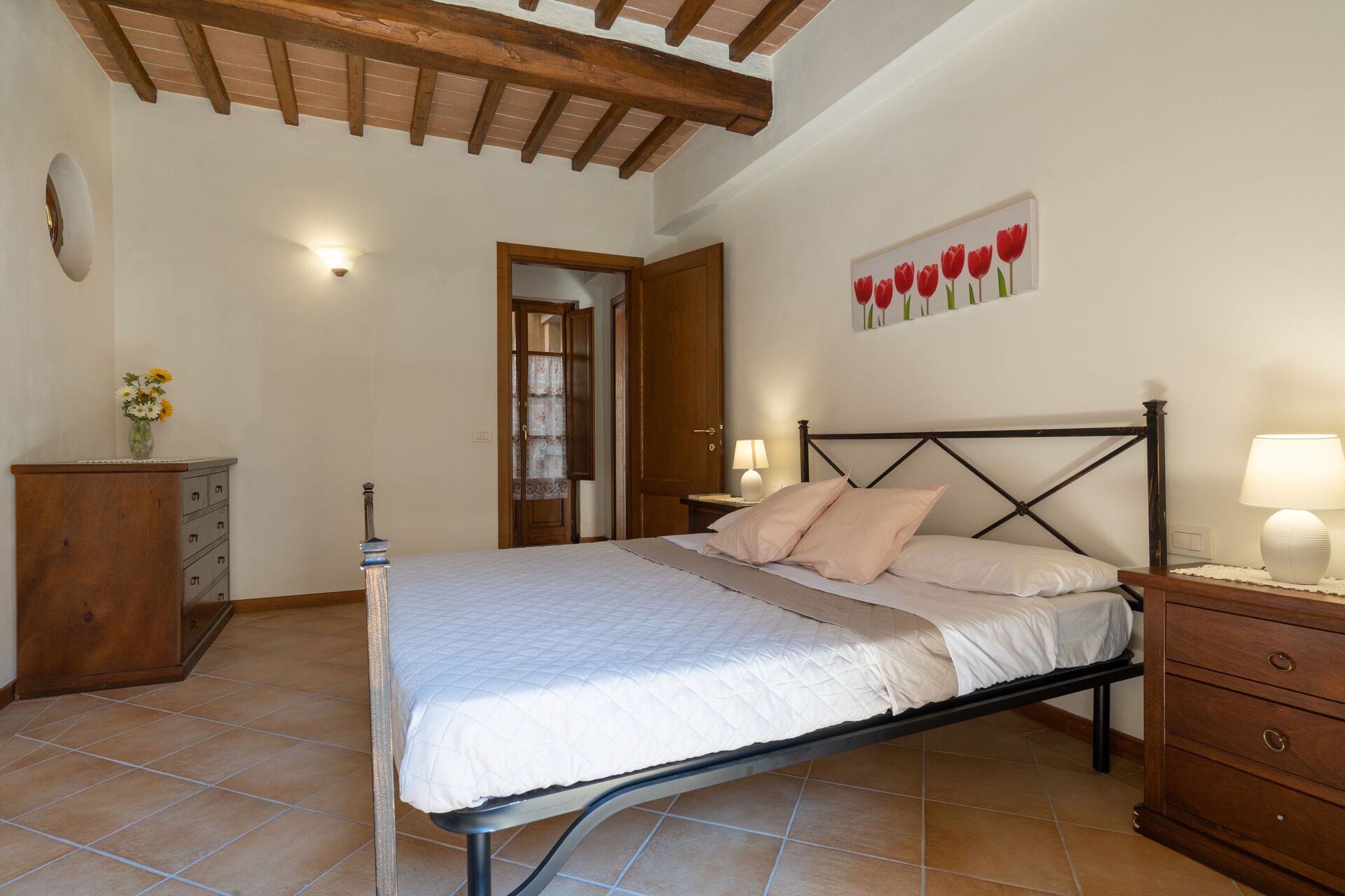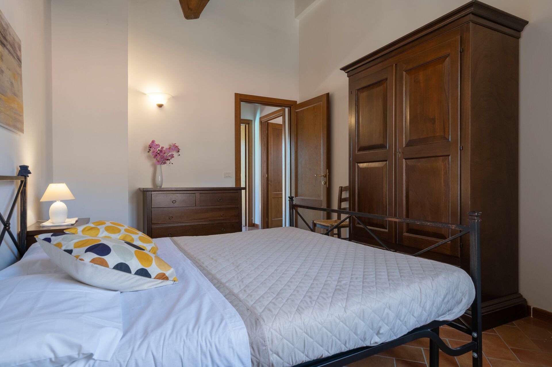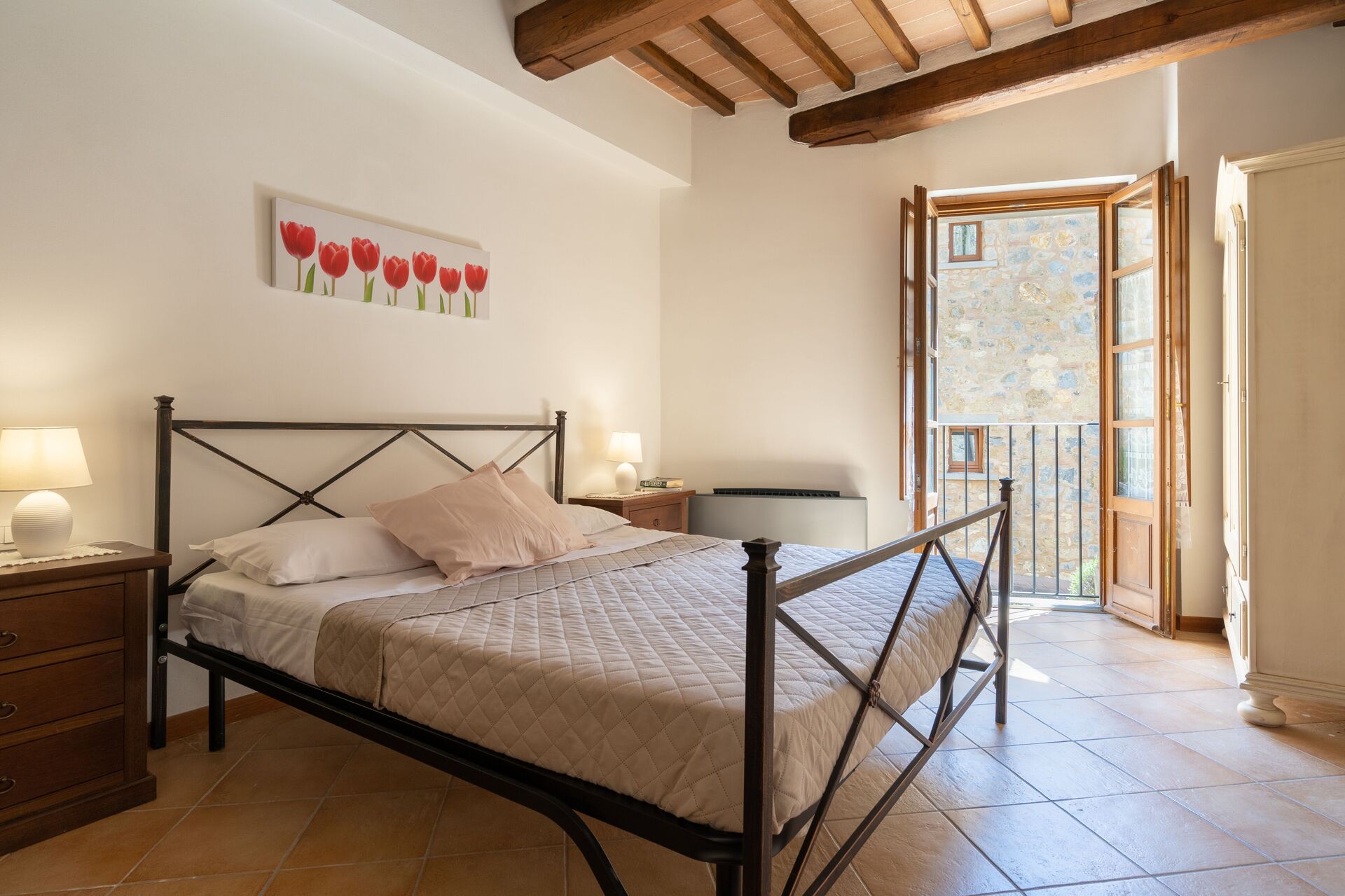 Wanneer u aankomt wordt u ontvangen door de eigenaar of beheerder en vindt u een fijne, schone en goed onderhouden woning met uitzicht over de heuvels ideaal voor een geweldige vakantie in Toscane. Voor uw vermaak vindt u een zwembad waar u kunt uitrusten terwijl u geniet van een heerlijk koel drankje na een drukke dag musea bezoeken. Elk appartement heeft zijn eigen woonruimte met keuken met voldoende keukengerei, servies en bestek, slaapkamer en badkamer. Veel mensen die samen met vrienden op reis zijn hebben voorkeur voor een vakantiehuis met meerdere appartementen, zodat ze samen de tijd door kunnen brengen in de gemeenschappelijke ruimtes zoals het zwembad of de tuin, maar toch ook beschikken over een eigen woonruimte.
