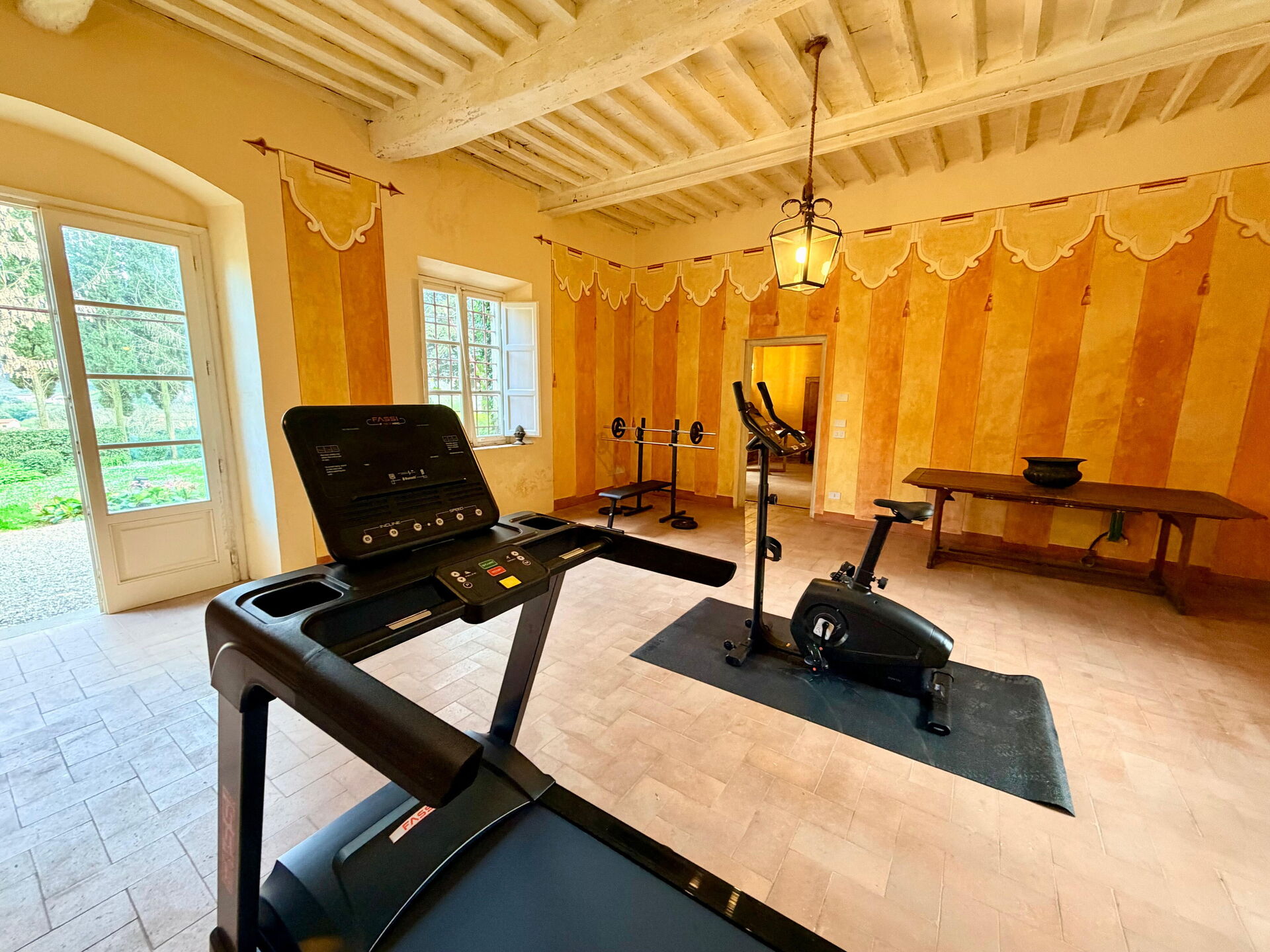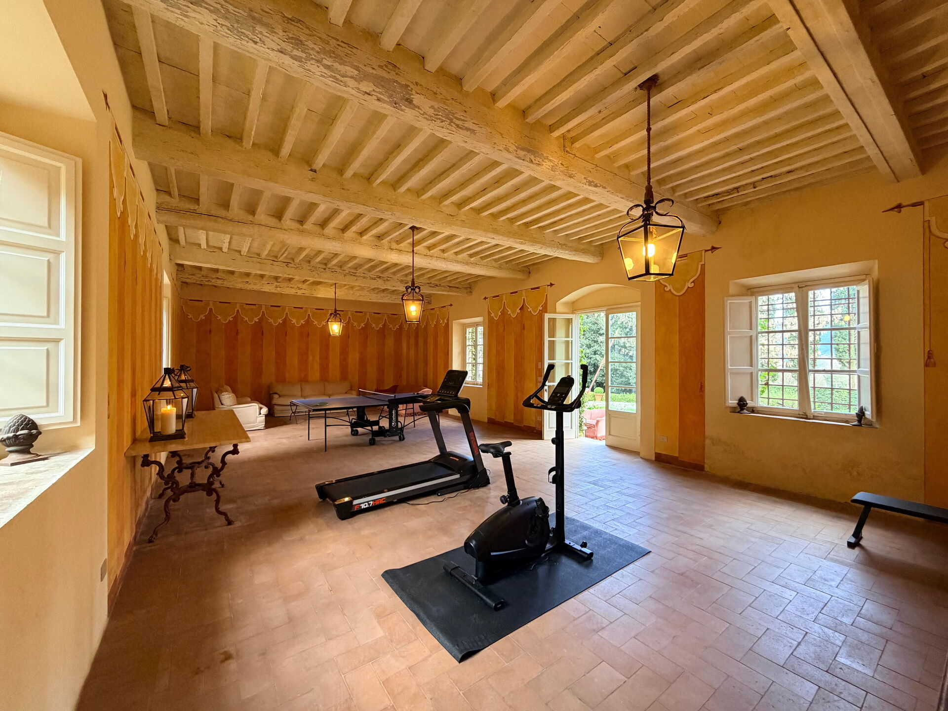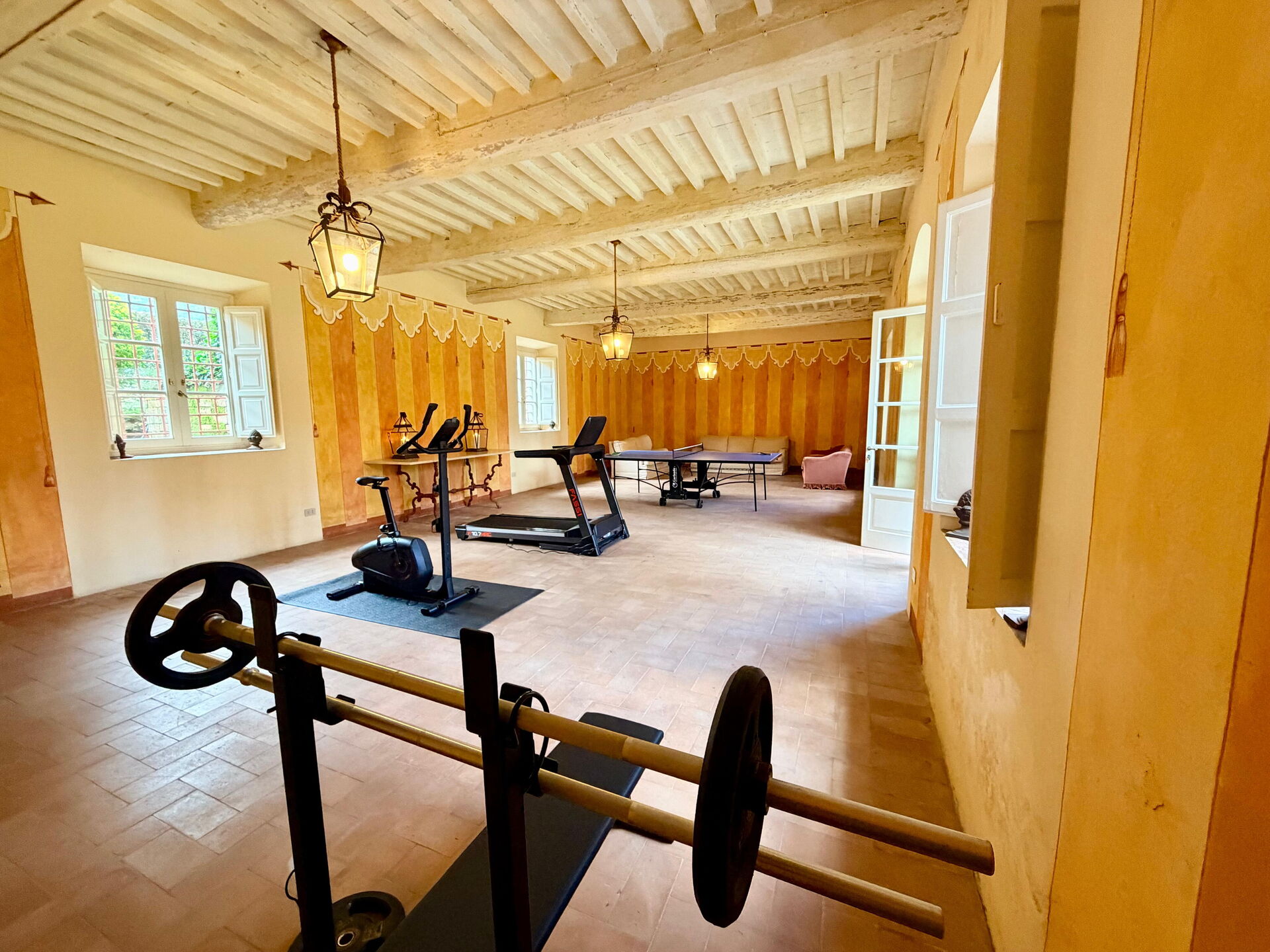The Villa is distant only 10 minutes from Lucca, Pisa and from the motorway’s entrance which leads to Florence (75 kms), to the Versilian Coast (20 km to Viareggio beach, 28 km to Forte dei Marmi) and to many other important Tuscan cities. The airport of Pisa is at about 20 kms; 2 km to the nearest village for grocery shopping; 2 km to Bar, coffee shop, restaurant, pizzeria; 5 km to Supermarket; 4 km to tennis court and even less time to horseback riding; 3 Golf courses at 40 minutes in Montecatini, Forte dei Marmi, Tirrenia (Pisa); also nearby are the elegant “Terme di San Giuliano” for spa treatments and thermal waters. You can also ask for custom made tours to major places in Tuscany (in Chianti and in Lucca to visit wineries, for wine tasting, for lunch/dinners). Tours to the famous 5 Terre, to Portofino, to Puccini Opera Festival at Puccini Lake; Concerts almost every night in S. Giovanni church in Lucca; monthly antique market on every third week end; Major outlet (Prada, D & G, Gucci) within one hour; Ferrari Gallery in Maranello Modena (two hours), etc.