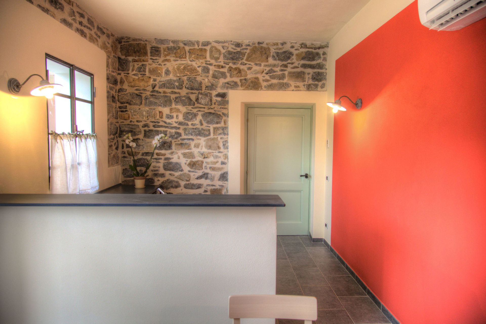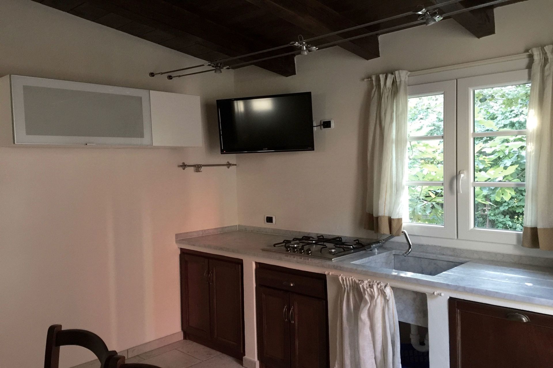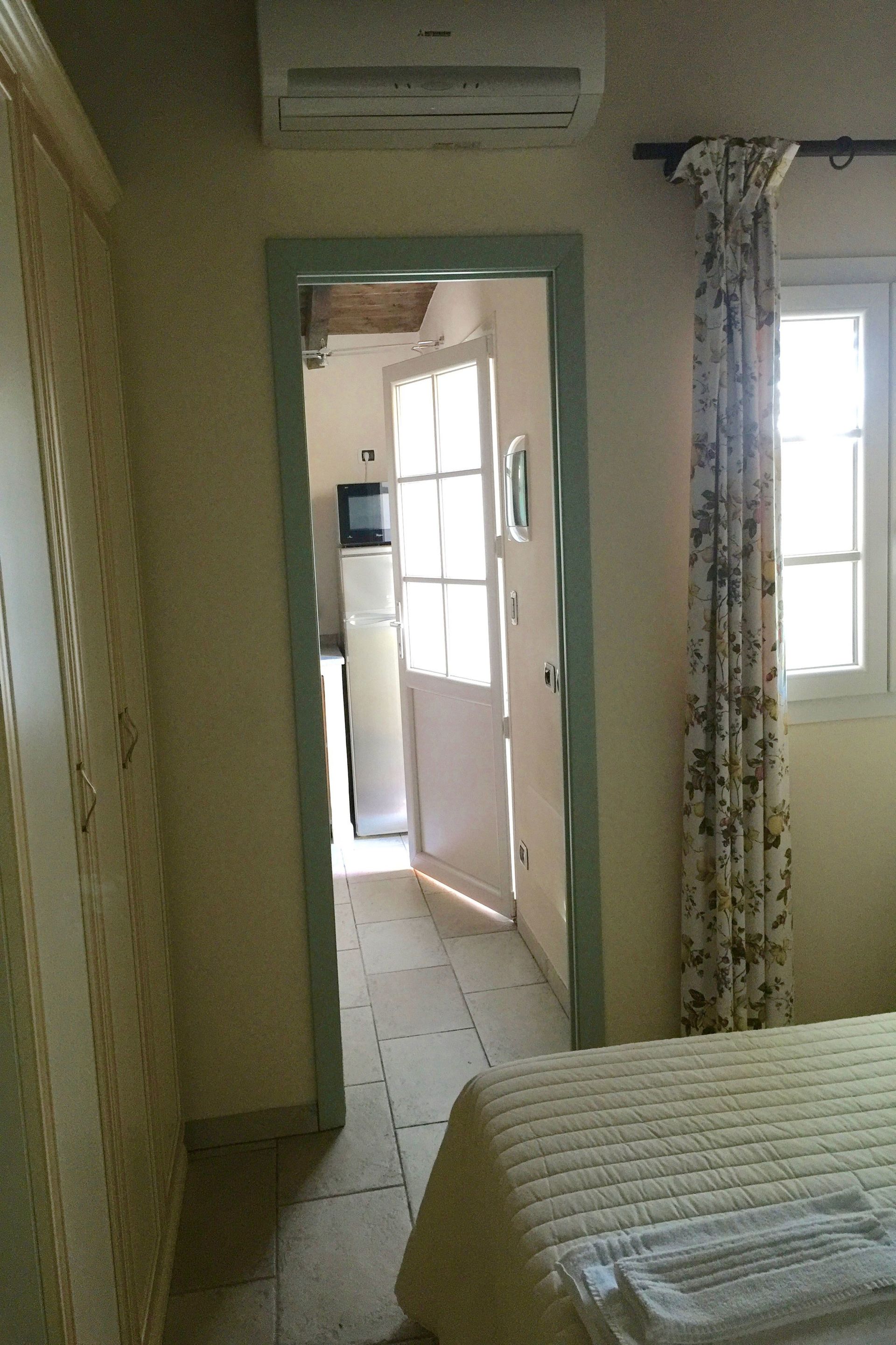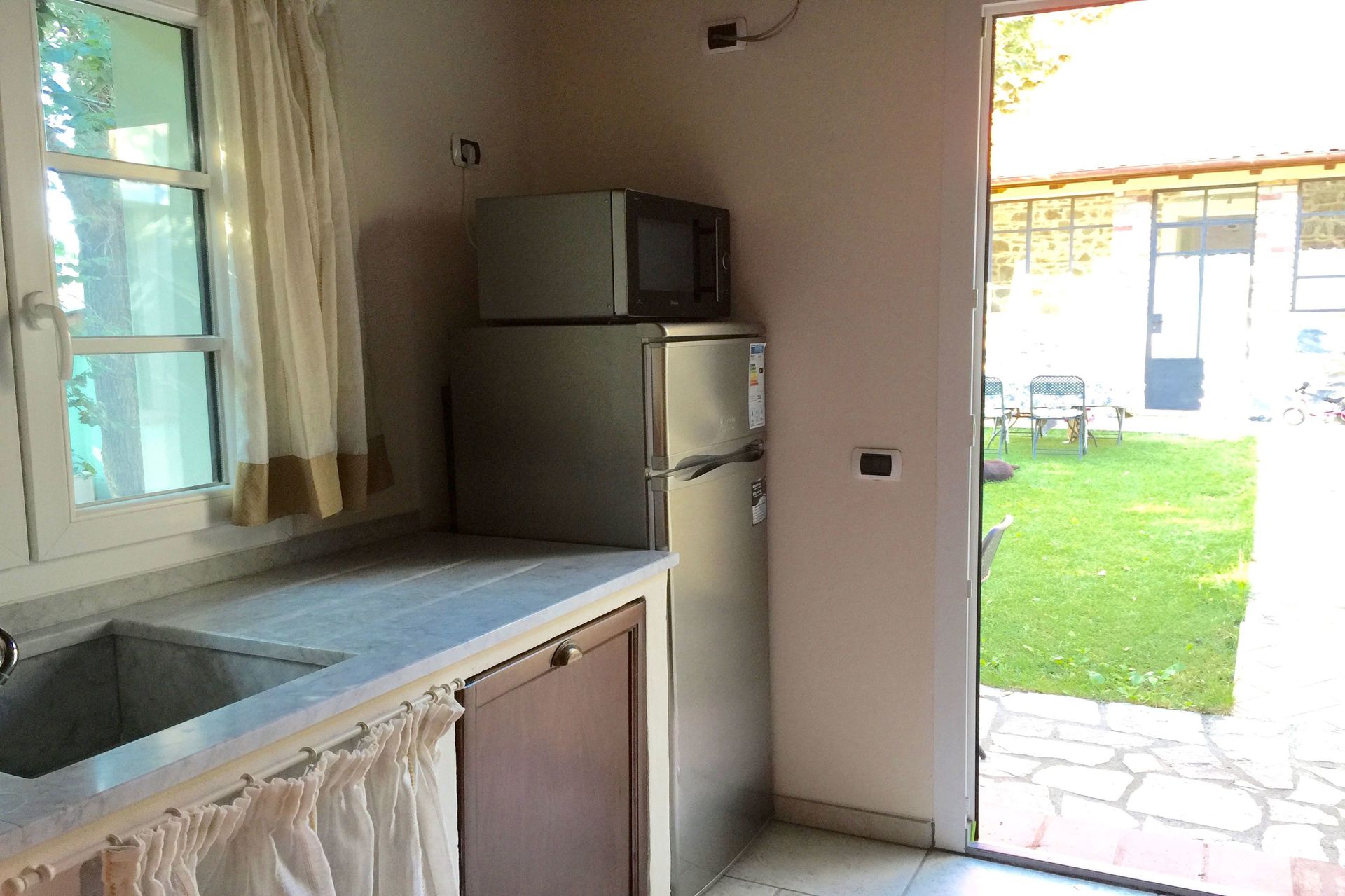 about 35 sqm, living room with kitchen, a double bedroom and a bathroom, on the ground floor with direct access to the garden.