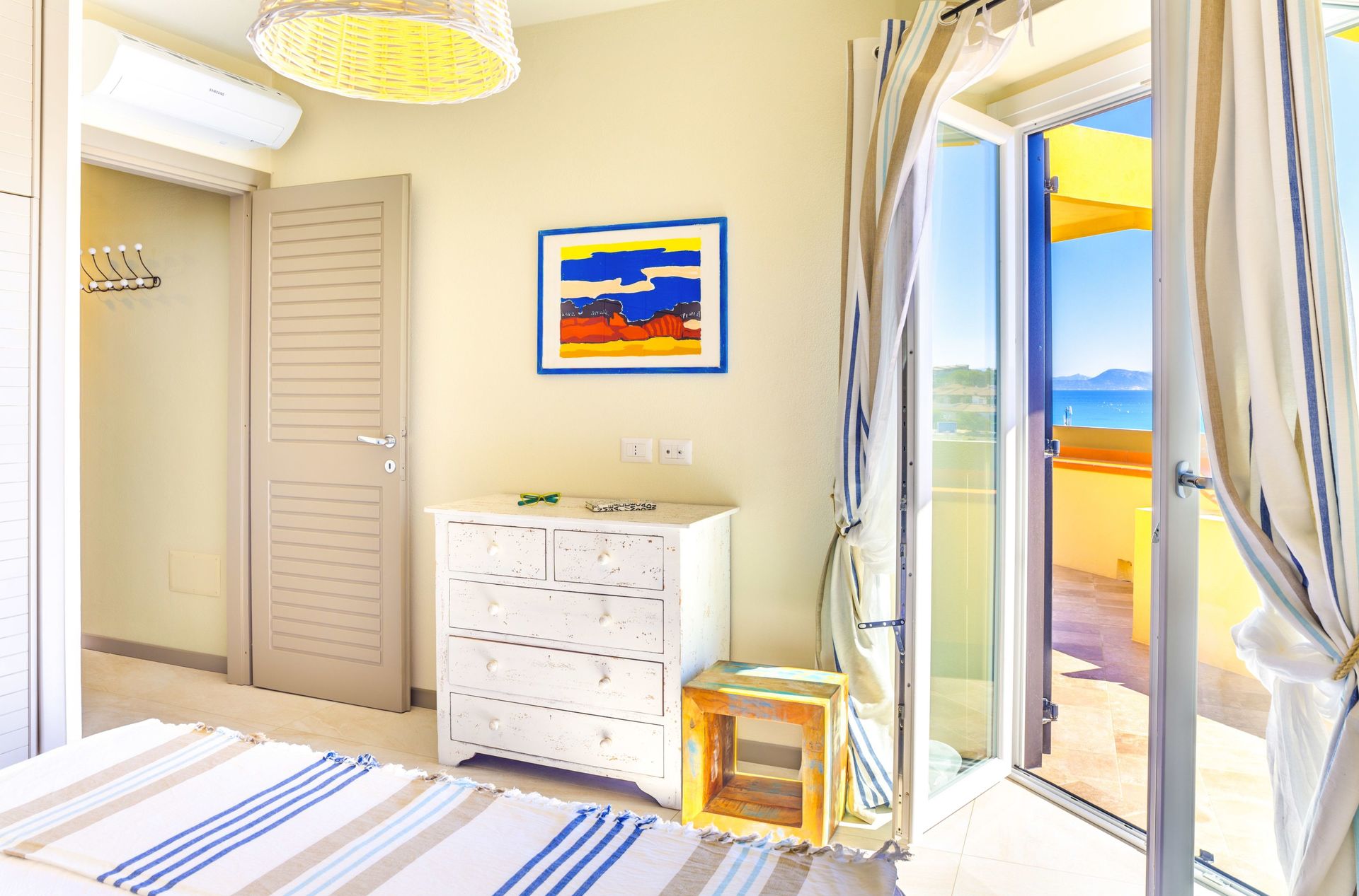 - 1e slaapkamer: met een tweepersoonsbed en een glazen deur naar het terras met zeezicht.