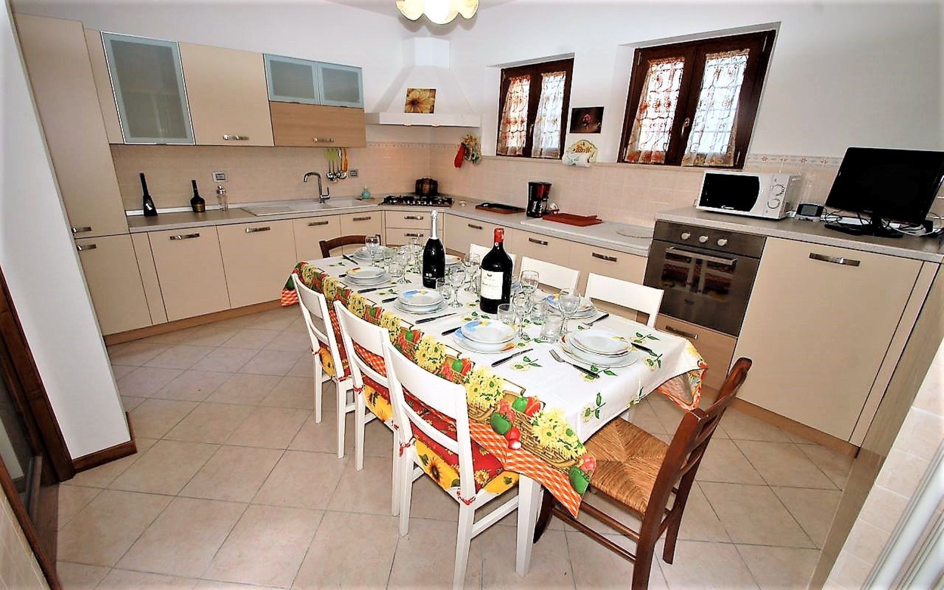 Keuken (16 m2): goed uitgeruste keuken, eettafel (personen: 8), vaatwasser, ijskast, diepvriezer, magnetron, kookplaat, oven, broodrooster, italiaans koffiezetapparaat, koffiezetapparaat, WIFI internet, hor, tv, uitgang naar de tuin, uitgang naar het terras.