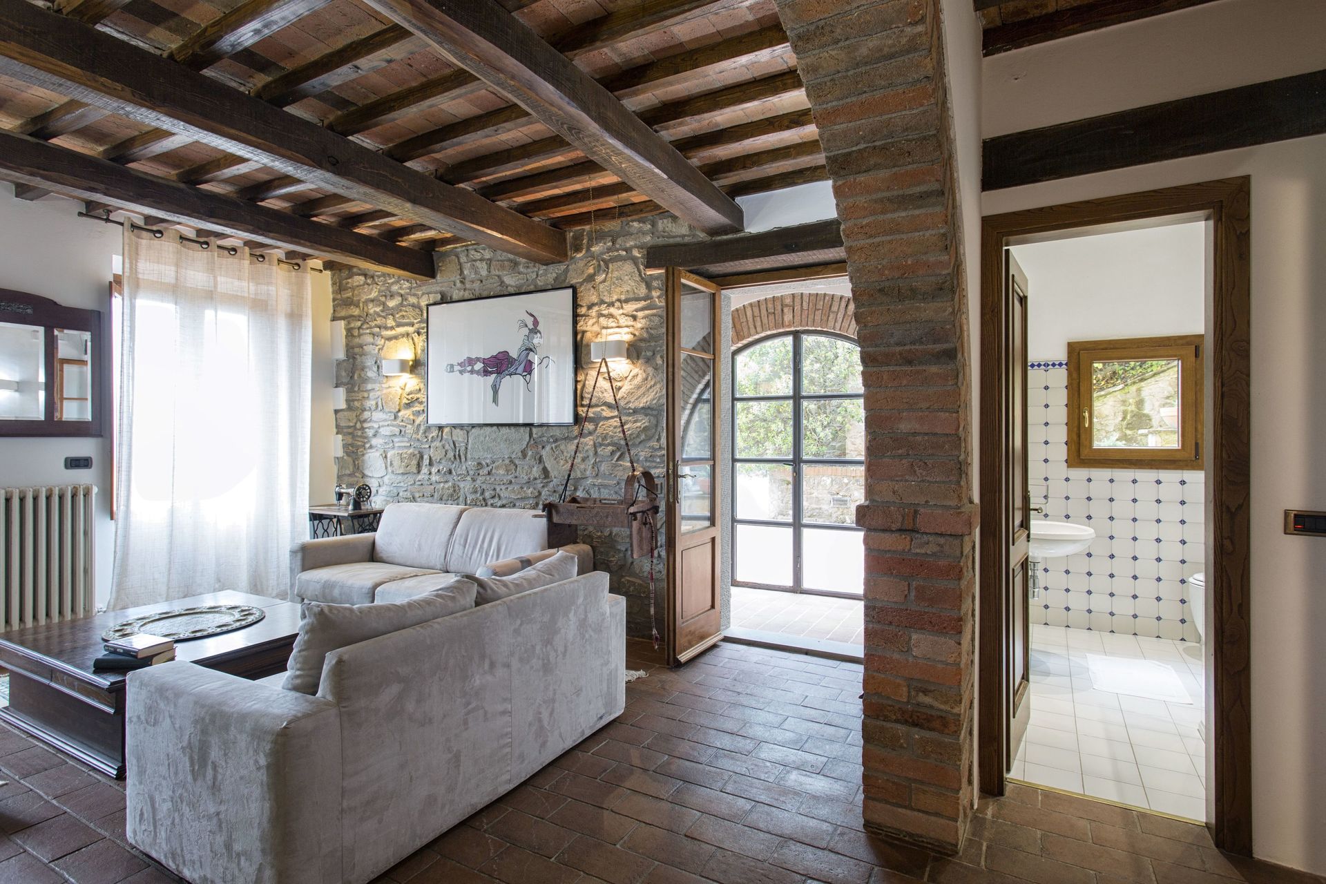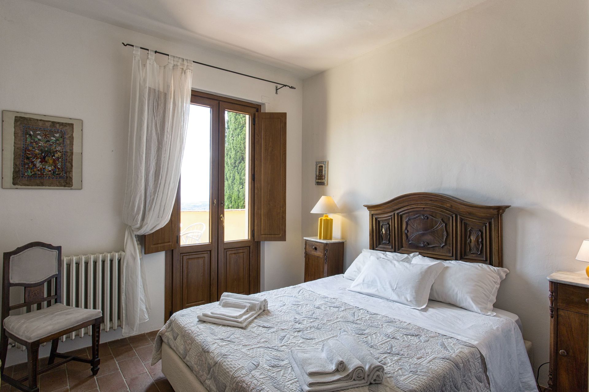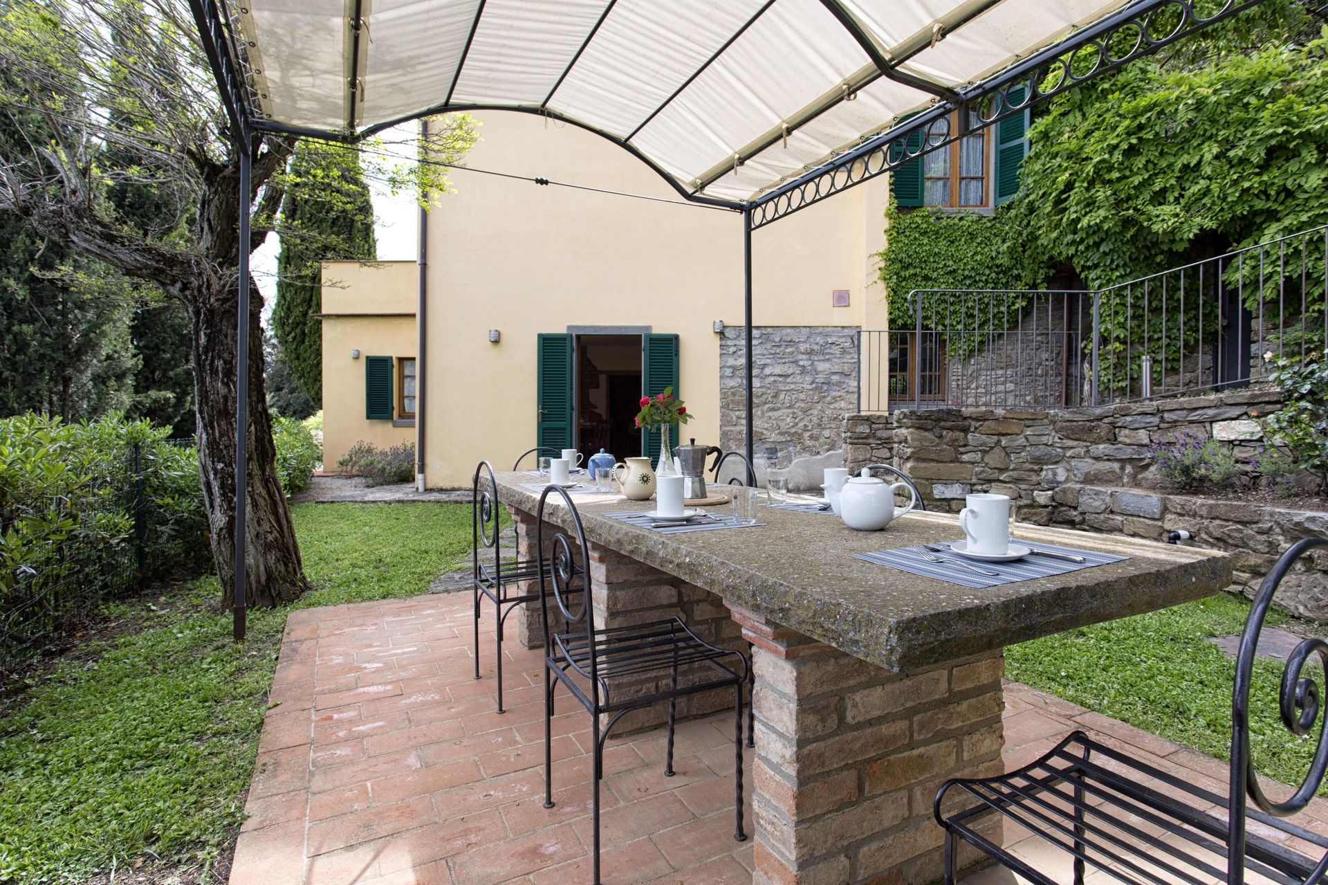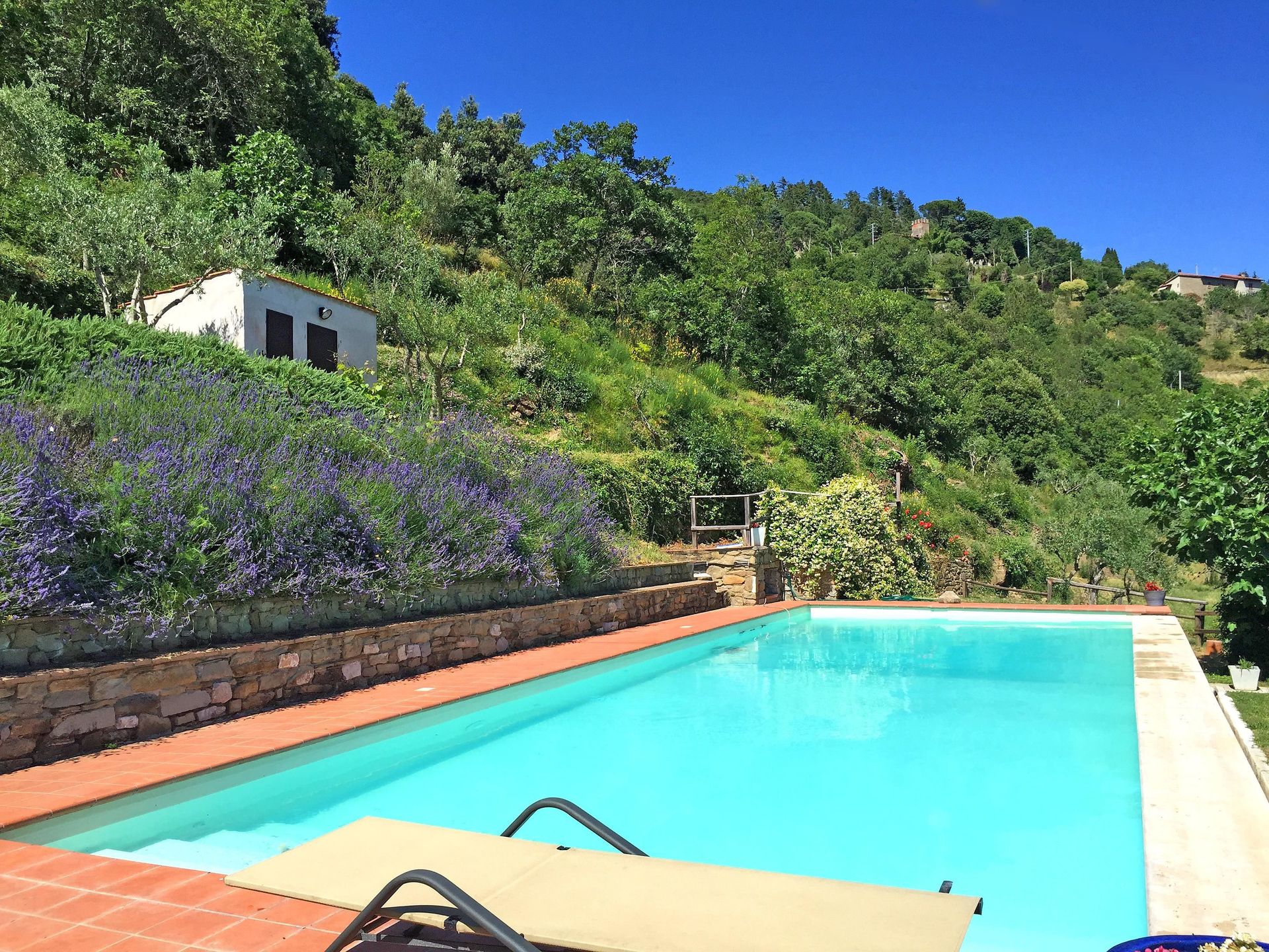 Zodra u aankomt vindt u een fraaie, schone en goed onderhouden woning met uitzicht over de bergen en de heuvels ideaal voor een ontspannen vakantie in Toscane. Hoe u de dagen ook doorbrengt - met excursies, winkelen, musea bezoek of rijdende door het prachtige landschap, zodra u thuis komt kunt u ontspannen samen met familie en vrienden bij het zwembad voor een perfecte afsluiting van nog weer een dag in Toscane. Dineren met vrienden en familie is een grote onderdeel van de Toscaanse cultuur. Maak gebruik van de goed uitgeruste keuken om maaltijden te bereiden met lokale producten terwijl u op vakantie bent. De keuken biedt o.a. een koffiezetapparaat, magnetron oven, broodrooster, fornuis en ijskast, en natuurlijk ook voldoende servies en bestek voor minstens tien personen. Eet buiten net zoals een echte Toskaan, een terras met tuinmeubilair is ideaal om te genieten van het heerlijke eten, de familie en het prachtige Toscaanse klimaat.