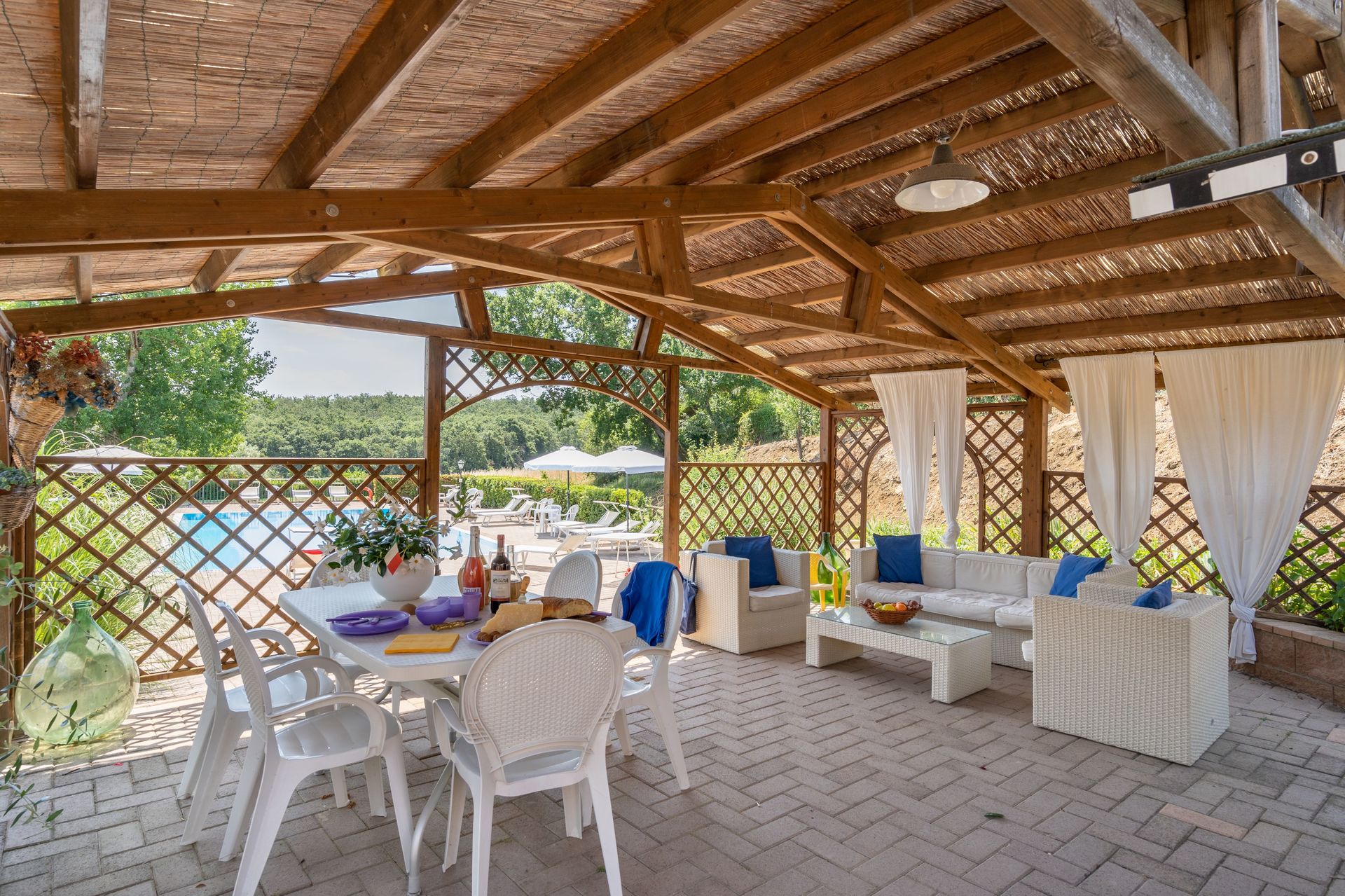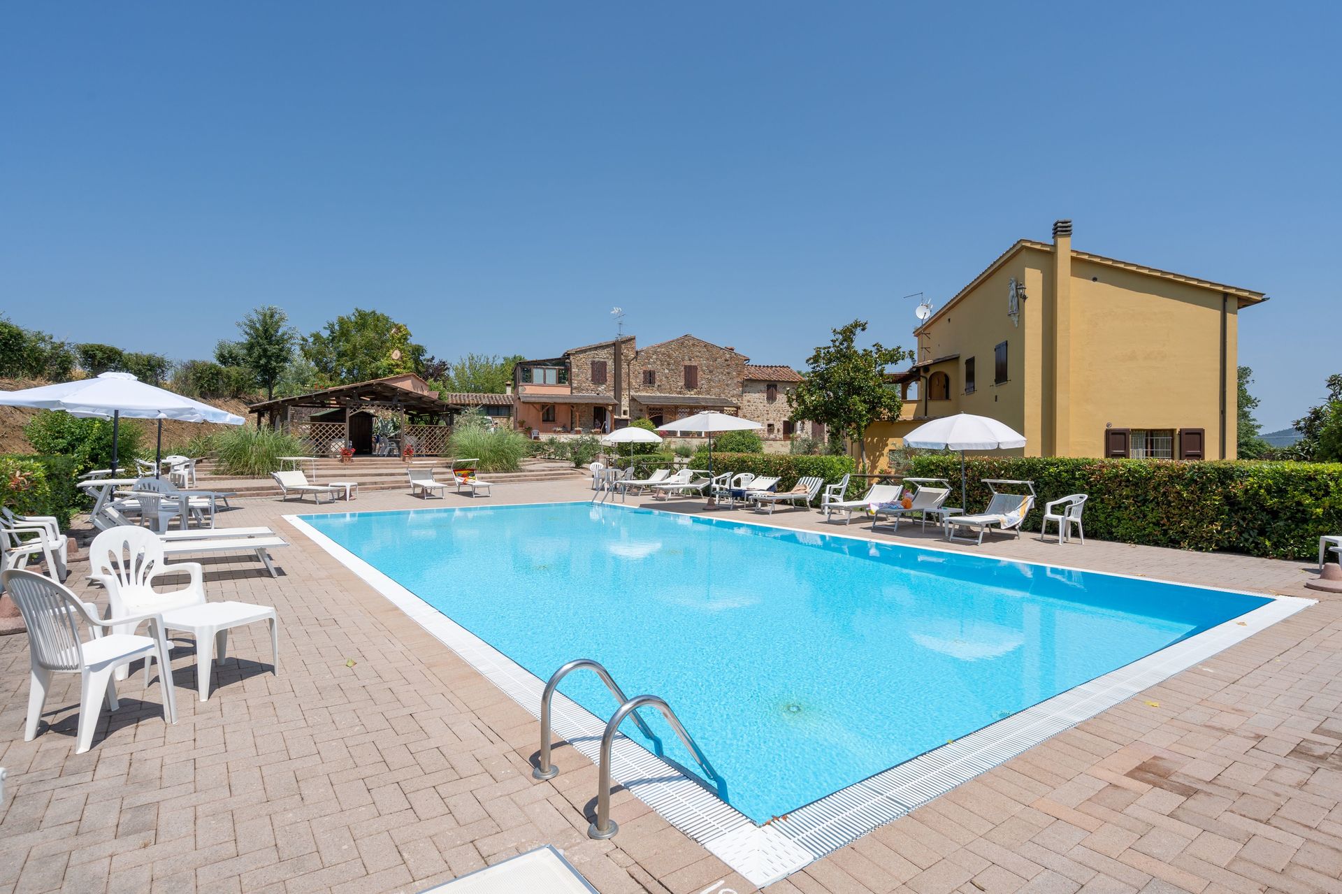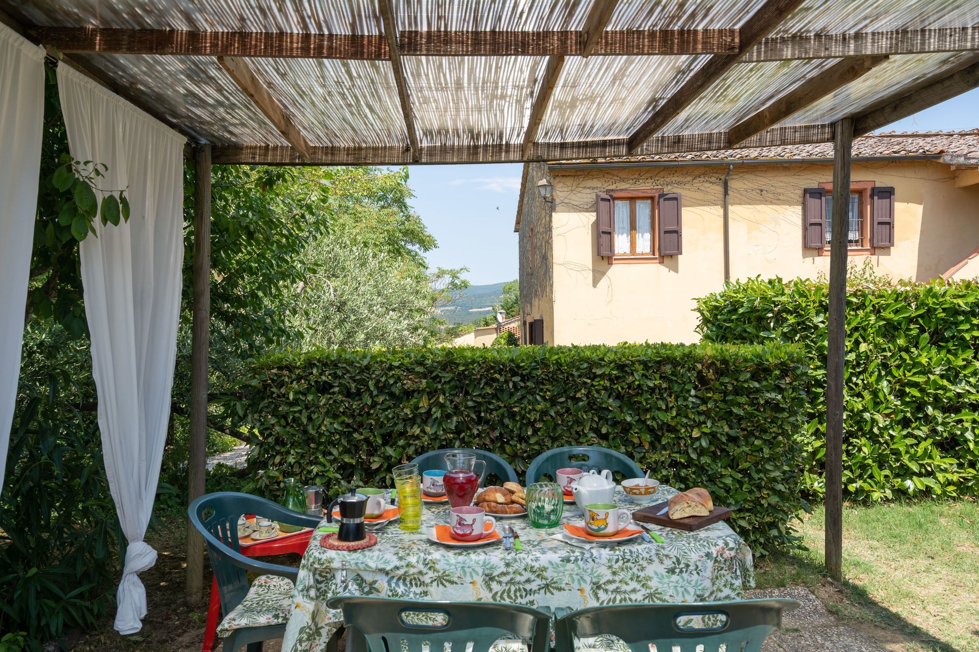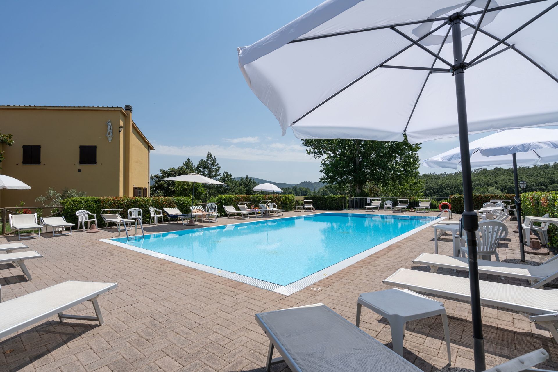 Zodra u aankomt vindt u een mooie, schone en goed onderhouden woning met uitzicht over de bergen en de heuvels ideaal voor een geweldige vakantie in Toscane. Hoe u de dagen ook doorbrengt - met excursies, winkelen, musea bezoek of rijdende door het prachtige landschap, zodra u thuis komt kunt u uitrusten samen met familie en vrienden bij het zwembad voor een perfecte afsluiting van nog weer een dag in Toscane. Op het terrein is er voor uw genoegen een barbecue en patio. Veel mensen die samen reizen met vrienden verkiezen een vakantiehuis met meerdere appartementen waar ze samen de tijd door kunnen brengen in de gemeenschappelijk ruimtes zoals het zwembad of de tuin, maar toch met eigen woonruimte met slaapkamer en badkamer. Daarnaast heeft ieder appartement een eigen keuken met genoeg keukengerei, servies en bestek.