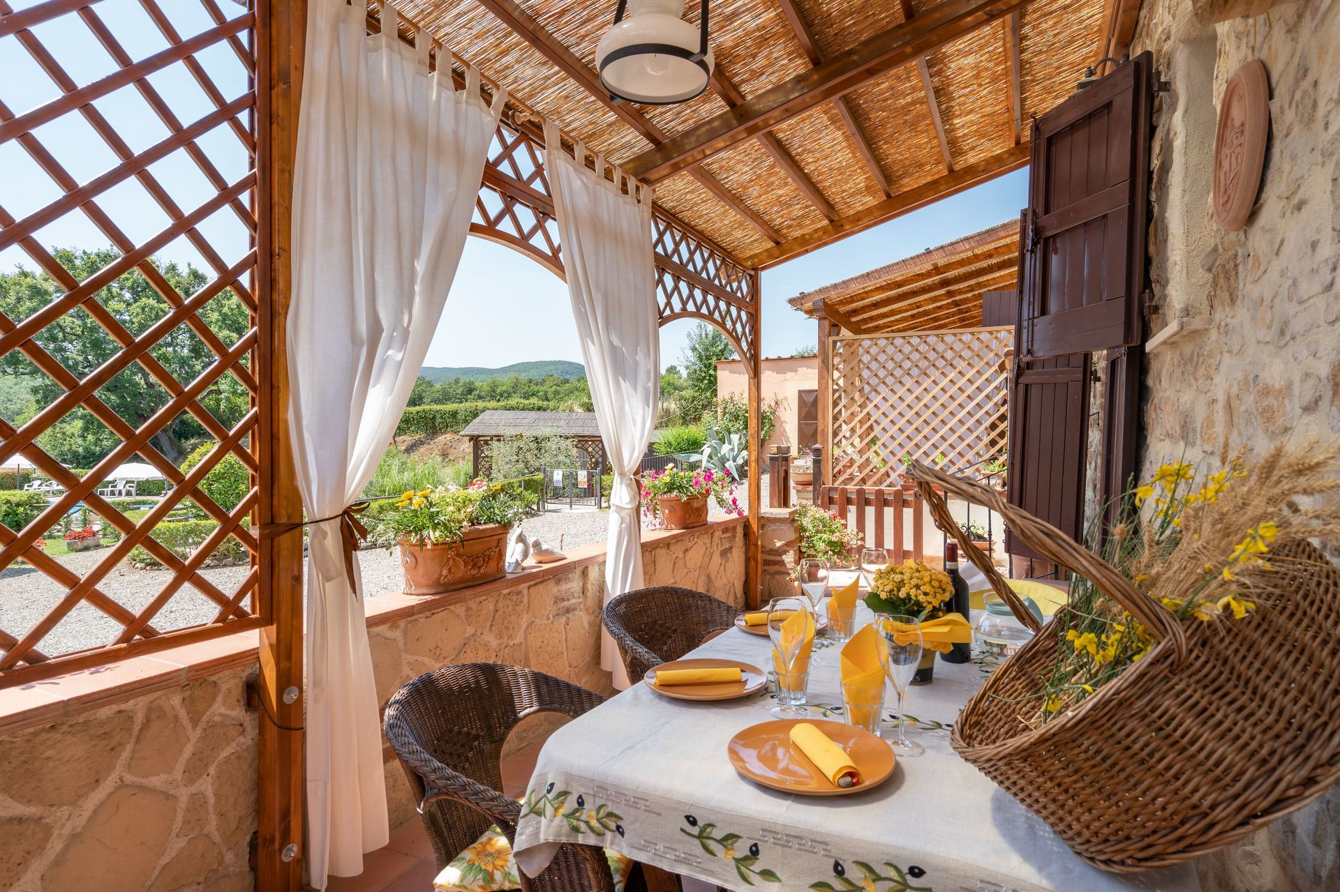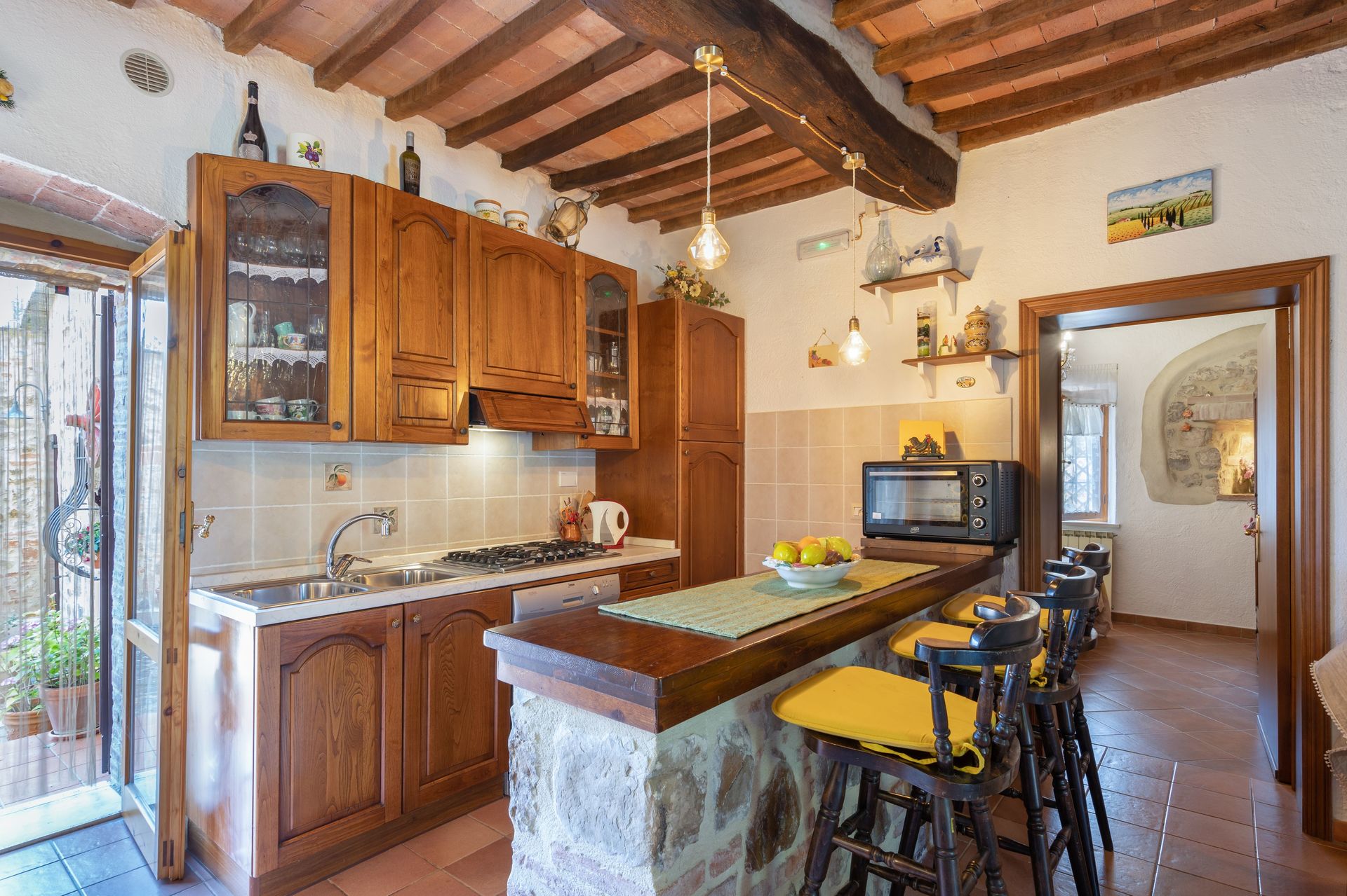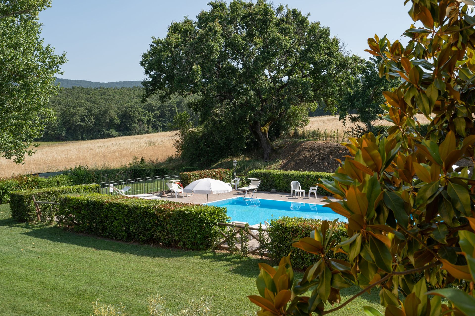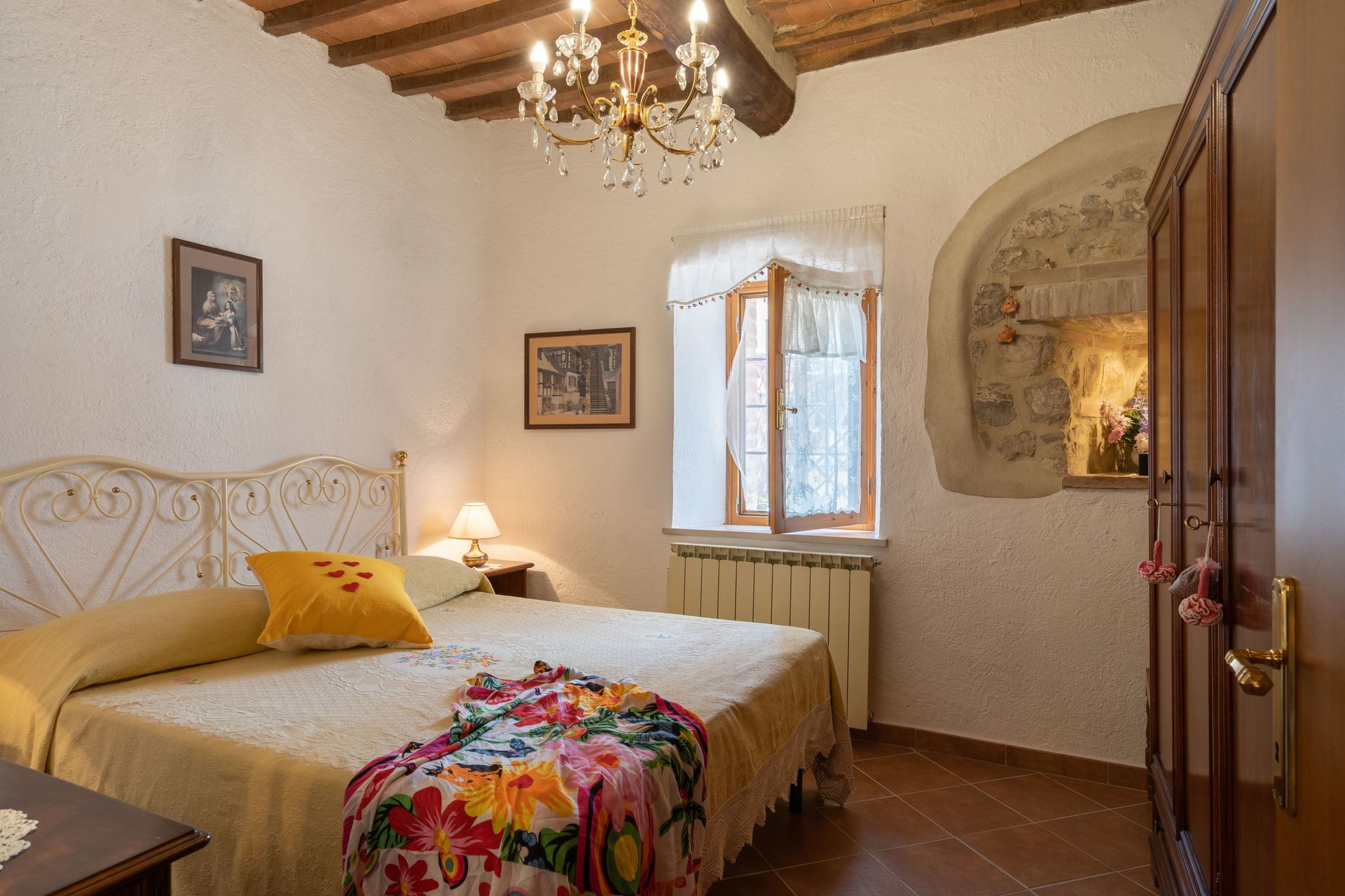 Zodra u aankomt vindt u een mooie, schone en goed onderhouden woning met uitzicht over de bergen en de heuvels ideaal voor een geweldige vakantie in Toscane. Hoe u de dagen ook doorbrengt - met excursies, winkelen, musea bezoek of rijdende door het prachtige landschap, zodra u thuis komt kunt u uitrusten samen met familie en vrienden bij het zwembad voor een perfecte afsluiting van nog weer een dag in Toscane. Op het terrein is er voor uw genoegen een barbecue en patio. Veel mensen die samen reizen met vrienden verkiezen een vakantiehuis met meerdere appartementen waar ze samen de tijd door kunnen brengen in de gemeenschappelijk ruimtes zoals het zwembad of de tuin, maar toch met eigen woonruimte met slaapkamer en badkamer. Daarnaast heeft ieder appartement een eigen keuken met genoeg keukengerei, servies en bestek.