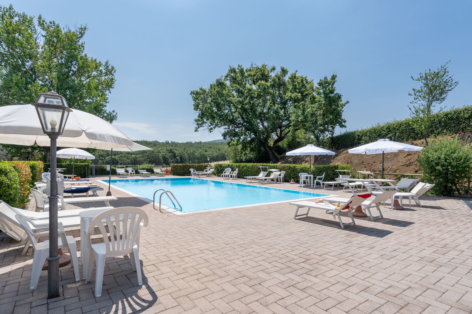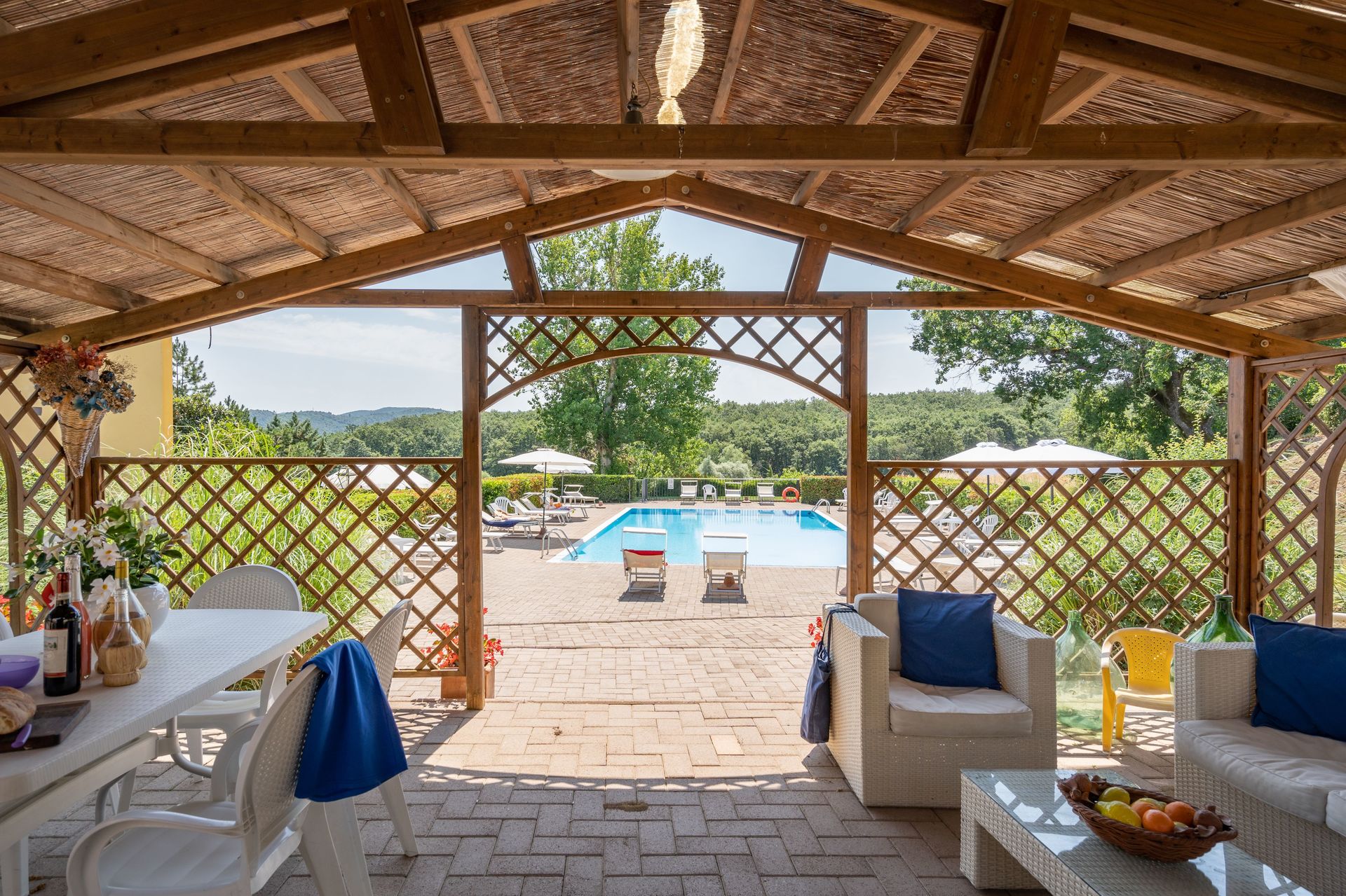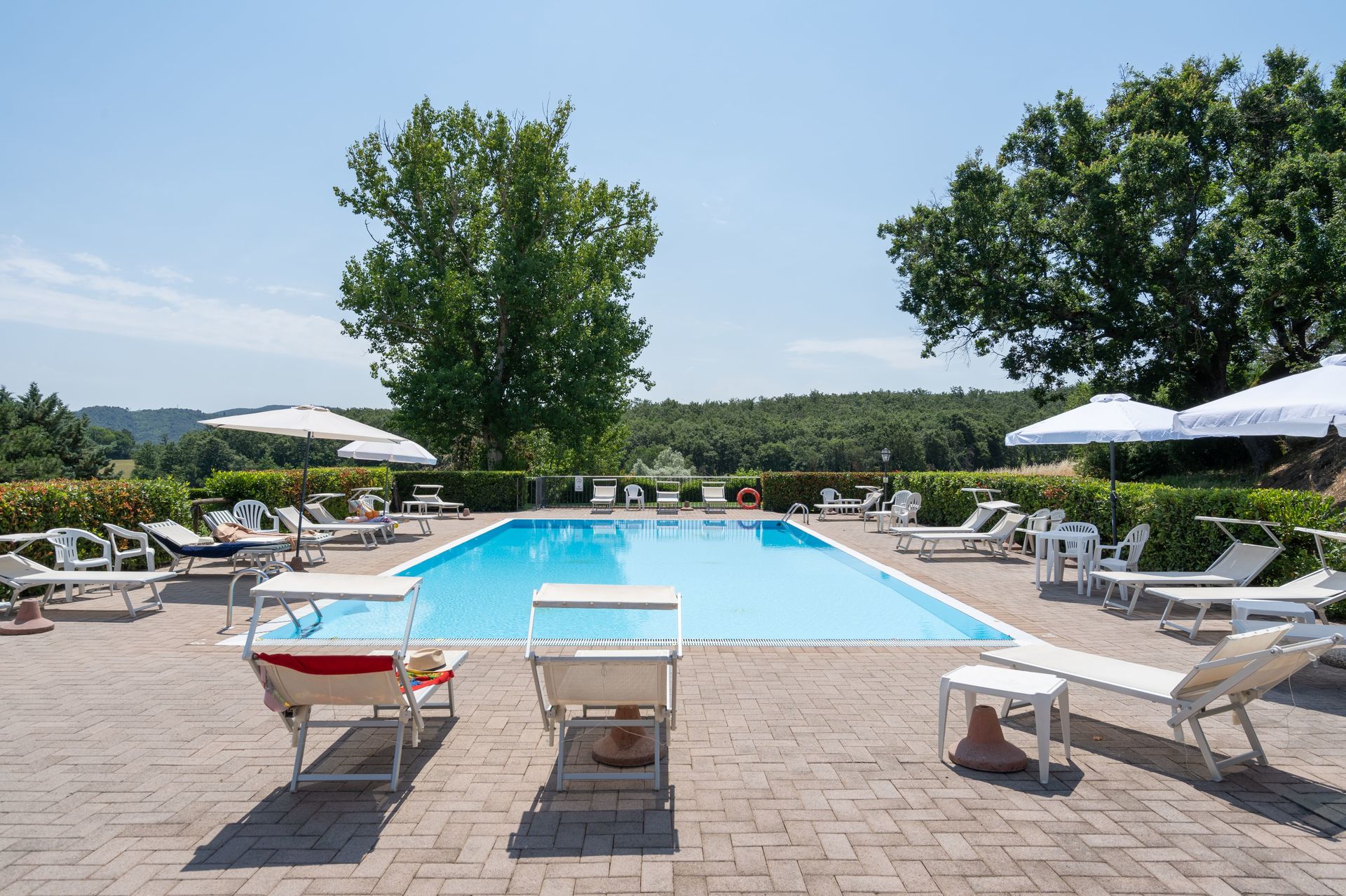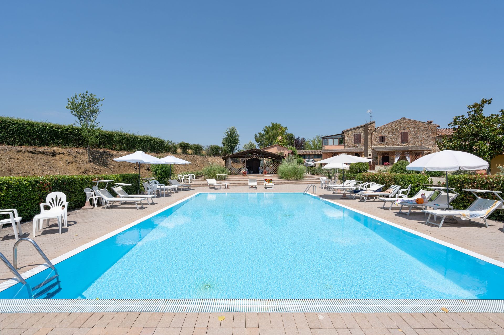 Zodra u aankomt vindt u een mooie, schone en goed onderhouden woning met uitzicht over de bergen en de heuvels ideaal voor een geweldige vakantie in Toscane. Hoe u de dagen ook doorbrengt - met excursies, winkelen, musea bezoek of rijdende door het prachtige landschap, zodra u thuis komt kunt u uitrusten samen met familie en vrienden bij het zwembad voor een perfecte afsluiting van nog weer een dag in Toscane. Op het terrein is er voor uw genoegen een barbecue en patio. Veel mensen die samen reizen met vrienden verkiezen een vakantiehuis met meerdere appartementen waar ze samen de tijd door kunnen brengen in de gemeenschappelijk ruimtes zoals het zwembad of de tuin, maar toch met eigen woonruimte met slaapkamer en badkamer. Daarnaast heeft ieder appartement een eigen keuken met genoeg keukengerei, servies en bestek.