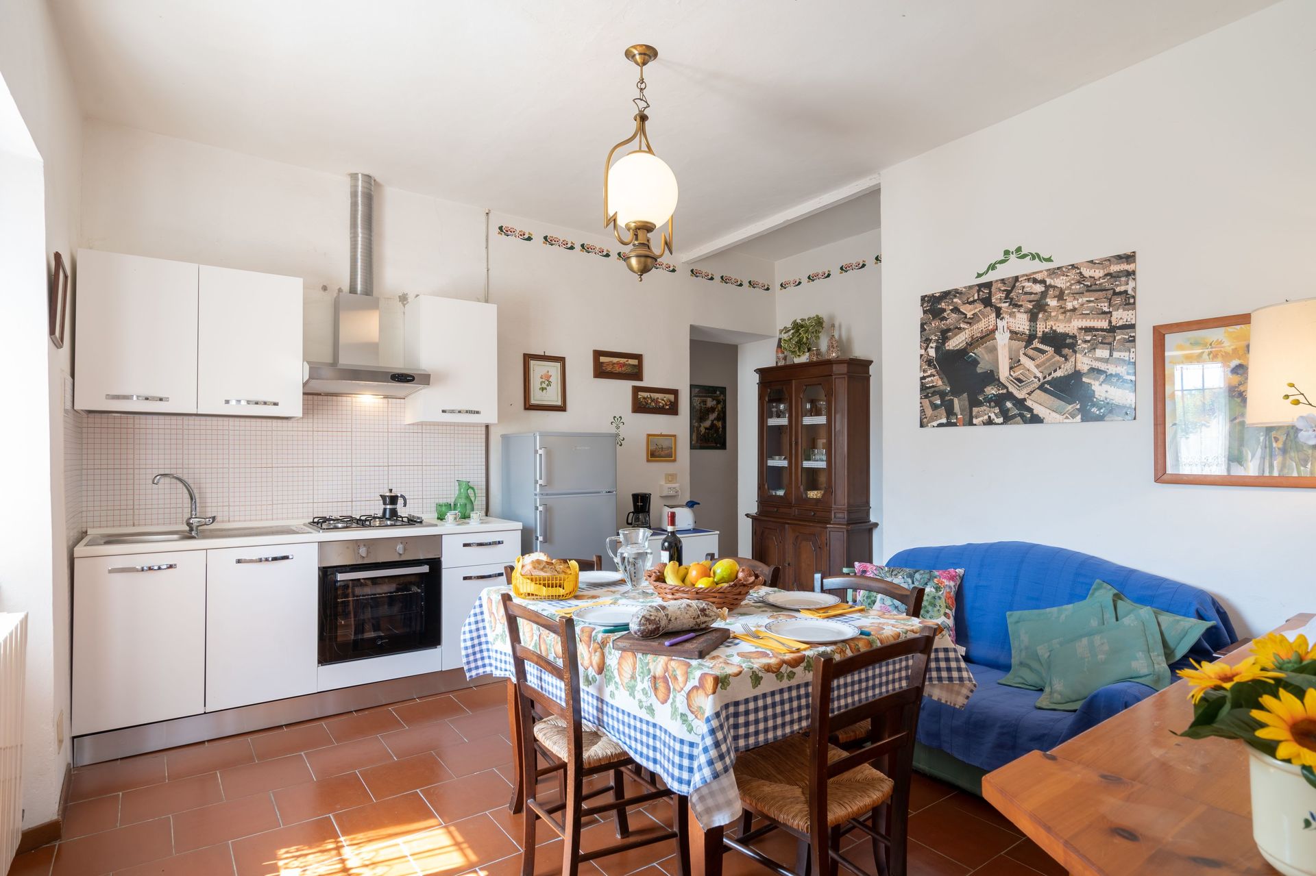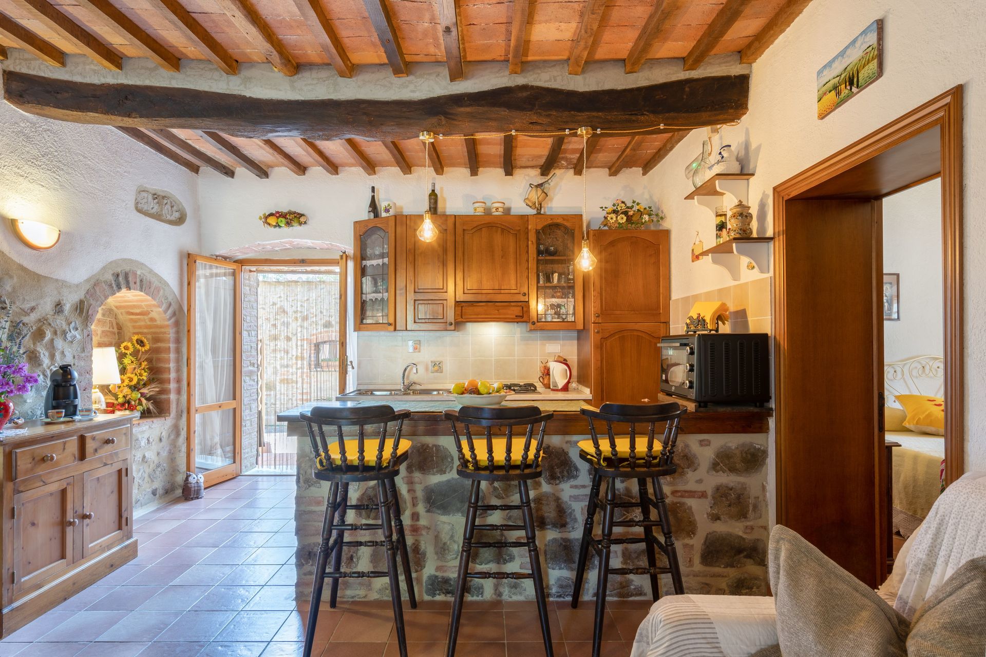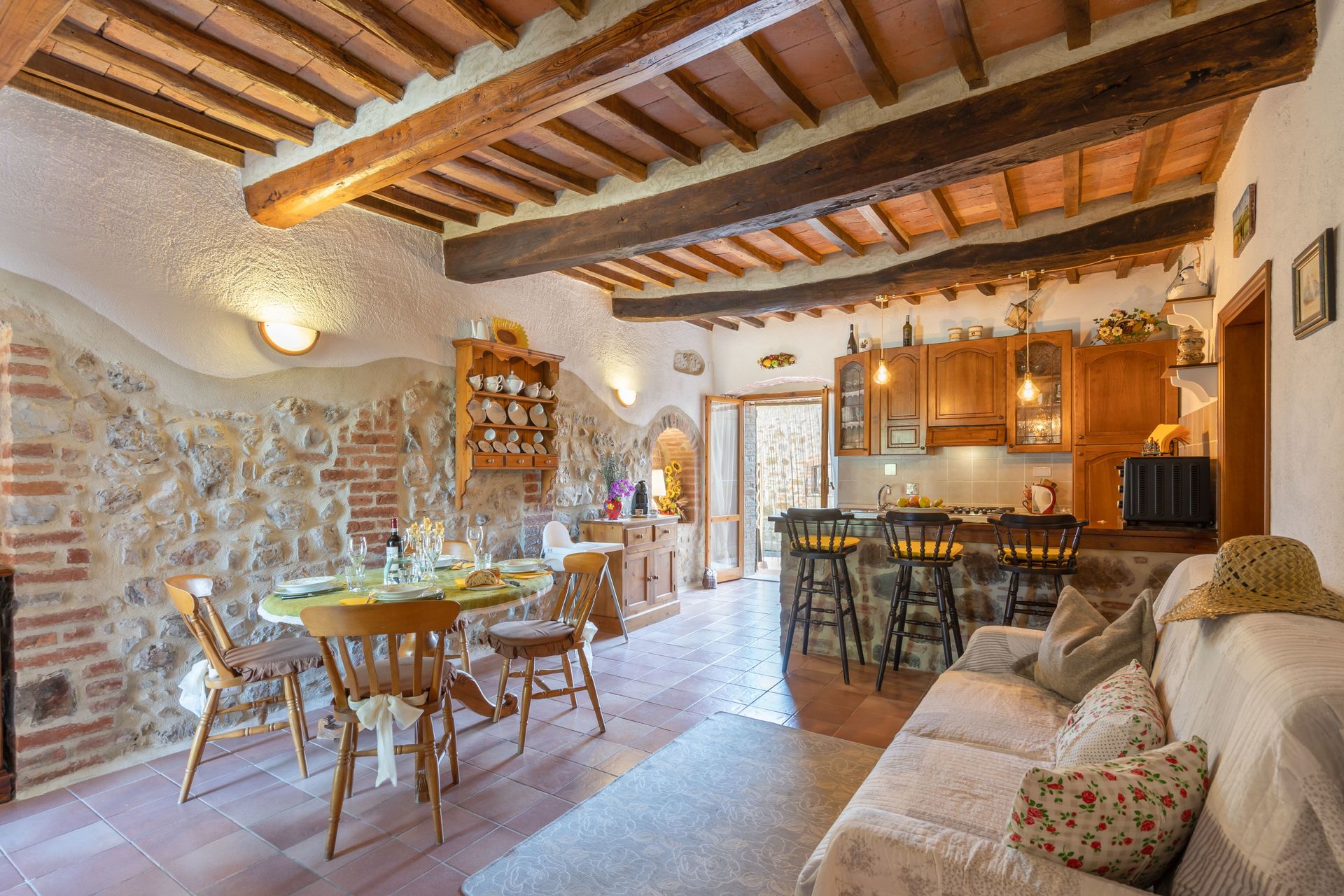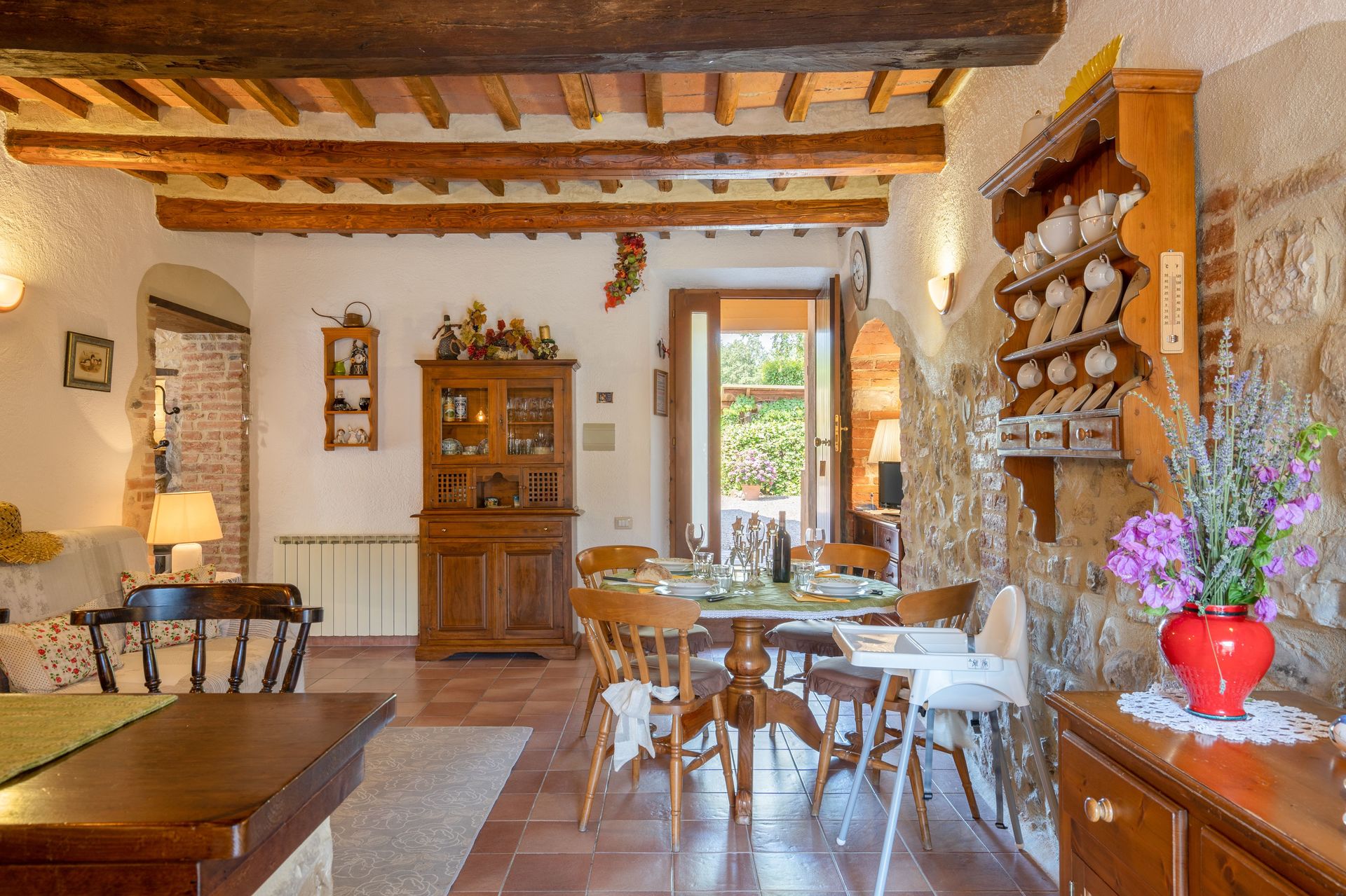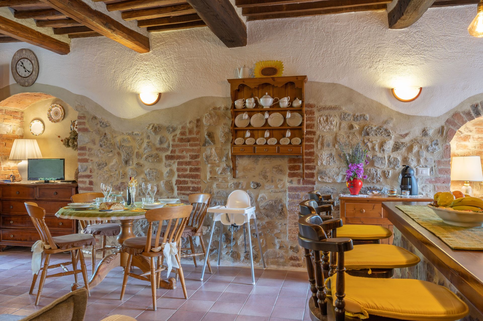 De meeste mensen houden ervan om dorpen en steden in de buurt te bezichtigen terwijl ze op vakantie zijn, dus ter referentie een lijst van populaire plaatsen met de afstanden (hemelsbreed) vanaf de woning: San Gimignano 32 km, Siena 34 km, Greve In Chianti 60 km, Montalcino 67 km en Florence 68 km. De snelweg ligt op 48 km vanaf de accommodatie en er is een treinstation op 15 km.