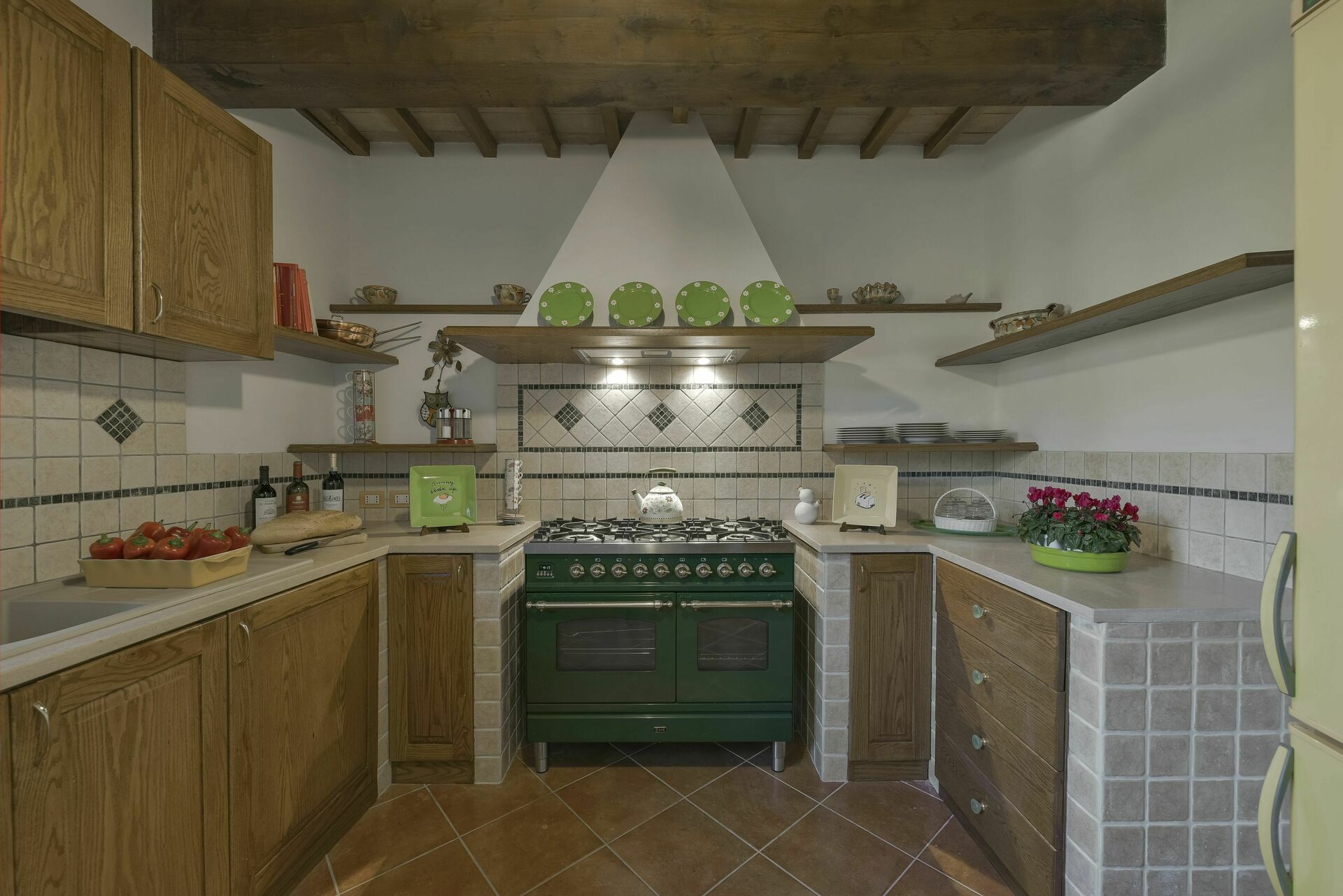Keuken: goed uitgeruste keuken, vaatwasser, ijskast, diepvriezer, magnetron, kookplaat, oven, italiaans koffiezetapparaat.