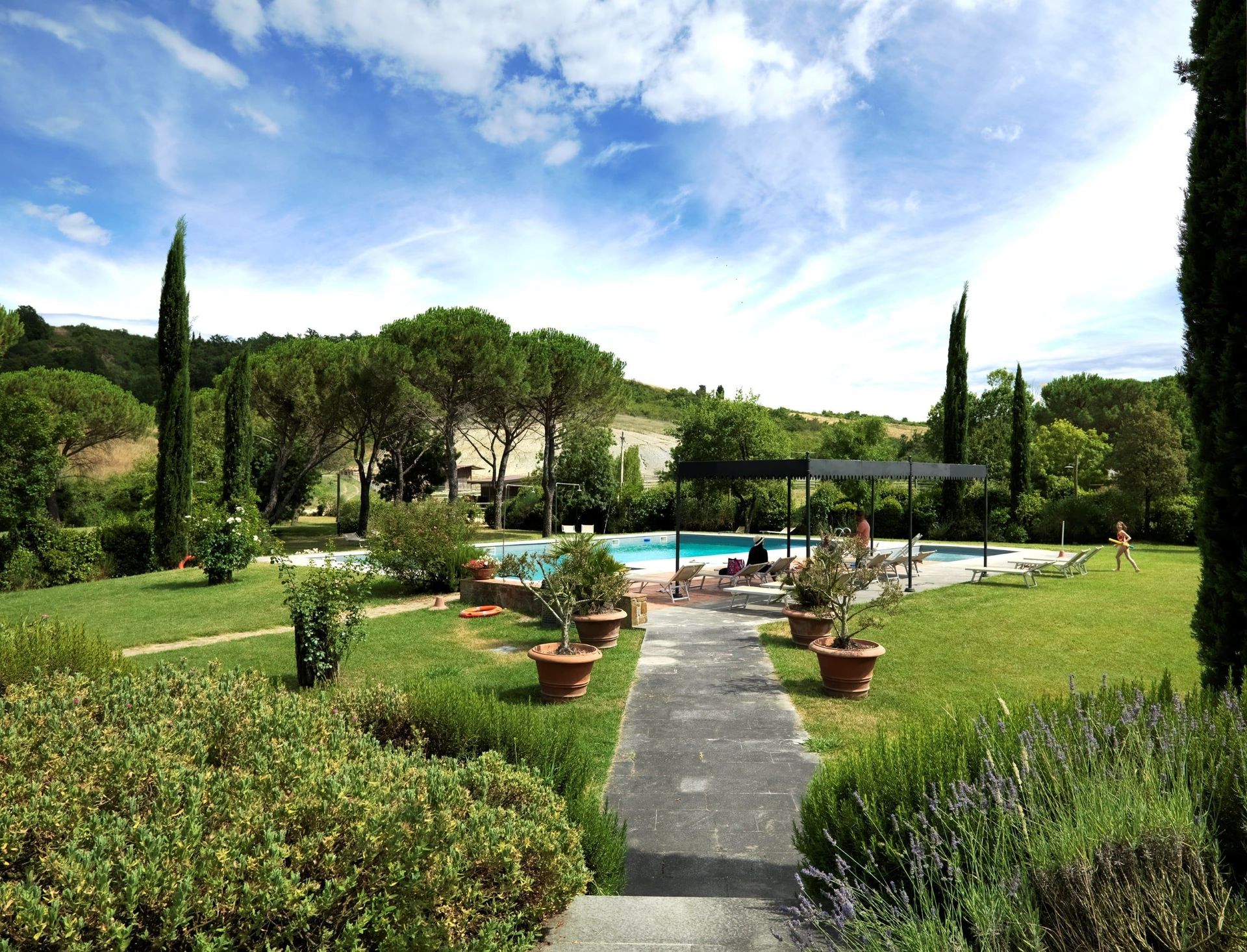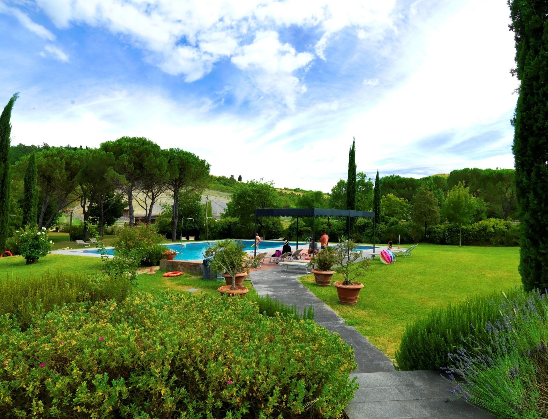 Tuin: zwembad (breedte: 9m, lengte: 18m, diepte: 1.6m), douche, WIFI internet, vijf eettafels (personen: 4), tuinmeubilair, acht ligstoelen, omheind grondstuk.