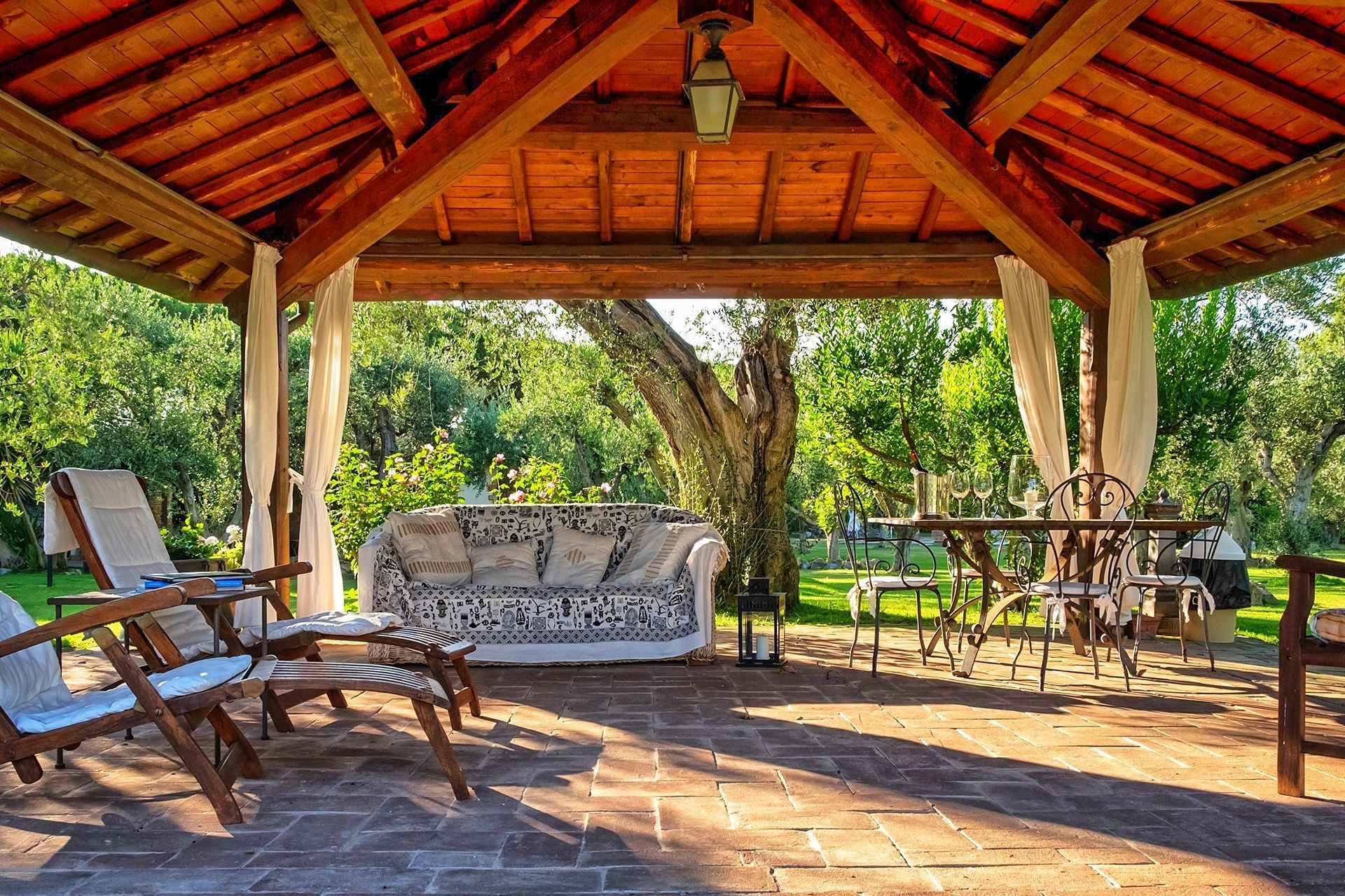 Buiten is de grote tuin rijk aan planten en olijfbomen, met een prachtig zwembad met ligstoelen en parasols voor de gasten. De tuin is de perfecte plek om te ontspannen op warme zomerdagen, als alternatief voor de prachtige stranden van de nabijgelegen Toscaanse kust.