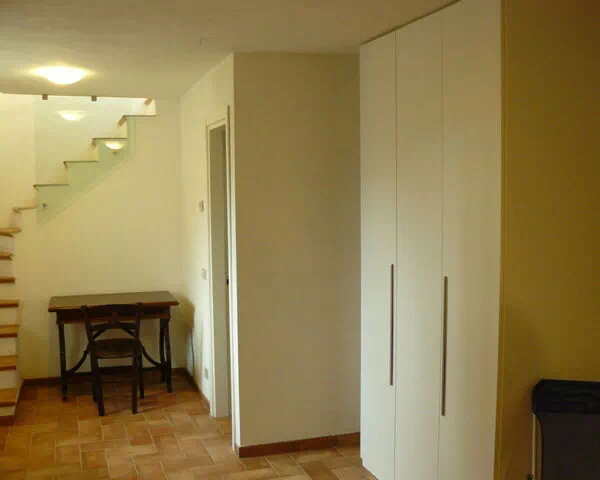 Op de eerste verdieping zijn de eetkamer met eettafel die uitgeeft op de tuin, een slaapkamer met een tweepersoonsbed van 140 cm en een slaapkamer met twee eenpersoonsbedden van elk 80 cm gelegen. De kleine keuken met oven, 4 gasfornuizen, broodrooster en elektrisch koffiezetapparaat beschikt over een kleine eettafel. Een tweede badkamer met douche en WC is eveneens op deze verdieping aanwezig. Het pand heeft een panoramisch uitzicht op het omringende landschap en de toevluchtsoord. Enkele slaapruimten zijn in open-plan gebieden zoals een galerij of alkoof gelegen in plaats van volledig afgesloten kamers.