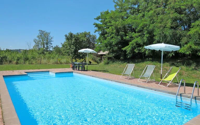 Rustieke, eenvoudig boerderijtje "Sociano", omgeven door bomen, weiden en velden. 4 appartementen in de woning. 11 km van het centrum van Bagnoregio, geïsoleerde ligging op een heuvel, 18 km van het meer, te midden van groen. Voor medegebruik: wild terrein 10.000 m2 met weide, openluchtzwembad (10 x 5 m, 80 - 180 cm diepte, seizoensgebonden beschikbaarheid: 30.Mei. - 19.Sep.). WC bij het zwembad, buitendouche, barbecue. In het huis: salon met TV, Internet (WiFi), biljart, tafelvoetbal, wasmachine (voor medegebruik). 1.5 km lange toegangsweg (onverharde weg). Parkeerplaats op het terrein. Winkel 11 km, levensmiddelenwinkel 11 km, supermarkt 11 km, bushalte 5 km, meer (zwemmen) "Lago di Bolsena" 18 km. Attracties in de buurt: Civita di Bagnoregio 7 km, Bolsena 16 km, Montefiascone 18 km, Orvieto 25 km, Viterbo 30 km. Lokale verkoop van streekproducten. De eigenaar heeft een hond. Dieren in de buurt.