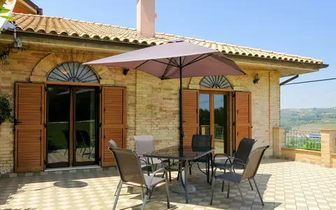 Eengezinswoning "Gabriele", eenzijdig aangebouwd. In het gehucht Picciano, 5 km van het centrum van Collecorvino, 27 km van het centrum van Pescara, 15 km van het centrum van Città Sant'Angelo, op een heuvel, 20 km van zee, te midden van groen. Voor alleengebruik: wild terrein 70 m2, gazon, overdekte parkeerplaats op het terrein. Carport. Supermarkt 500 m, bushalte 300 m, treinstation "Pescara" 27 km, kiezelstrand 20 km. Attracties in de buurt: Castello con la sua torretta, Parco Fluviale, Chiostro e convento.