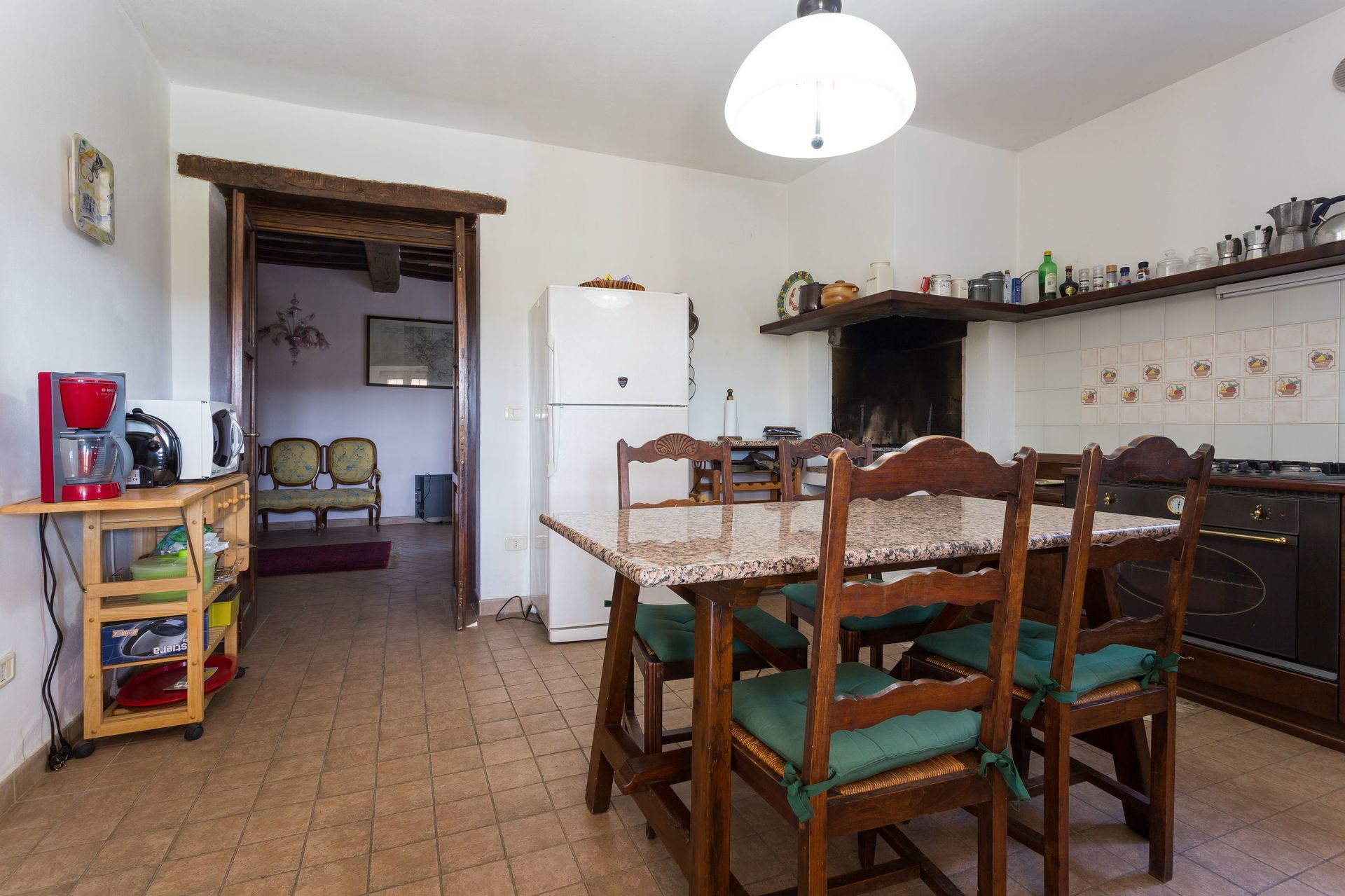Keuken (12 m2): goed uitgeruste keuken, eettafel (personen: 4), vaatwasser, ijskast, diepvriezer, magnetron, kookplaat, oven, broodrooster, italiaans koffiezetapparaat, open haard, uitgang naar de tuin, uitgang naar de veranda.
