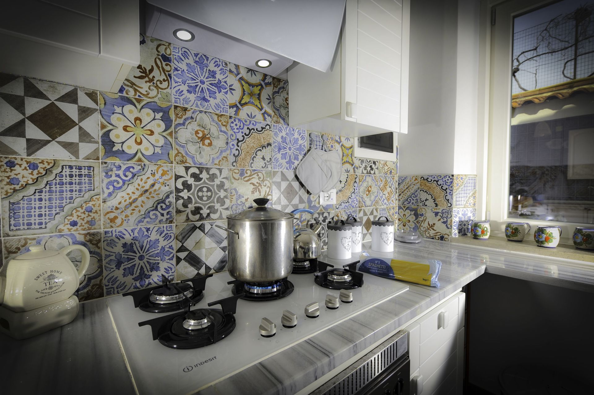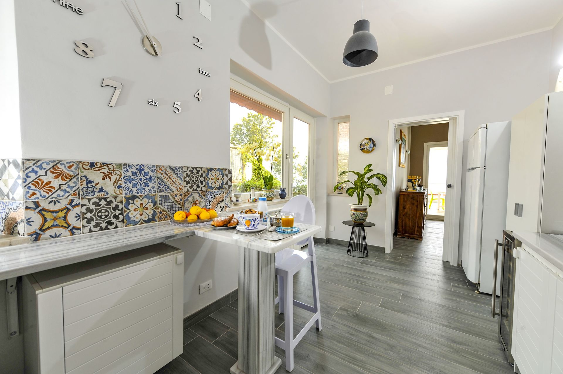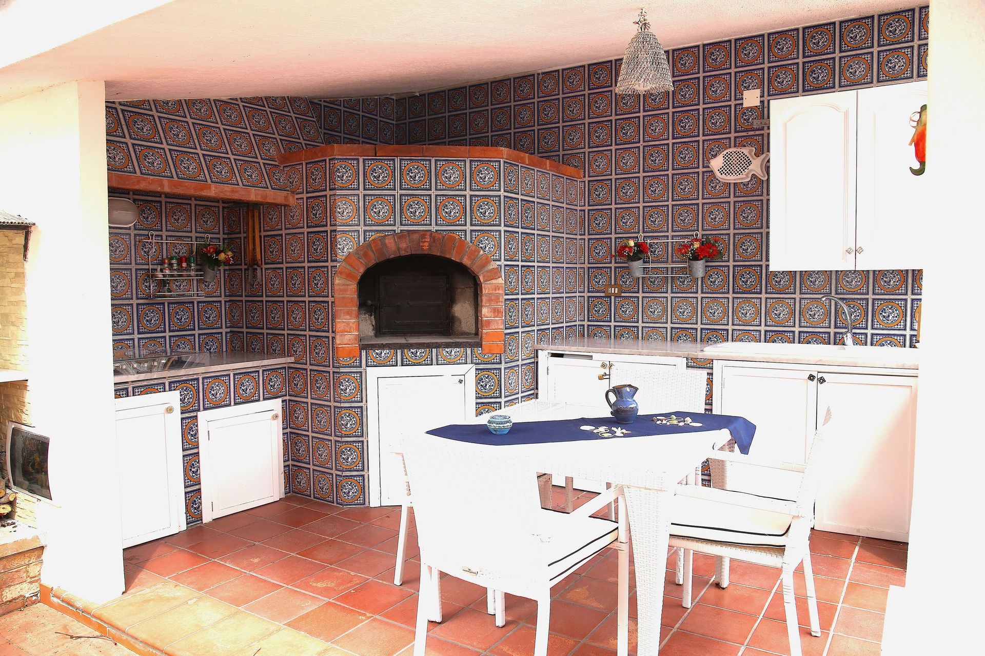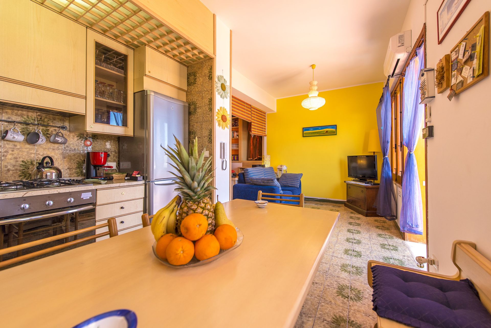Keuken (20 m2): ijskast, diepvriezer, kookplaat, oven, broodrooster, strijkijzer, italiaans koffiezetapparaat, WIFI internet, uitgang naar de patio.