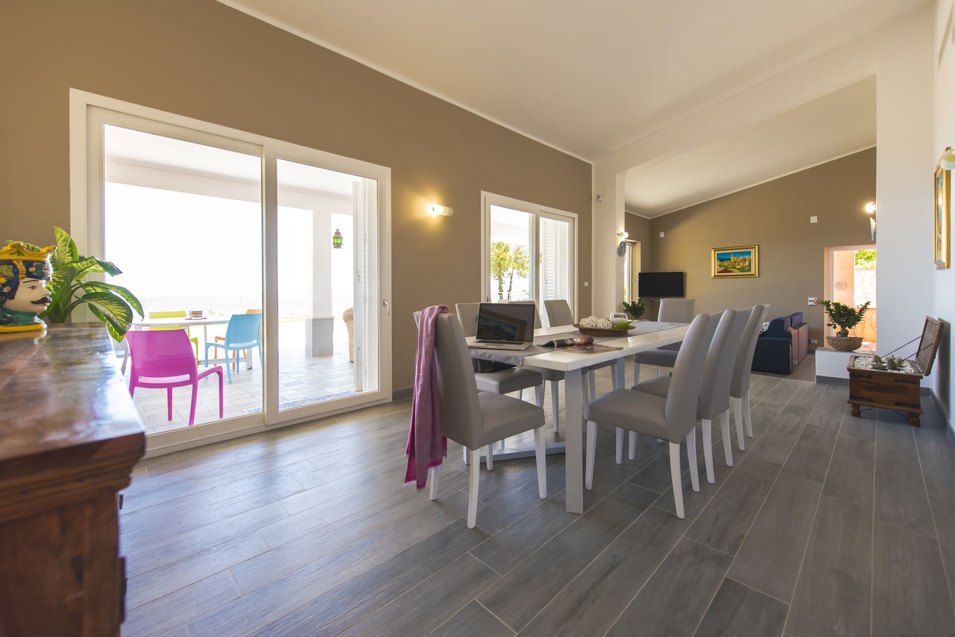 Patio 1: dineren in de buitenlucht, eettafel (personen: 10), barbecue, WIFI internet, terrasmeubilair.