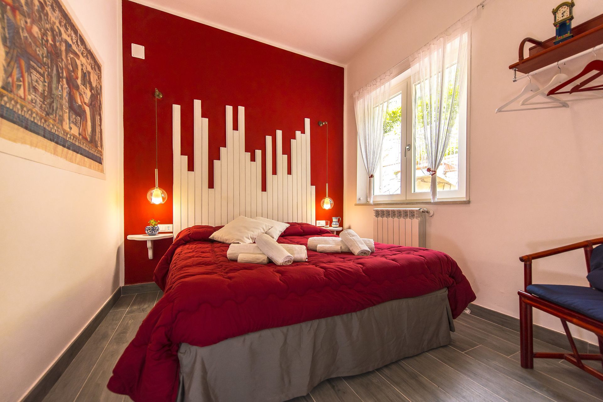 Slaapkamer 1 (16 m2): tweepersoonsbed, WIFI internet, airconditioning, tv, plafondventilator, kluis.