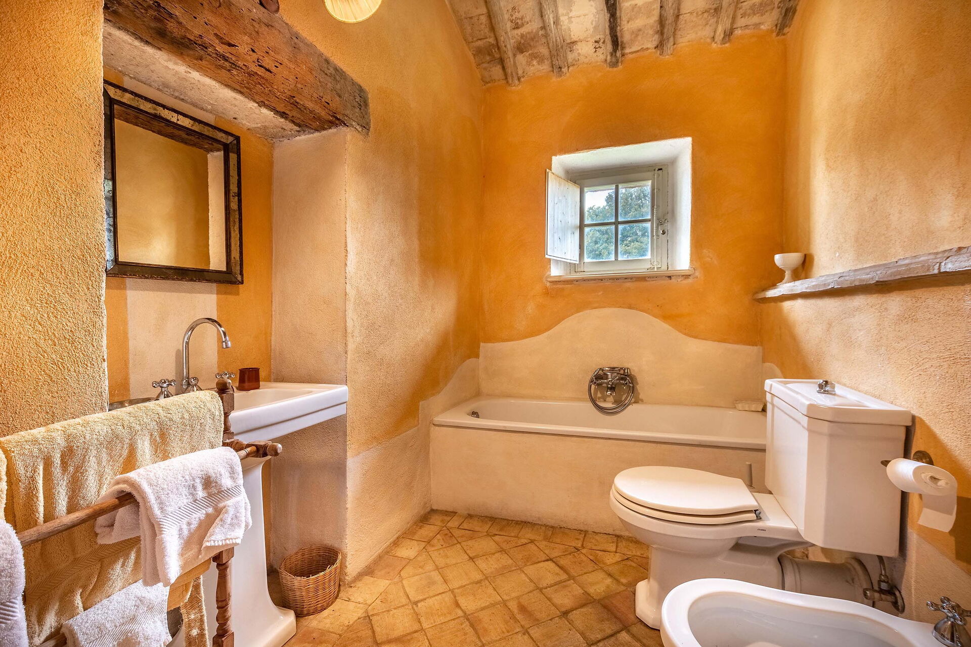 The views from the house are outstanding taking in the Val d’Orcia and Crete Senesi, considered by many as the most beautiful areas of Tuscany. The owner a renowned Italian Architect and Interior Designer restored the villa in total respect to the Tuscan tradition and furnished it with an impressive combination of furniture personally designed and some antiques ones. The property comprises the main Tuscan stone-built farmhouse and a bedroom with en-suite bathroom in the guesthouse. Other bedrooms with en-suite bathroom can be rented at extra cost sleeping up to 18 people. Lavacchio has been restored and furnished to high standard all the first floor bedrooms have air-conditioning and two other portable units are available on request.