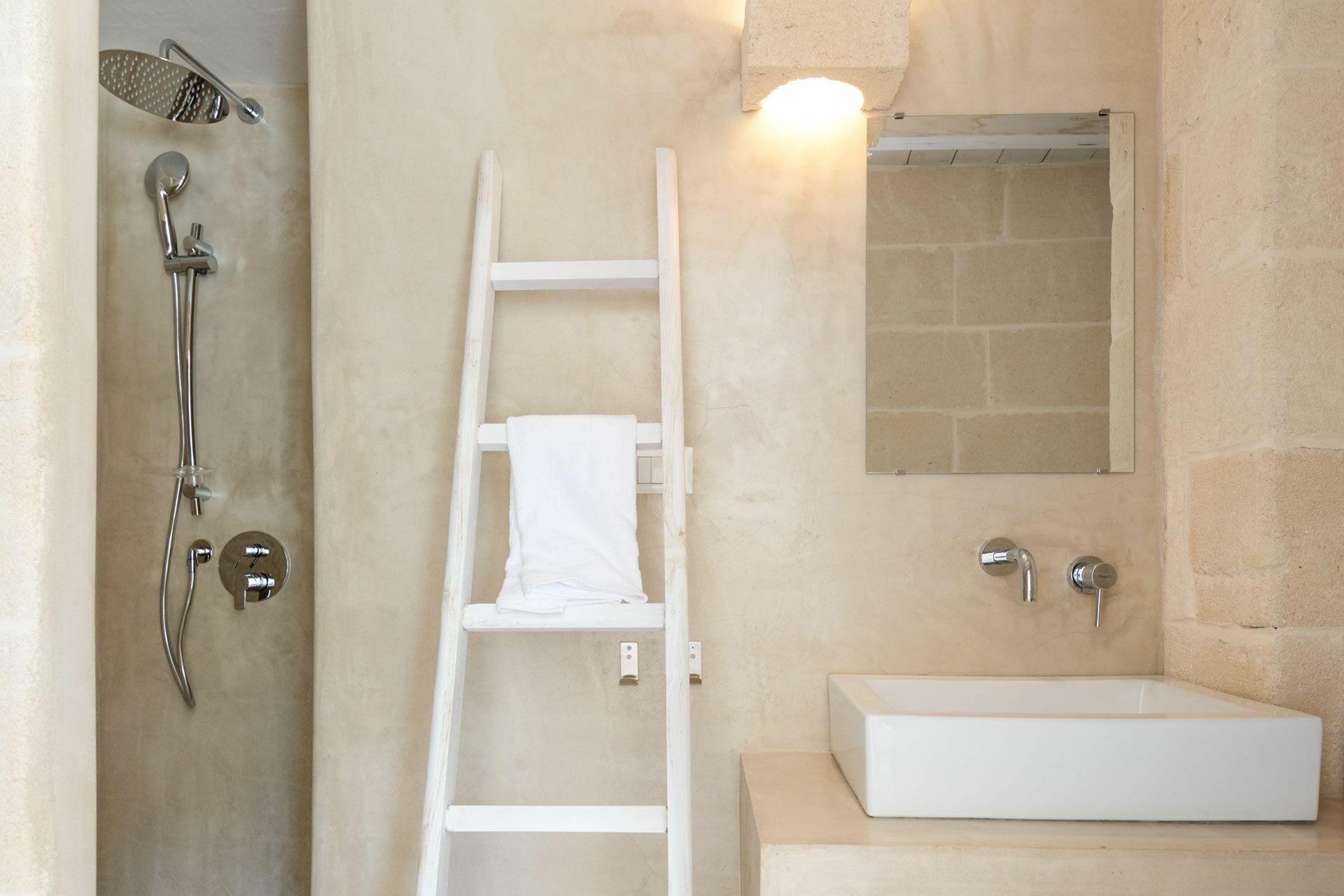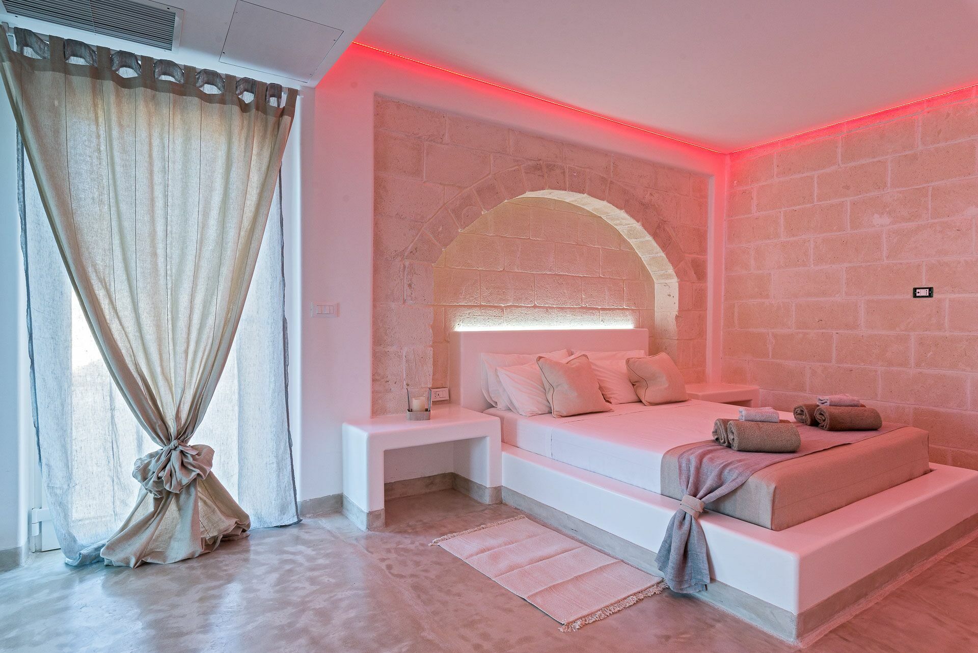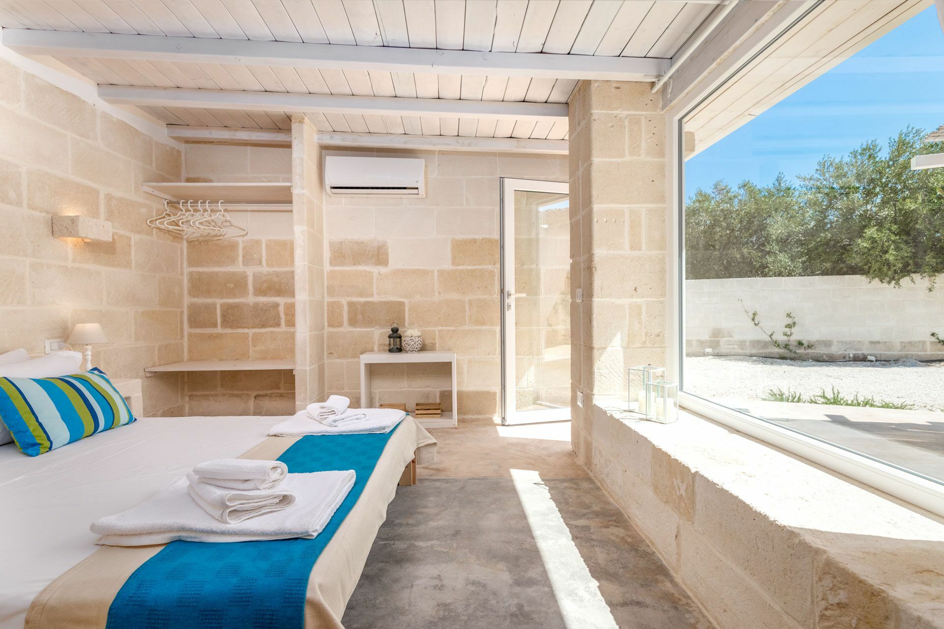 De Ra Suite is zowel vanuit de binnengang als van buitenaf te bereiken. Presenteert het bed met structuur en hoofdeinde in metselwerk. De dubbele matras is voorzien van vier kussens, lakens en handdoeken met ingebouwde en opklapbare kledingkast. Aangesloten op de Ra Suite is er de kleine badkamer compleet met douche, bidet, toilet en enkele wastafel.