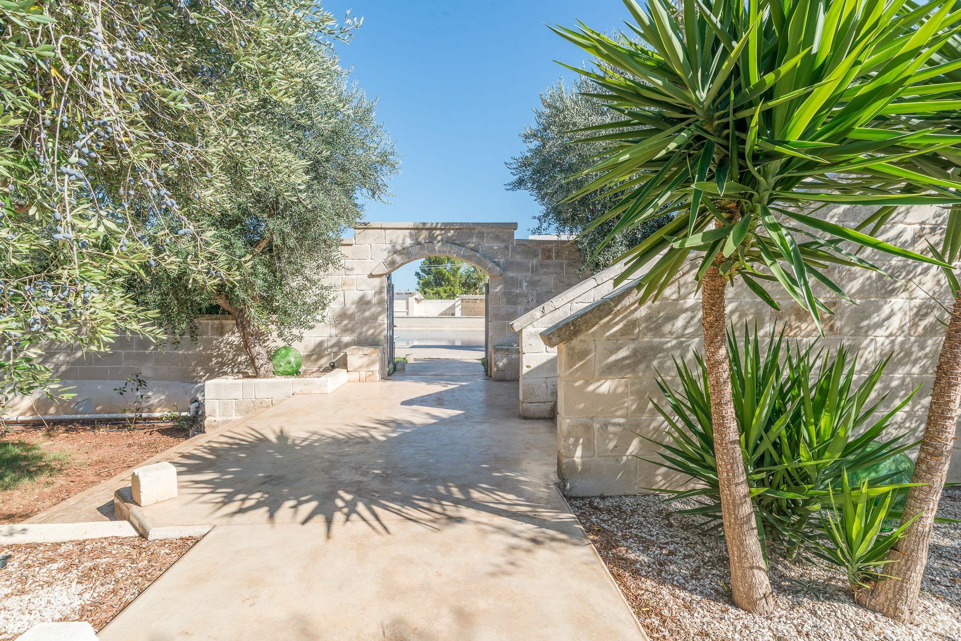 Toegang tot Villa Niraclò is vanaf de elektrische poort, de huurvilla is volledig omheind met videobewaking buiten.