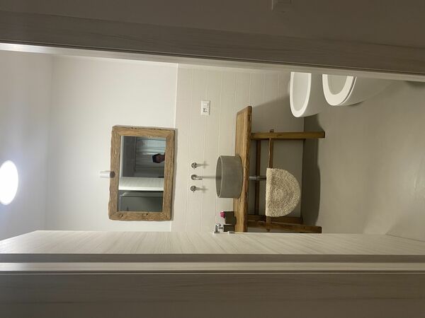 De wasmachine staat in een aparte ruimte, samen met de hoofdelektriciteitskast.
