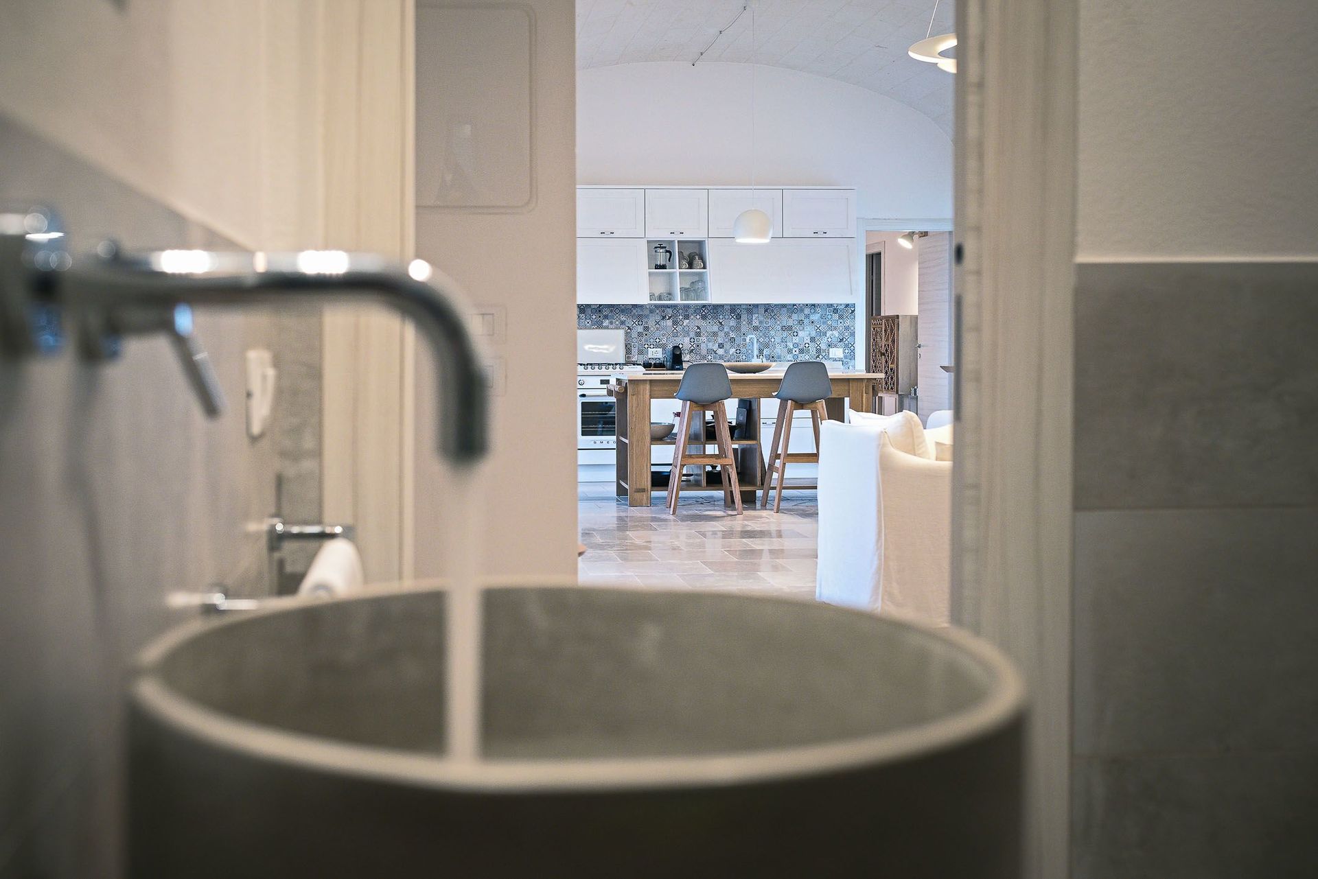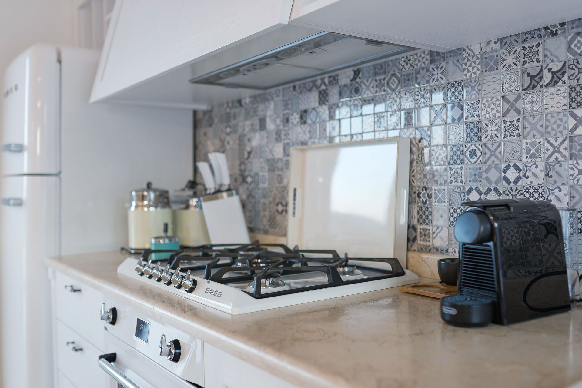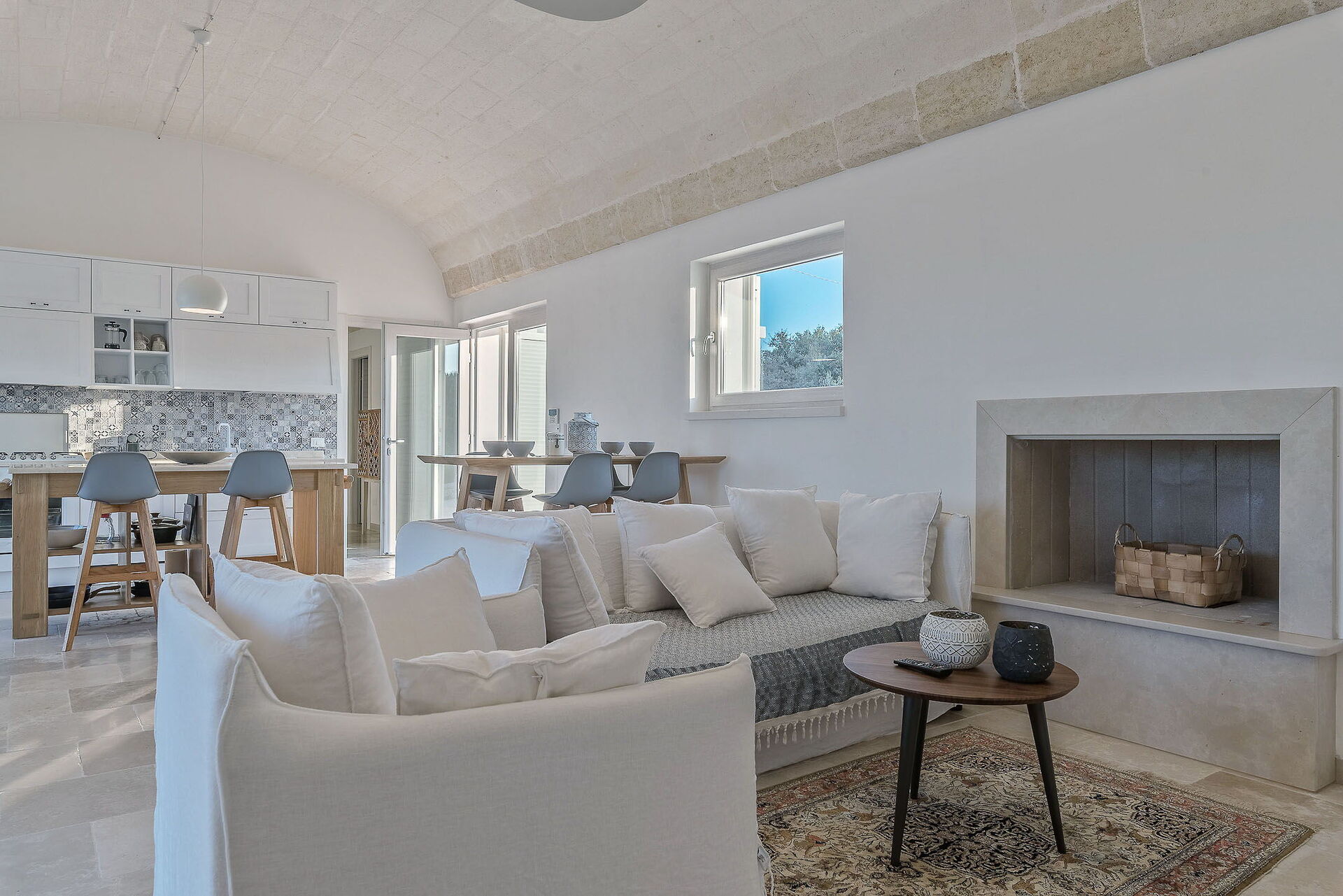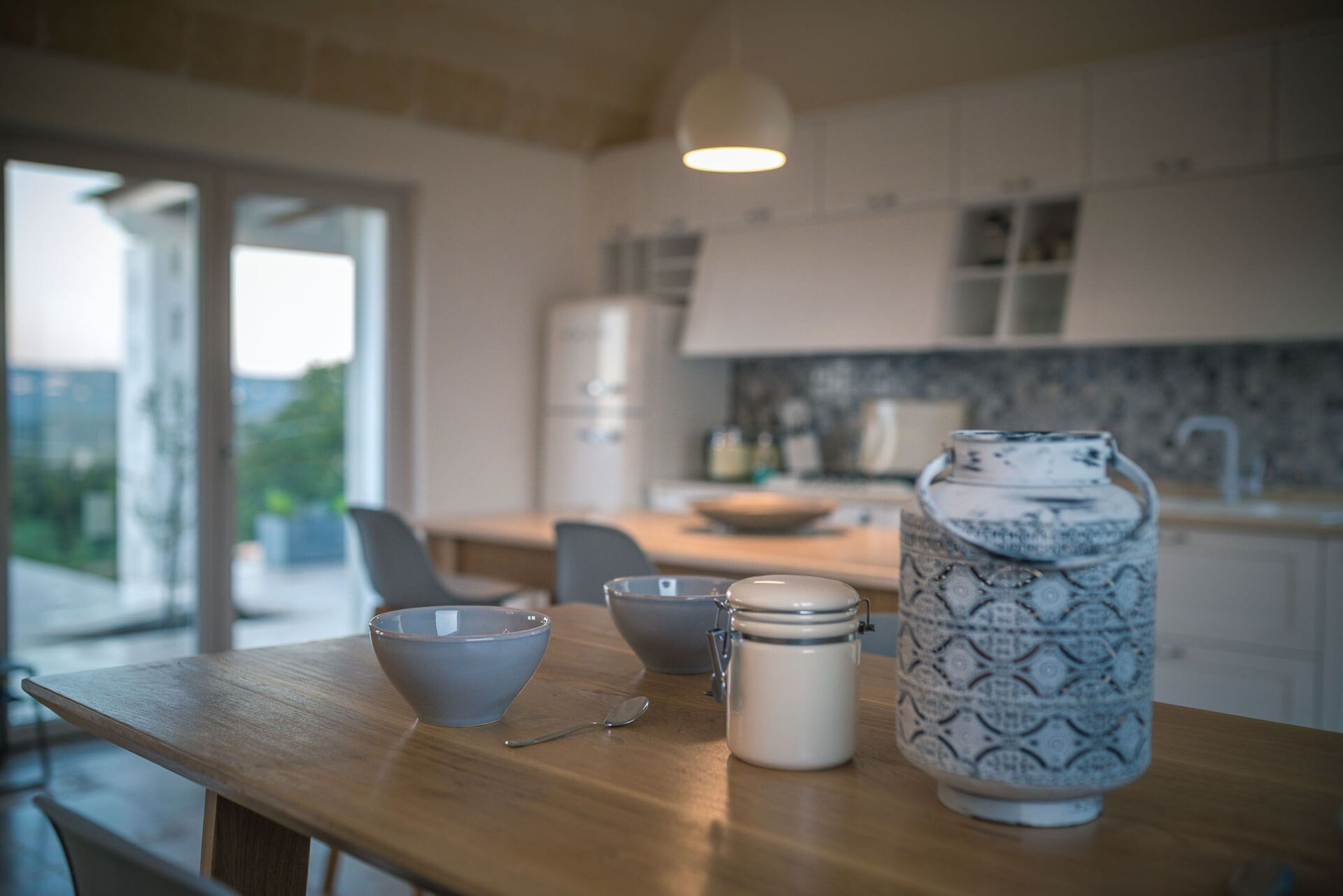 De keuken is smaakvol uitgevoerd met witte inbouwkasten, Smeg-apparatuur met grote koelkast met vriesvak, 5-pits elektrische kookplaat en elektrische oven met afzuigkap, allemaal ideaal voor degenen die graag koken in hun vakantievilla. Lokale producten zijn direct verkrijgbaar bij de plaatselijke winkels of op zaterdag is er een markt in Ostuni.
