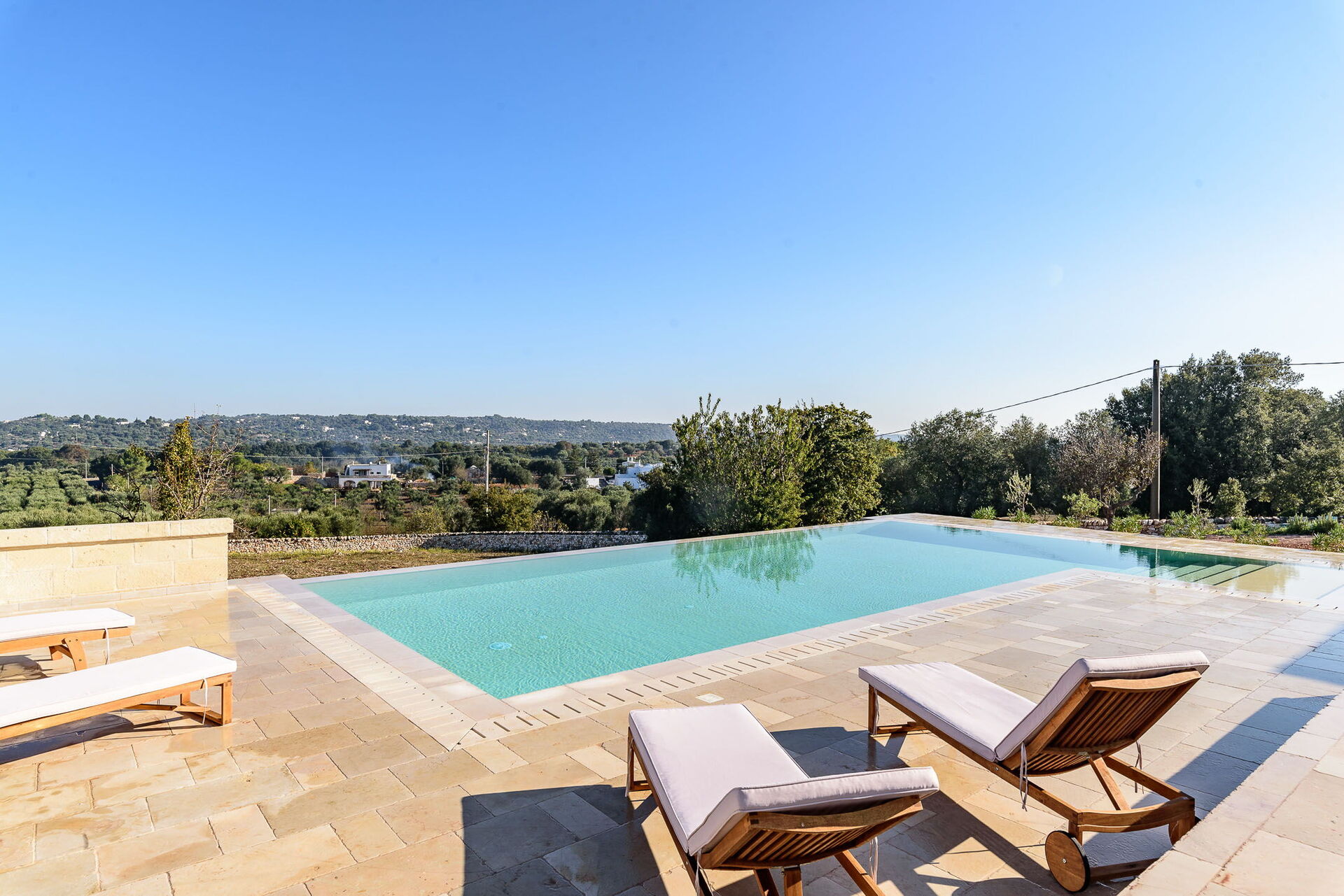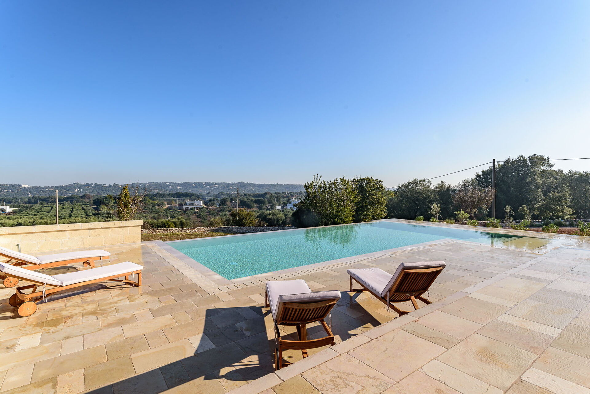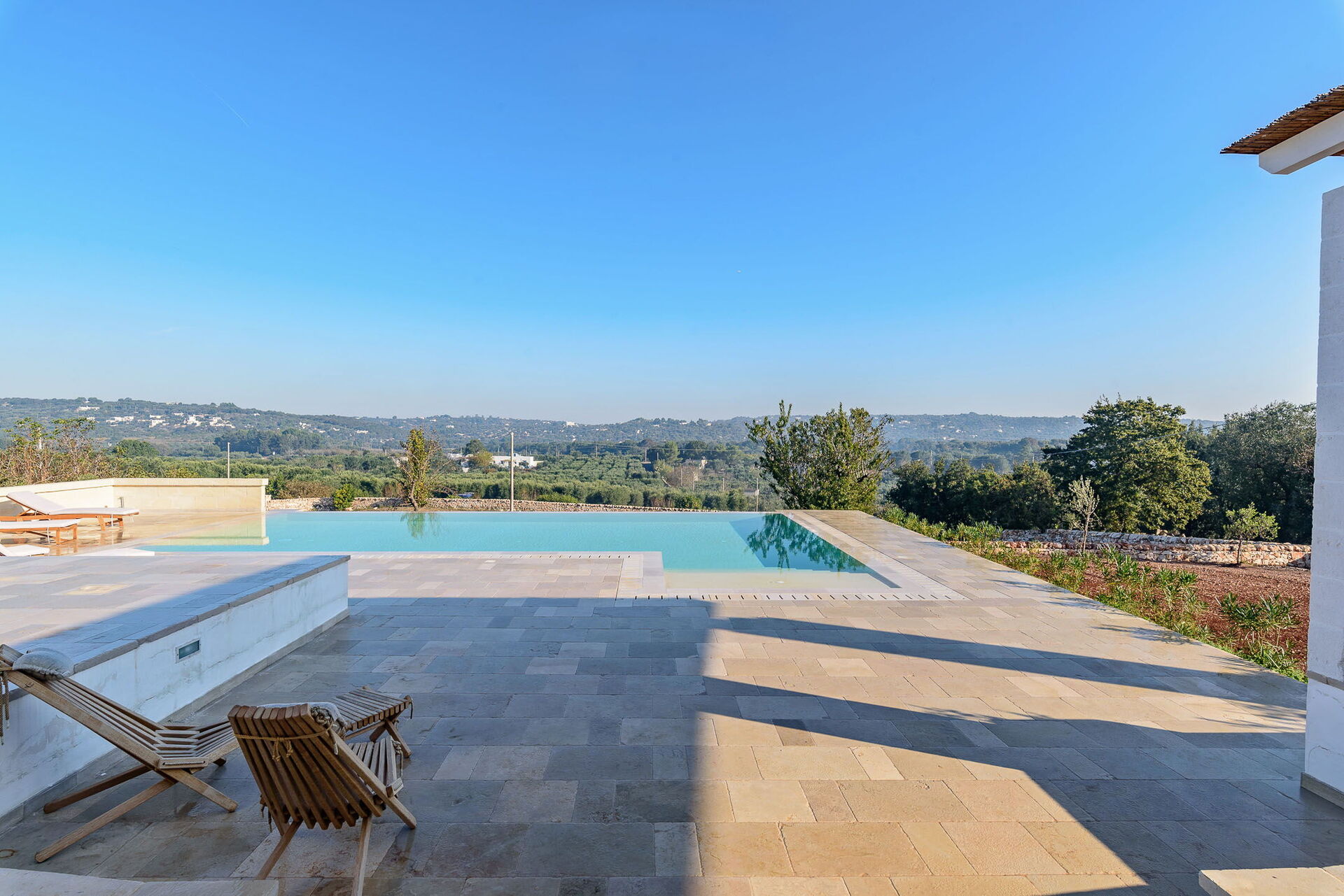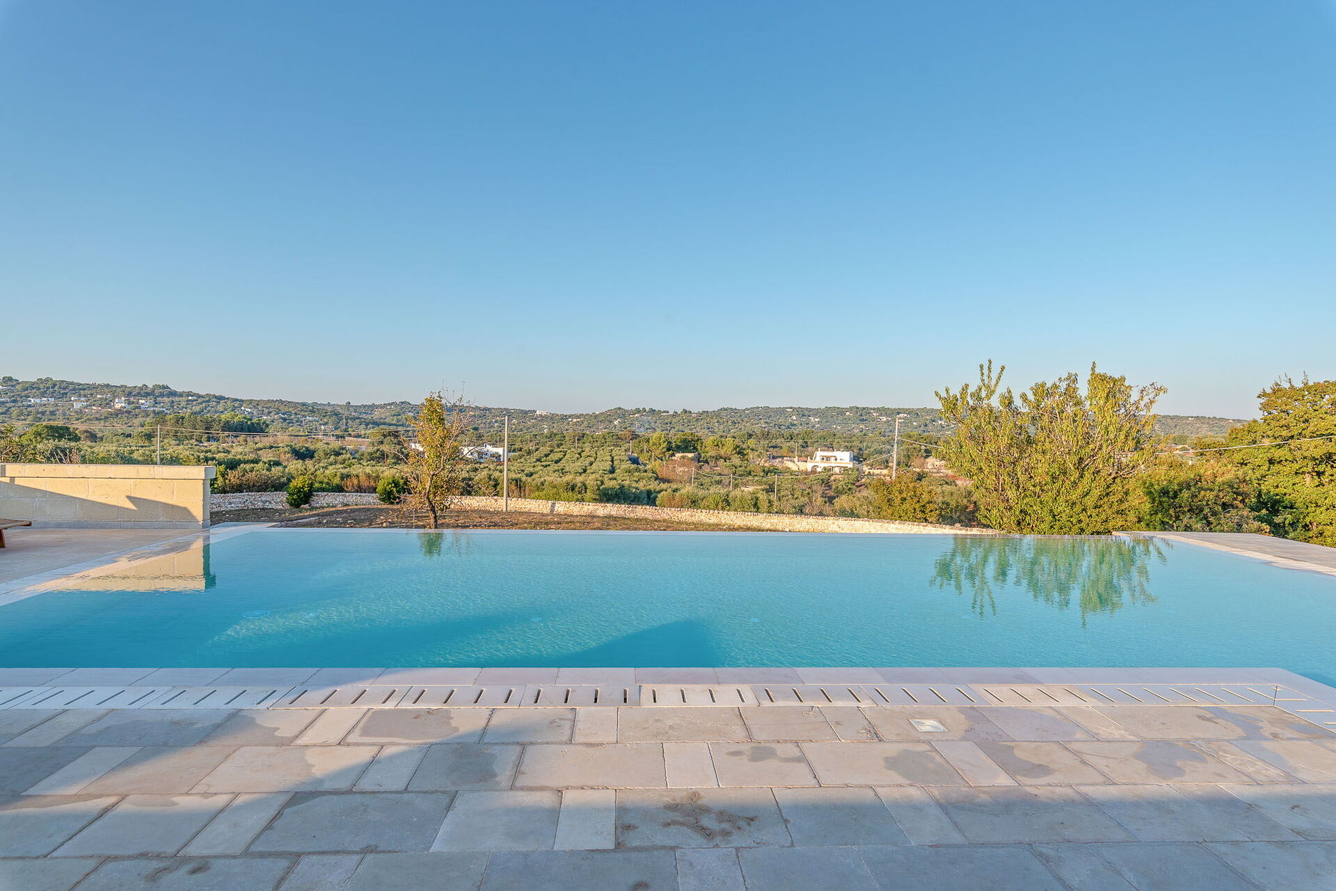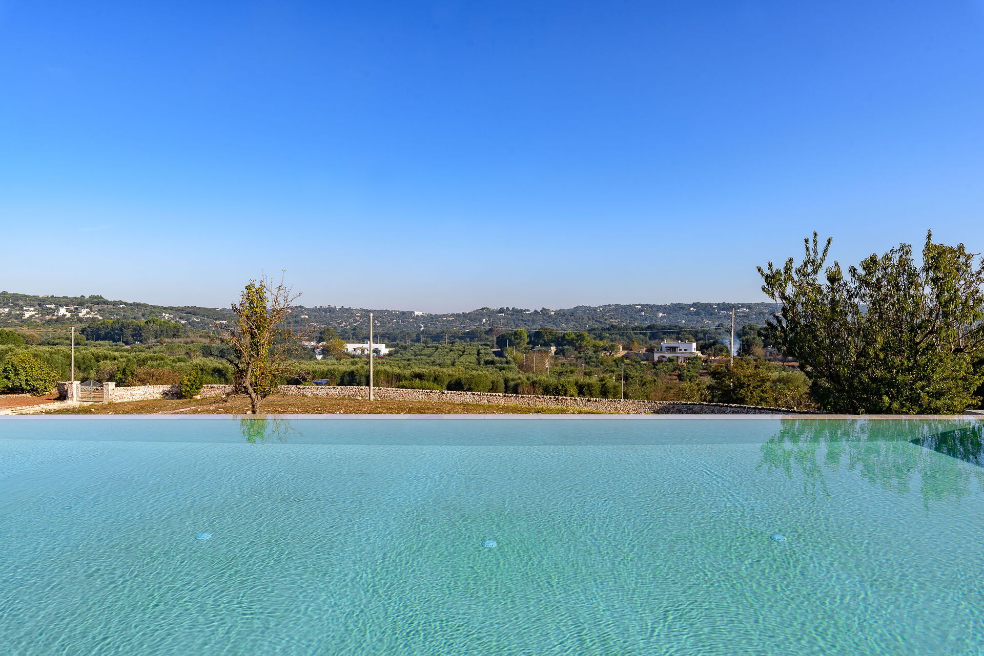 - Het infinity zwembad met panoramisch uitzicht op het platteland van de Valle d'Itria