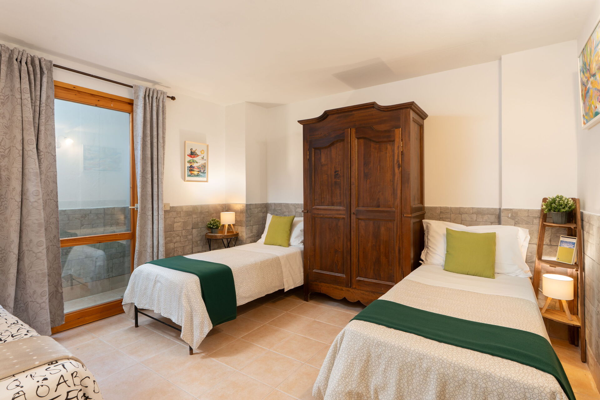 Apartment Croco has two bedrooms: one double room on the ground floor and one twin bedded room on the basement: