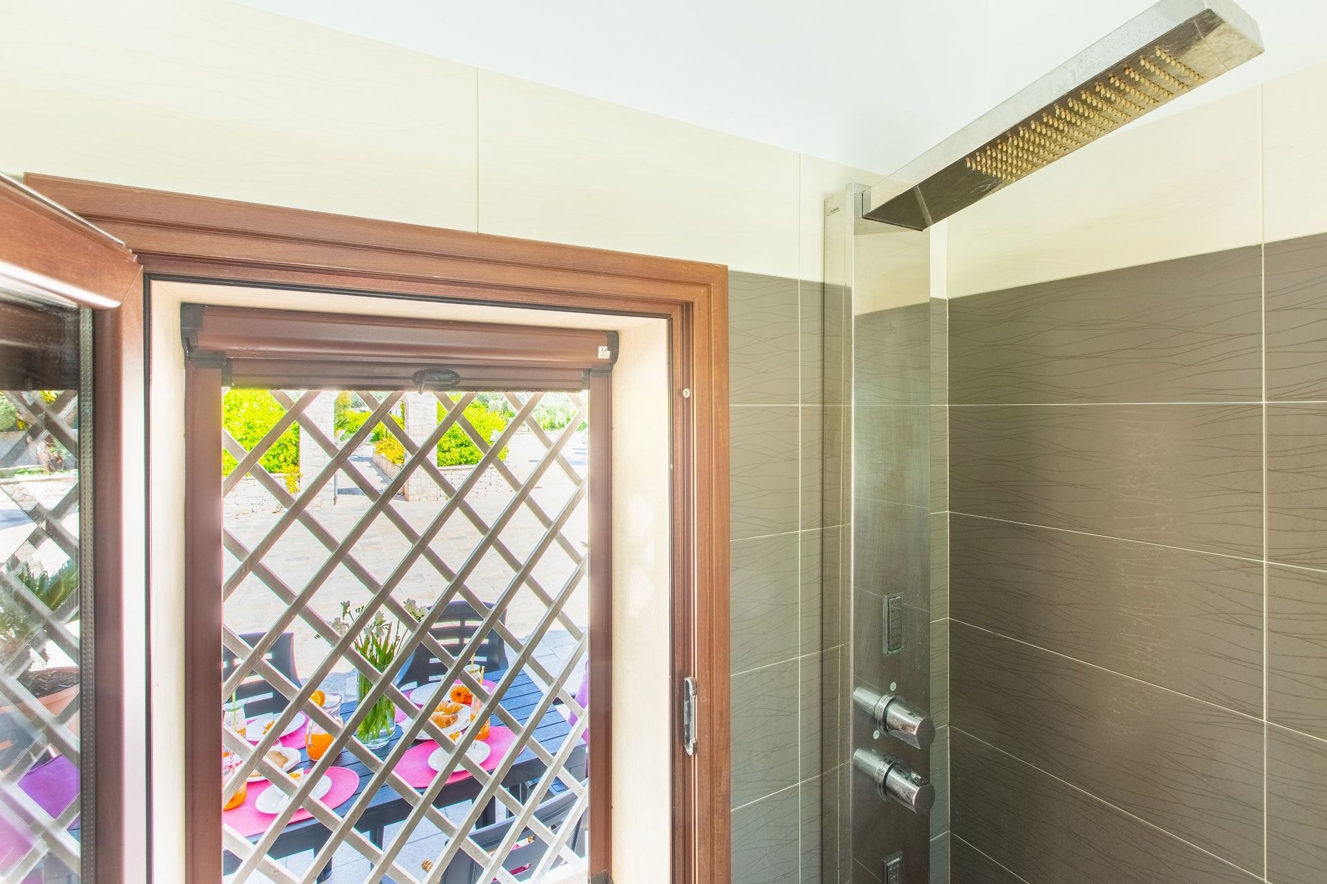 Tuin: zwembad (privé, breedte: 4m, lengte: 8m, diepte: 1.5m, buiten), douche, barbecue, tuinmeubilair, ligstoel, omheind, omheind grondstuk.