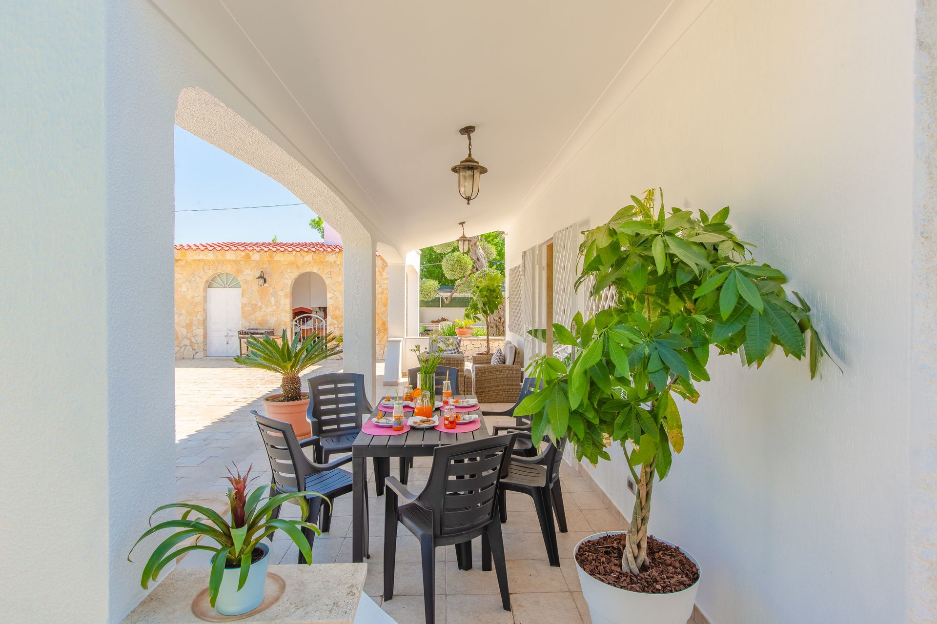 Veranda: dineren in de buitenlucht, eettafel (personen: 5), WIFI internet, terrasmeubilair.