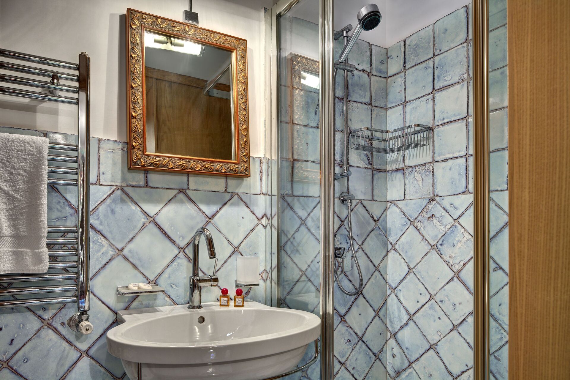 Slaapkamer met badkamer: tweepersoonsbed, WIFI internet, airconditioning, satelliet tv, wastafel, toilet , bidet, douche, haardroger.