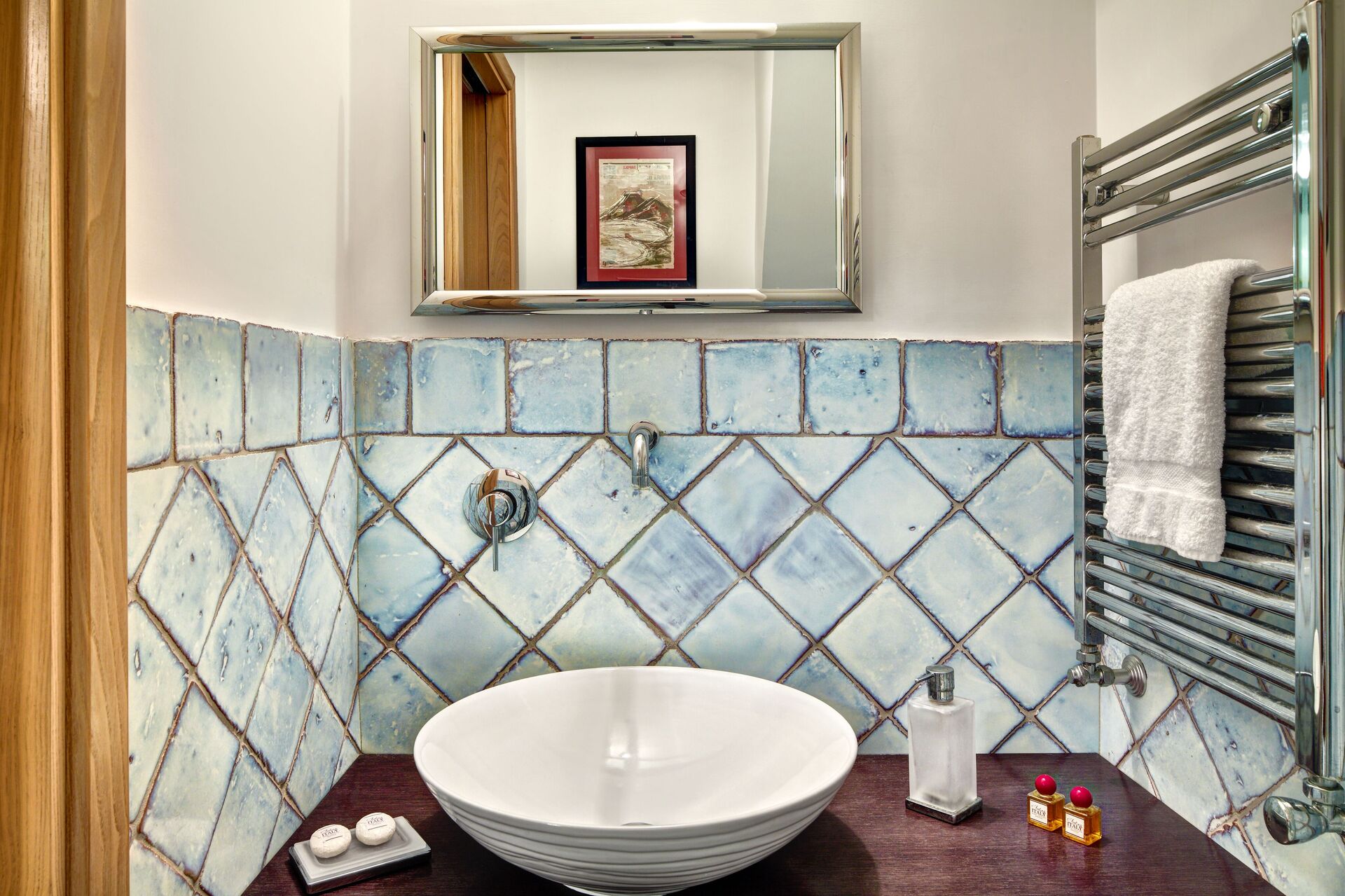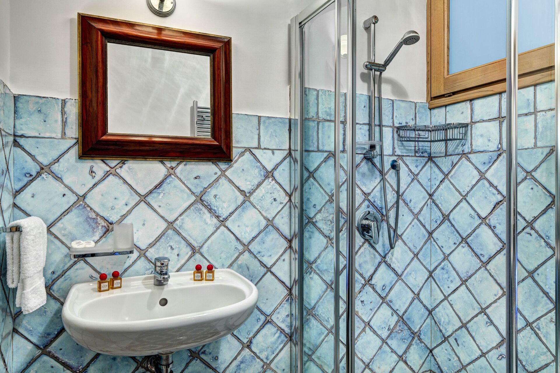 Badkamer: wastafel, toilet , bidet, douche, strijkijzer, haardroger, wasmachine.