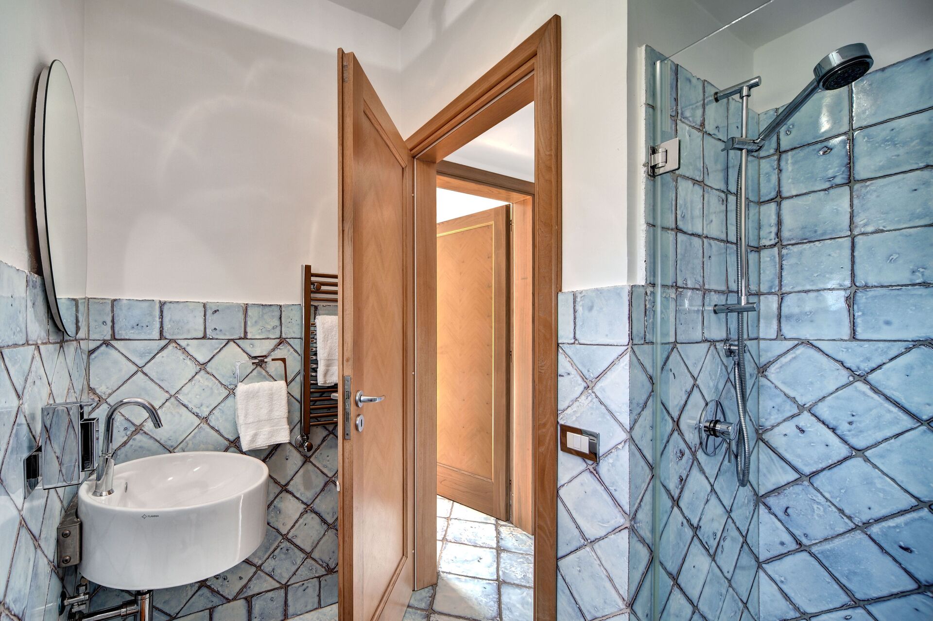 Slaapkamer met badkamer: stapelbed, WIFI internet, airconditioning, satelliet tv, wastafel, toilet , bidet, douche, haardroger, uitgang naar het terras.