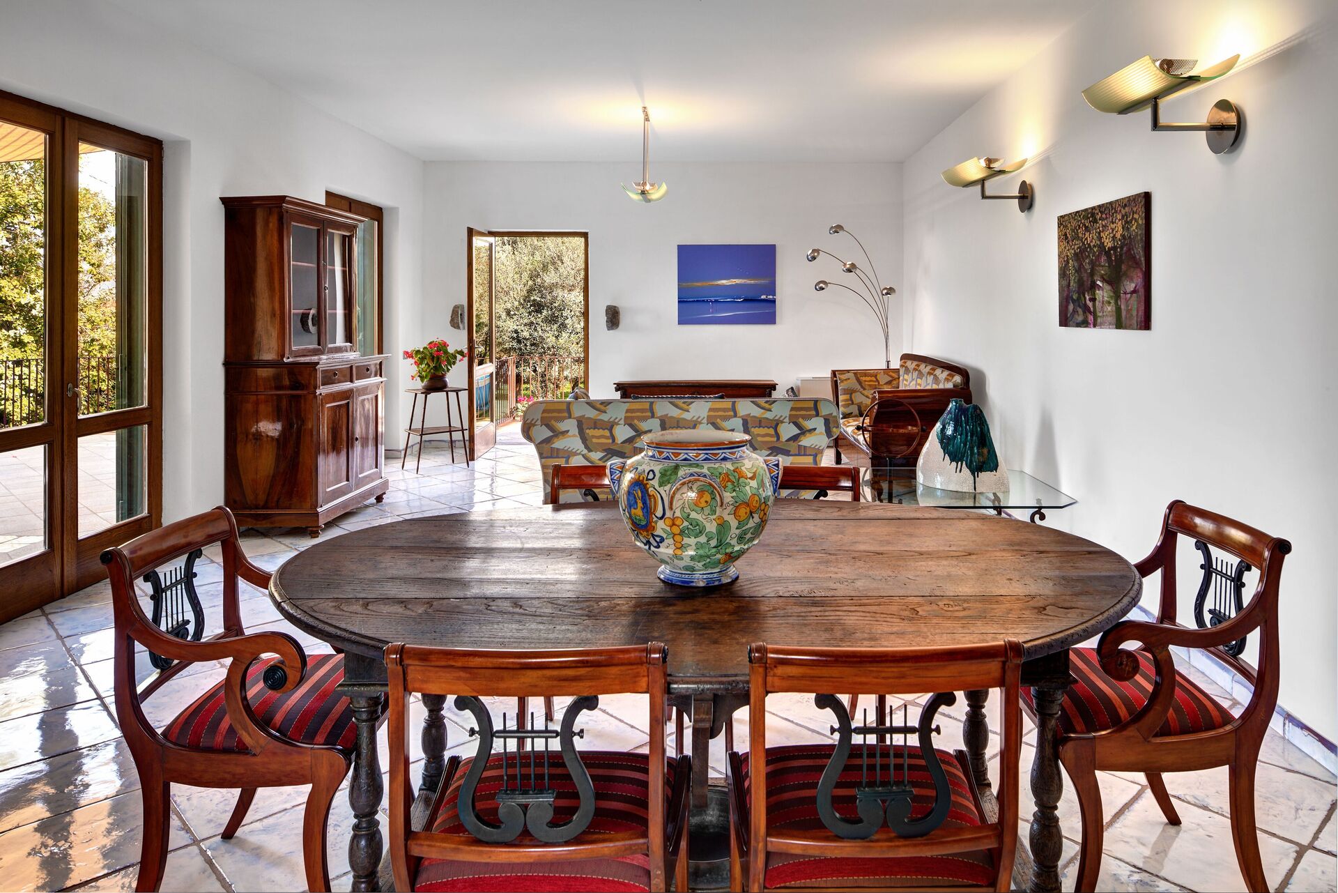 Eetkamer: eettafel, airconditioning, WIFI internet, uitgang naar het terras.