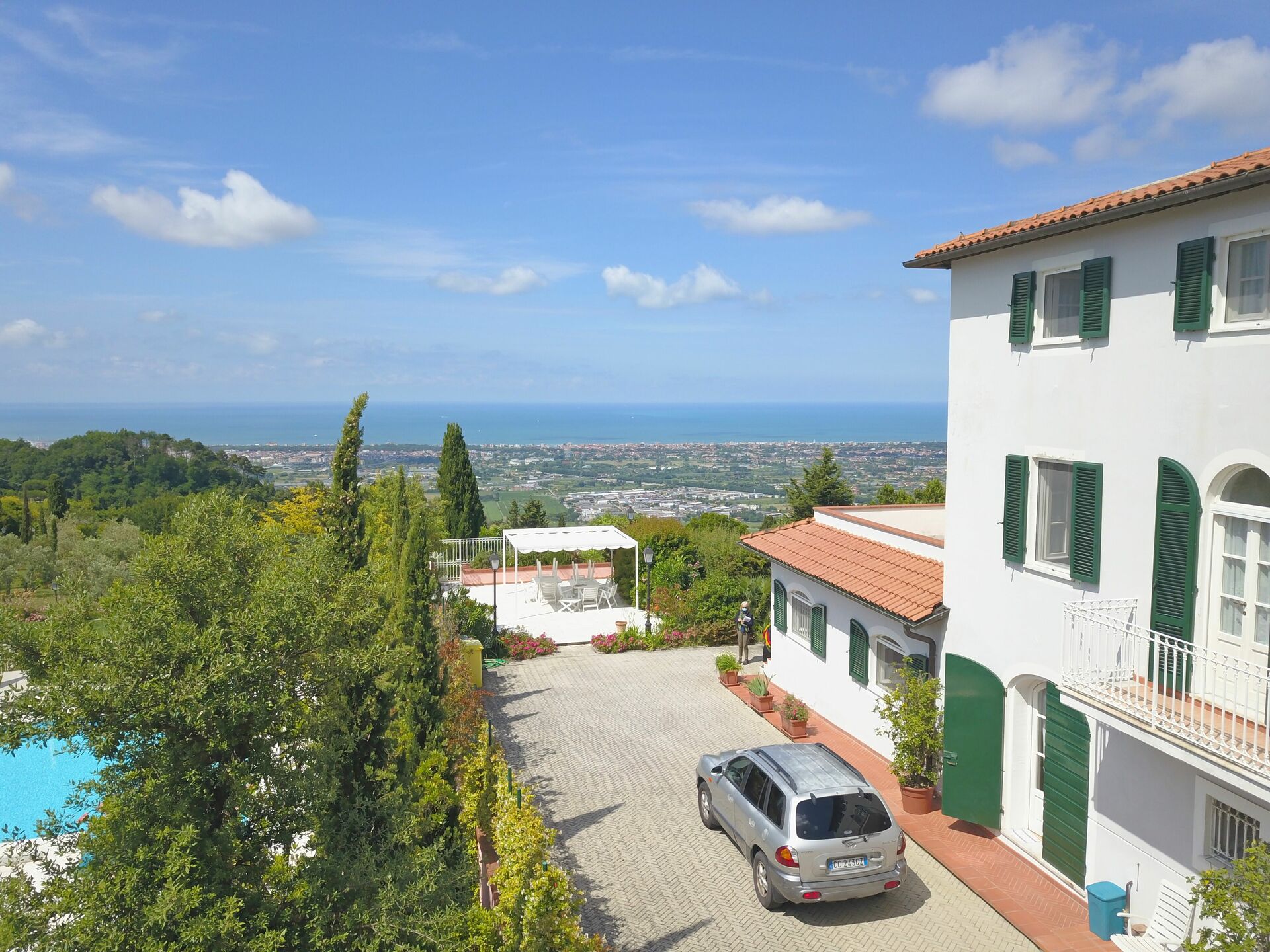 The apartment has a sea view and panoramic view of the hamlets and villages, hallway, shower room with window, open kitchen with dining table, living room with pull-out sofa bed and TV, mosquito nets, WiFi.