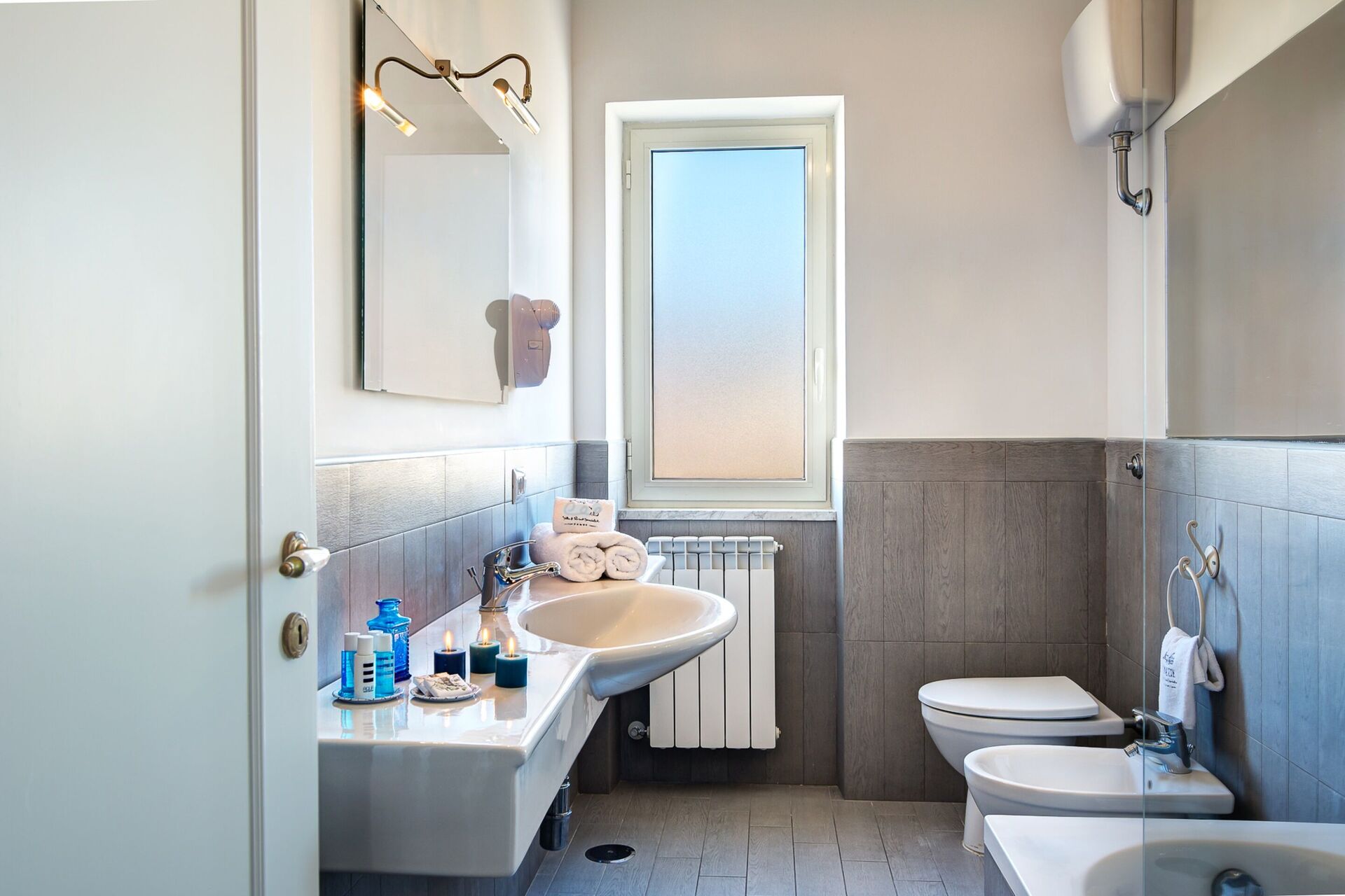 Badkamer 2: wastafel, toilet , bidet, bad, douche, haardroger.