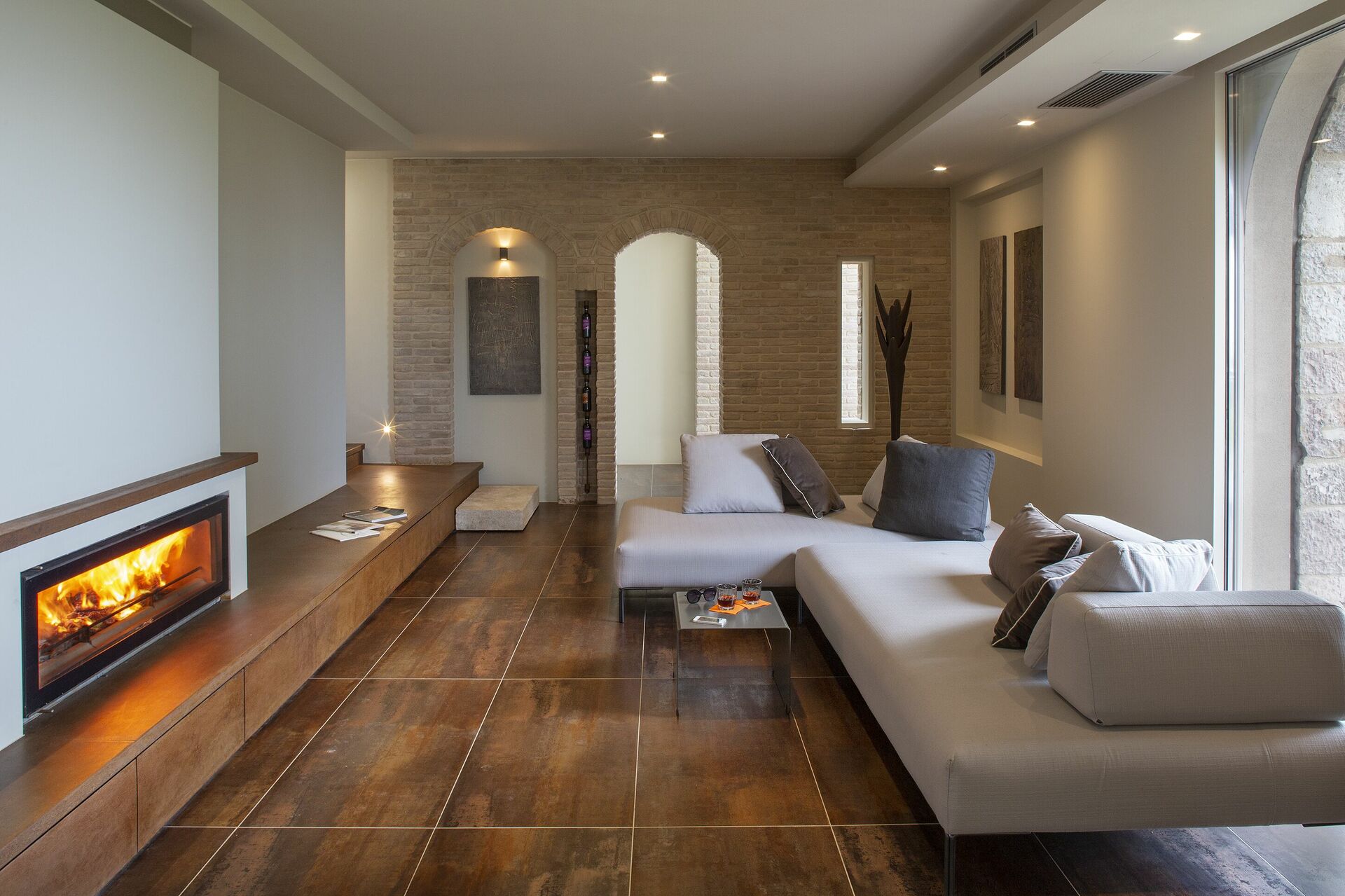 Woonkamer: bank, open haard, eettafel, WIFI internet, airconditioning, satelliet tv, uitgang naar de tuin, uitgang naar de patio.