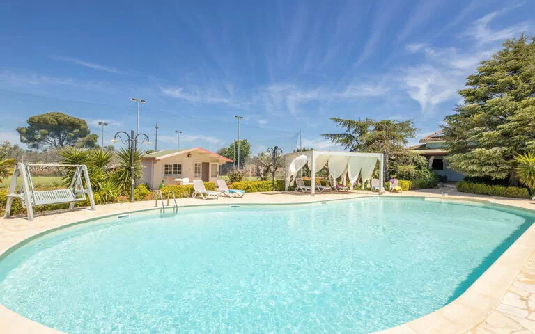 Alessano 14 km van Santa Maria di Leuca: Villa "Dory". 1 km van het centrum, 3 km van zee, 3 km van het strand. Voor alleengebruik: tuin 10.000 m2 met bloemen en bomen, openluchtzwembad (18 x 9 m, 110 - 190 cm diepte, 01.04.-31.10.). Buitendouche, poolhouse met koelkast, douche en WC, onderhoud zwembad door de eigenaar/tuinman. In het huis: alarmsysteem. Wissel van linnengoed (extra wissel te betalen). Wissel van handdoeken (extra wissel te betalen). Schoonmaak op verzoek (extra). Parkeerplaats bij het huis. Winkel 1 km, levensmiddelenwinkel 1 km, supermarkt 1 km, restaurant 1 km, bar 1 km, station "Alessano-Corsano" 100 m, rotsstrand "Marina Serra" 7 km. Attracties in de buurt: Marina di Pescoluse 13 km, Castro 18 km, Otranto 35 km, Gallipoli 45 km, Lecce 55 km, Aeroporto del Salento (BDS) 105 km. Let op: auto noodzakelijk. Spoorweg in de buurt.