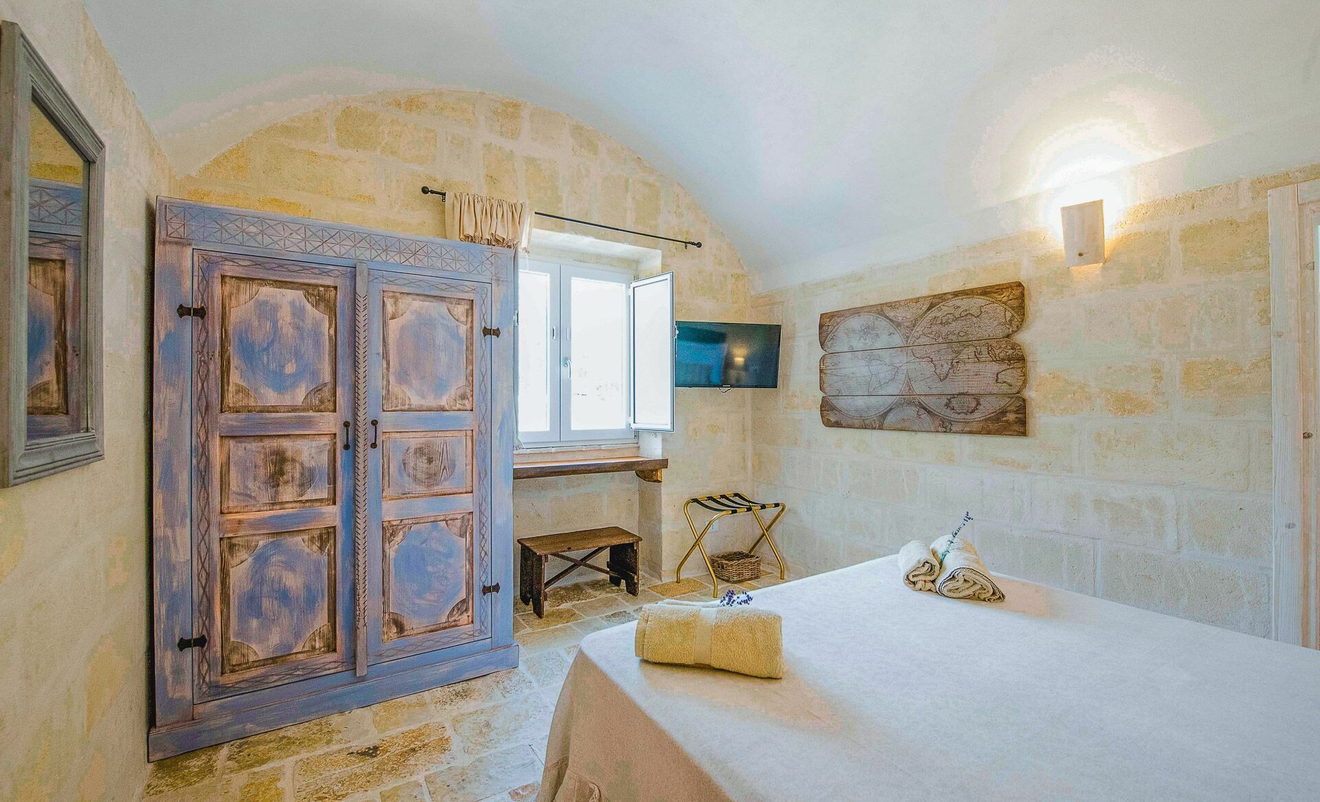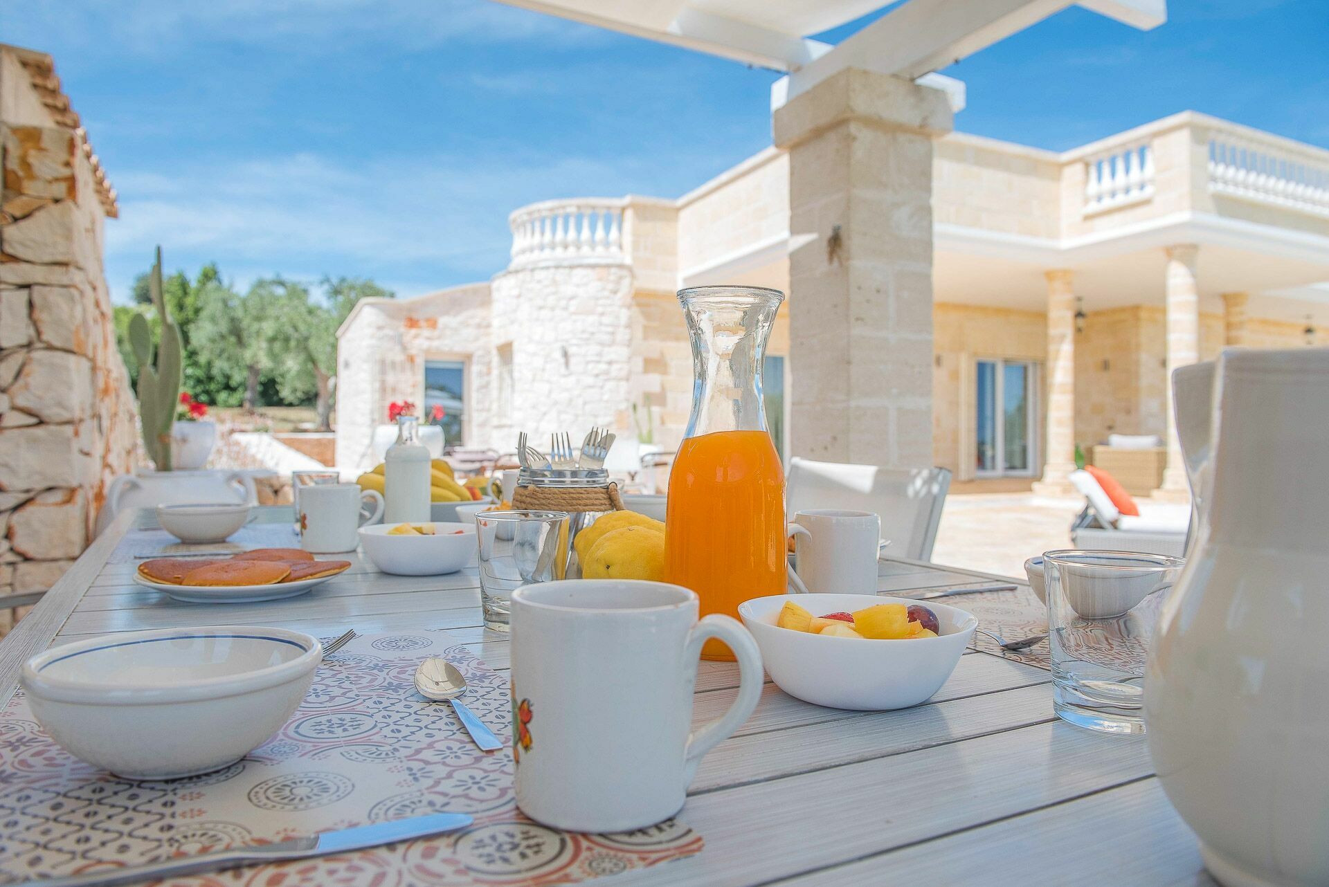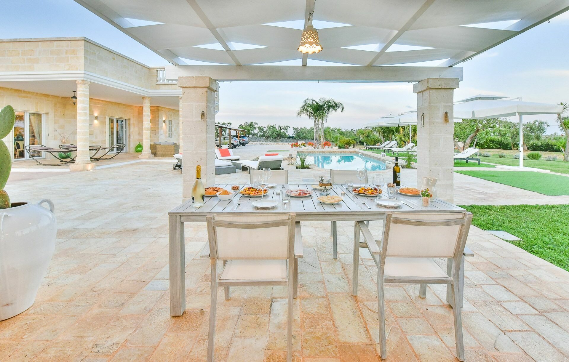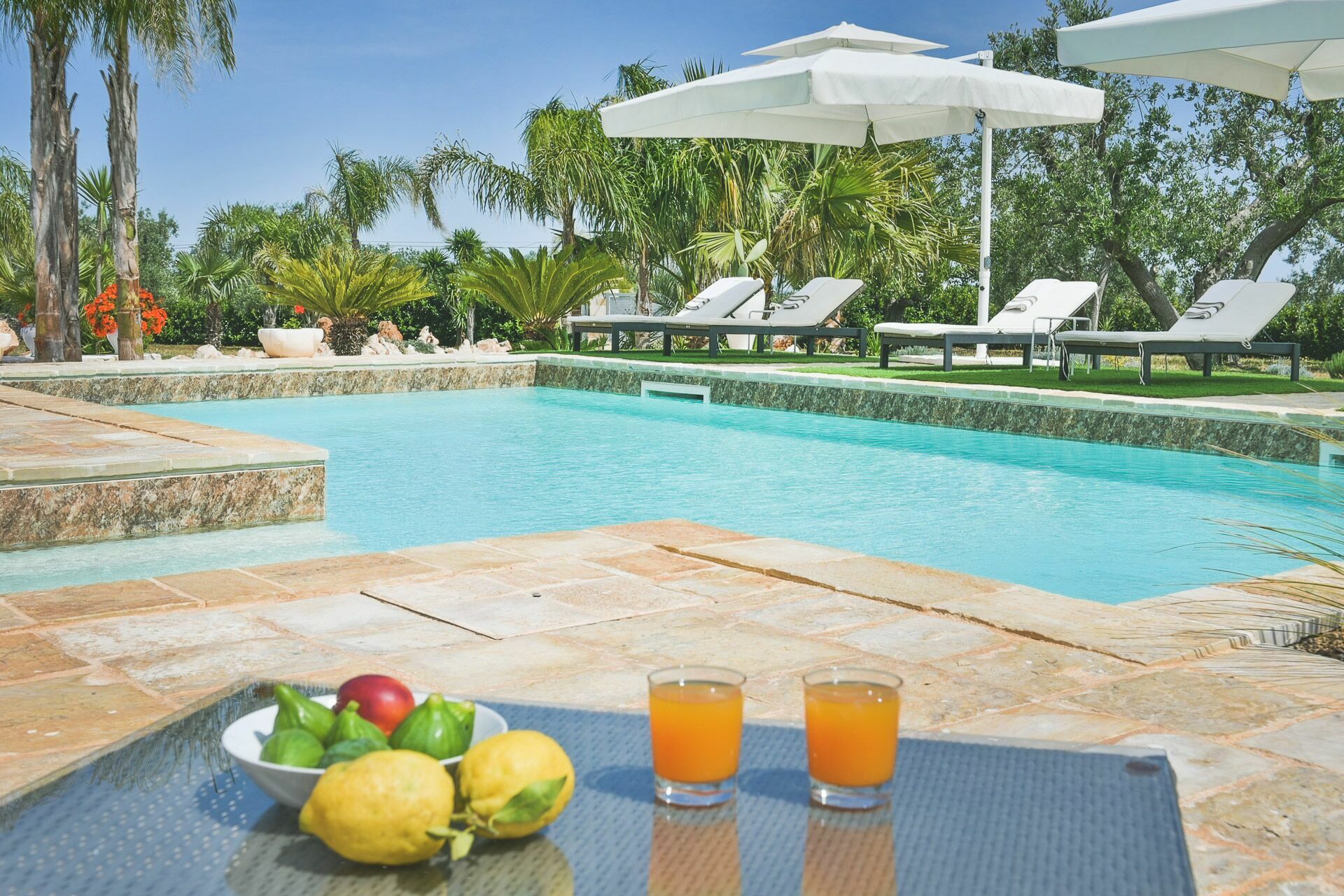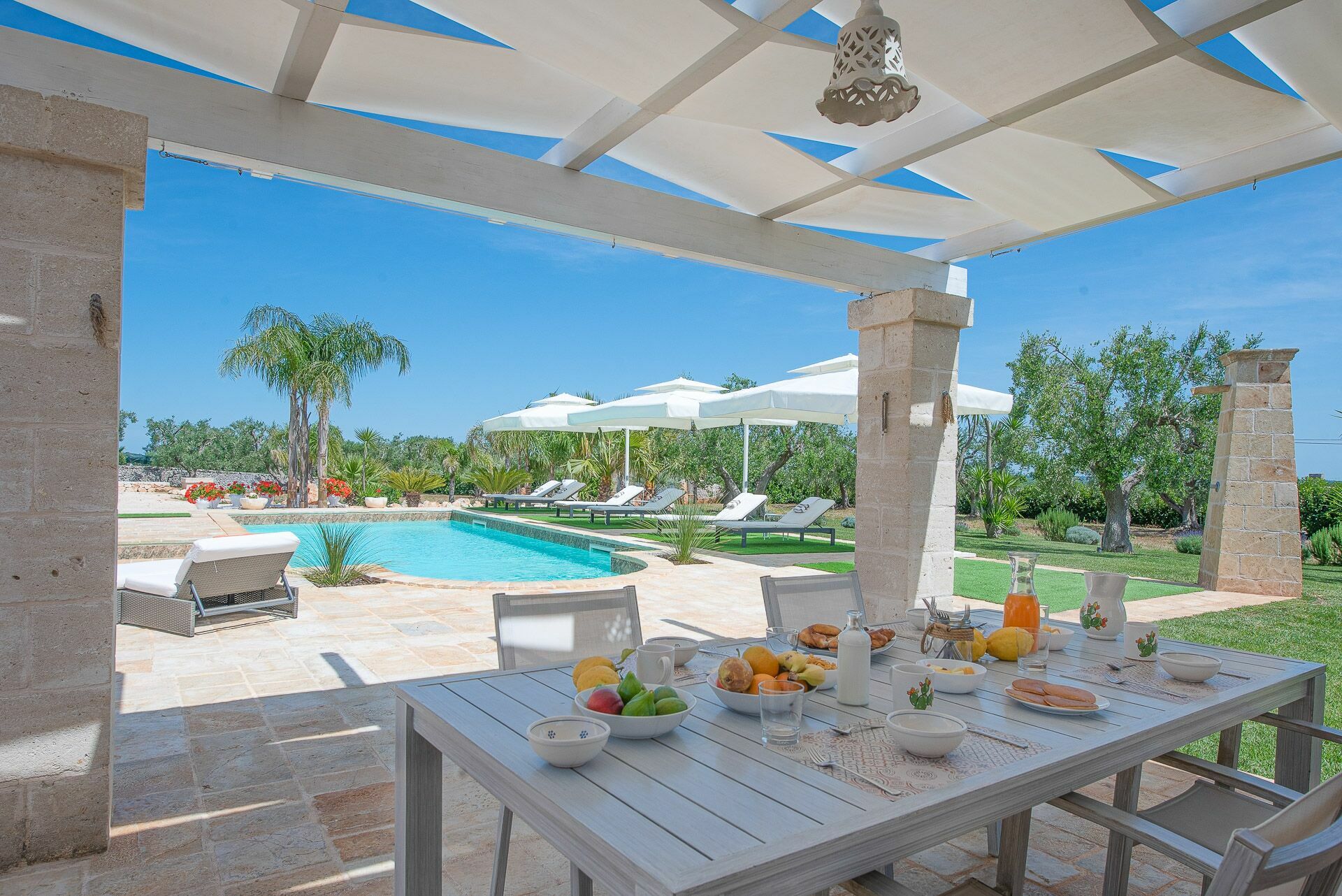 Verspreid over vier hectare op het rustige platteland van de Itria vallei in Apulië, het landgoed van Villa Orama Relais is beplant met oude olijfbomen, felgekleurde bloemen en cactussen. Een glimp van het kristalheldere water van de zee kan door verschillende ramen in de villa worden gezien door gaten in het dichte groen van de bomen, maar er is ook een terras dat zowel een duidelijker uitzicht over de kust biedt alswel uitzicht op het historische centrum van Ostuni.
