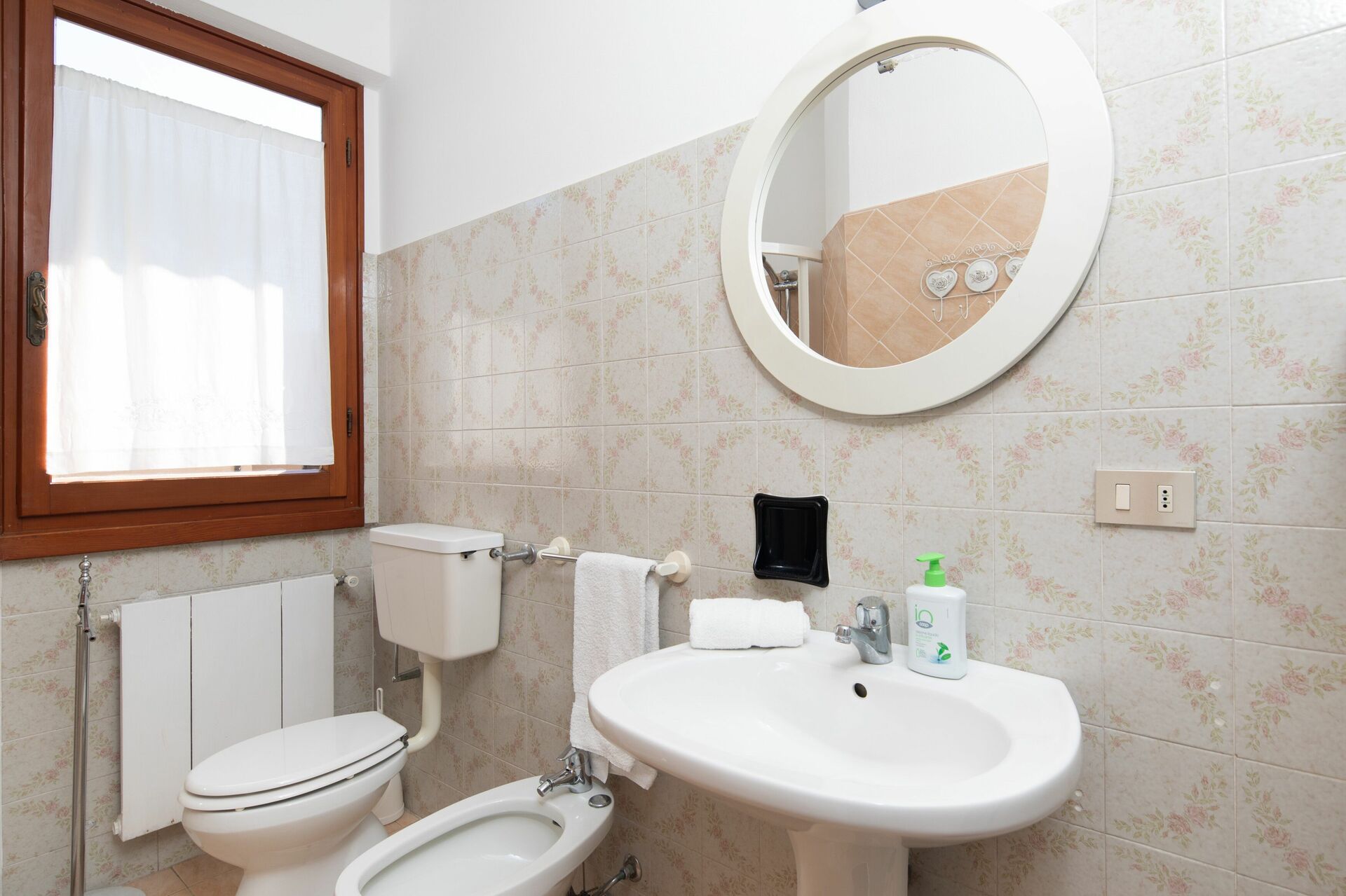 Badkamer 1: wastafel, toilet , bidet, douche.